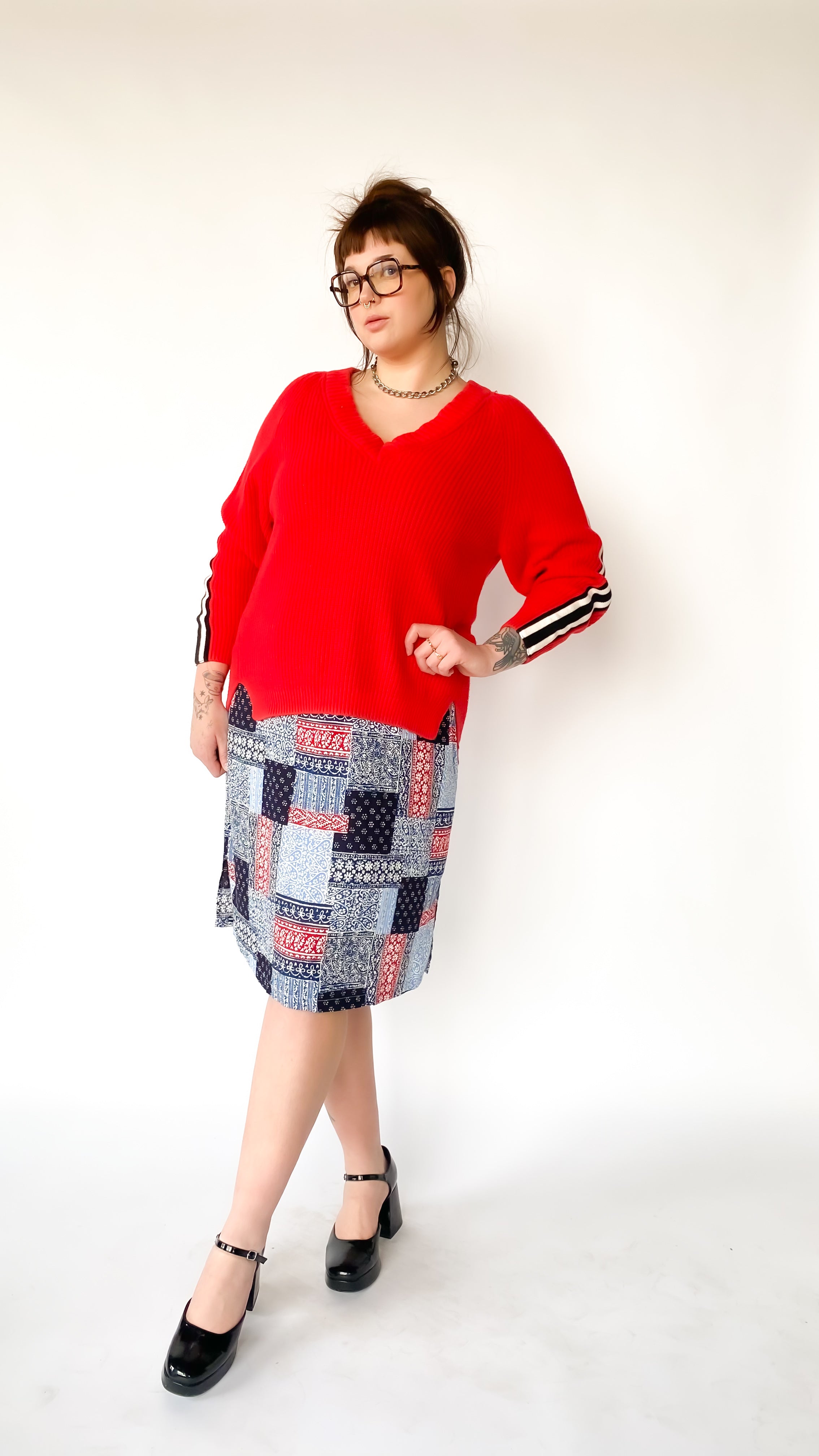 Y2K Red, White & Blue Collage Skirt, sz. 3XL