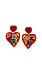 Red heart beaded earrings. Hypo-Allergenic Posts Back: felt Hand Made