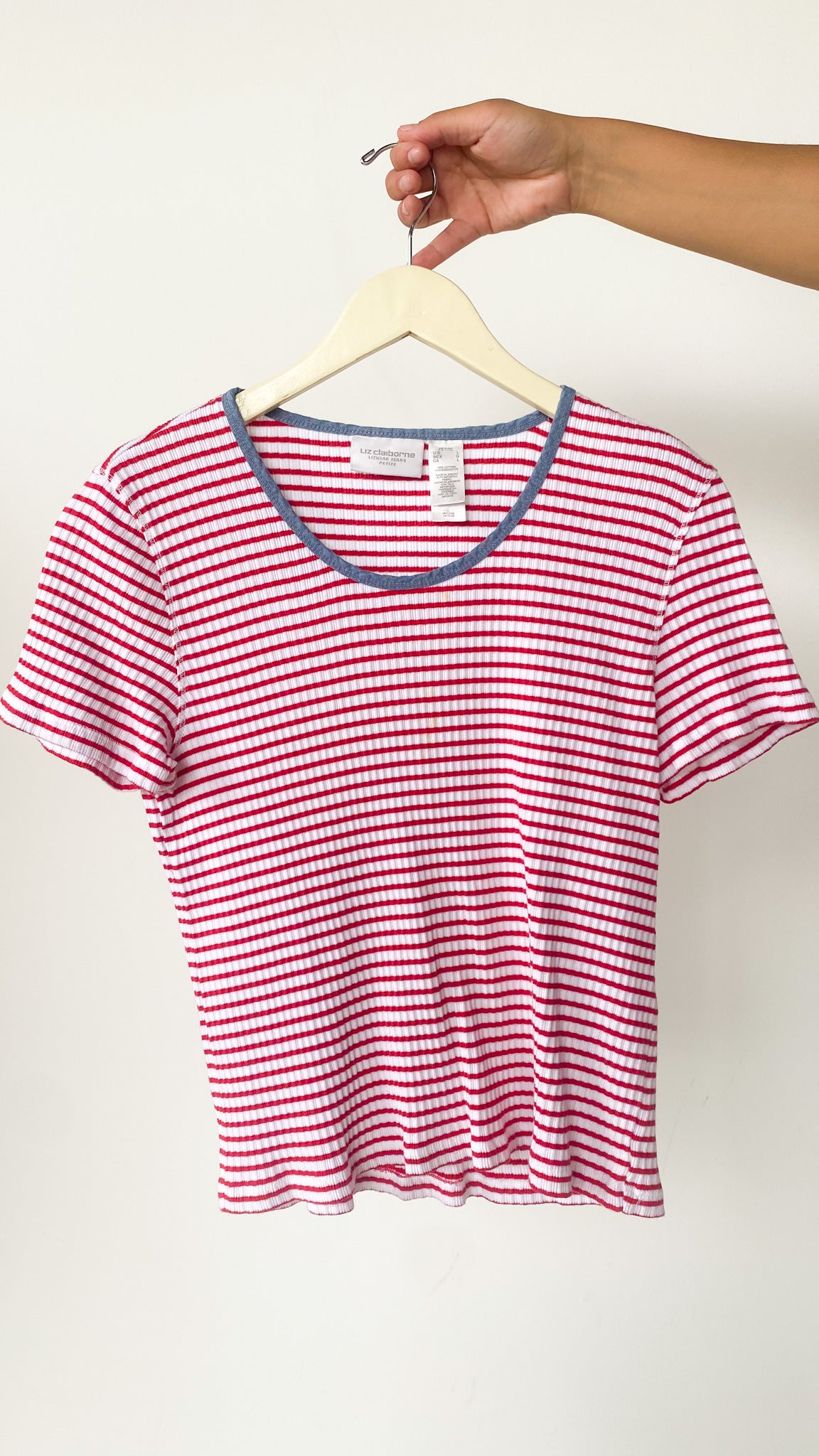 1990s Ribbed Liz Candy Striped Tee, sz. L