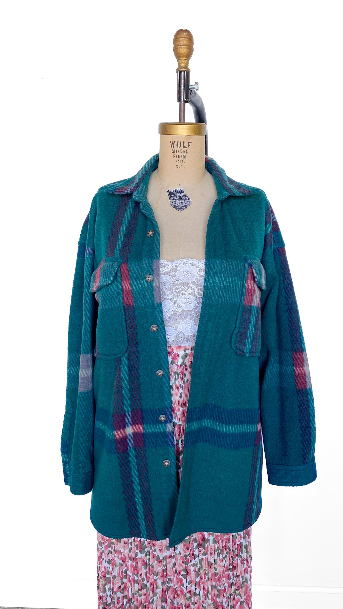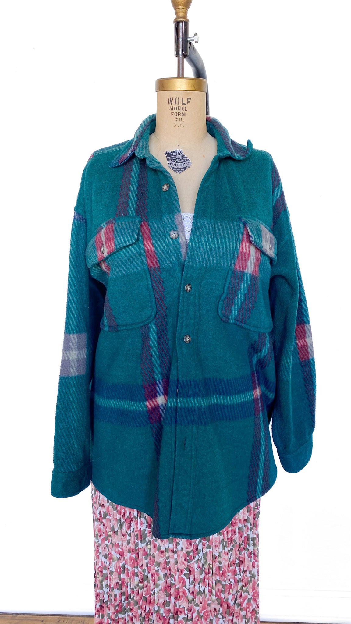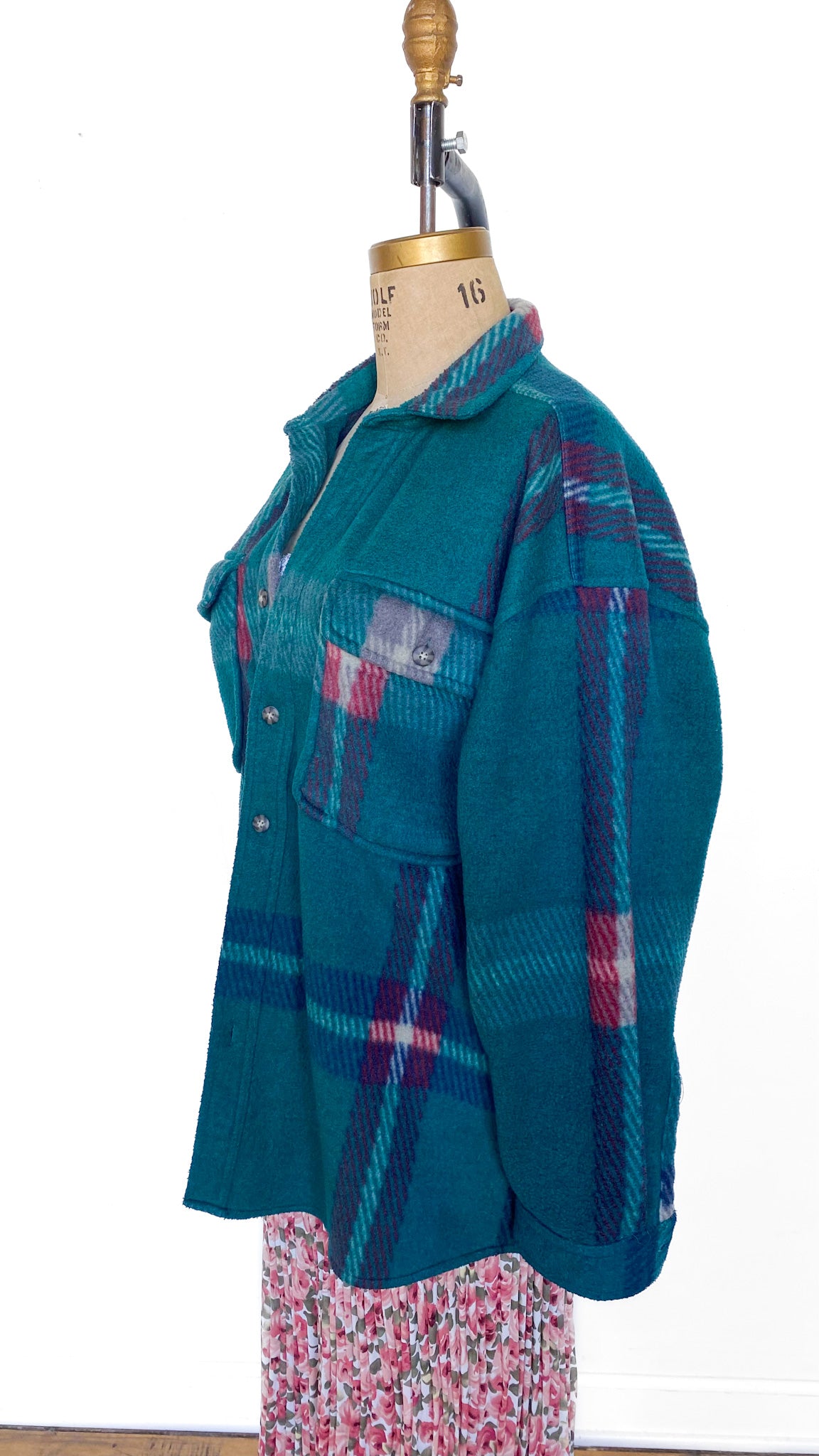 Y2K Green and Red Plaid Fleece Shacket, sz. 1X