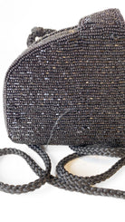 1960s Black Beaded Clamshell Shoulder Bag
