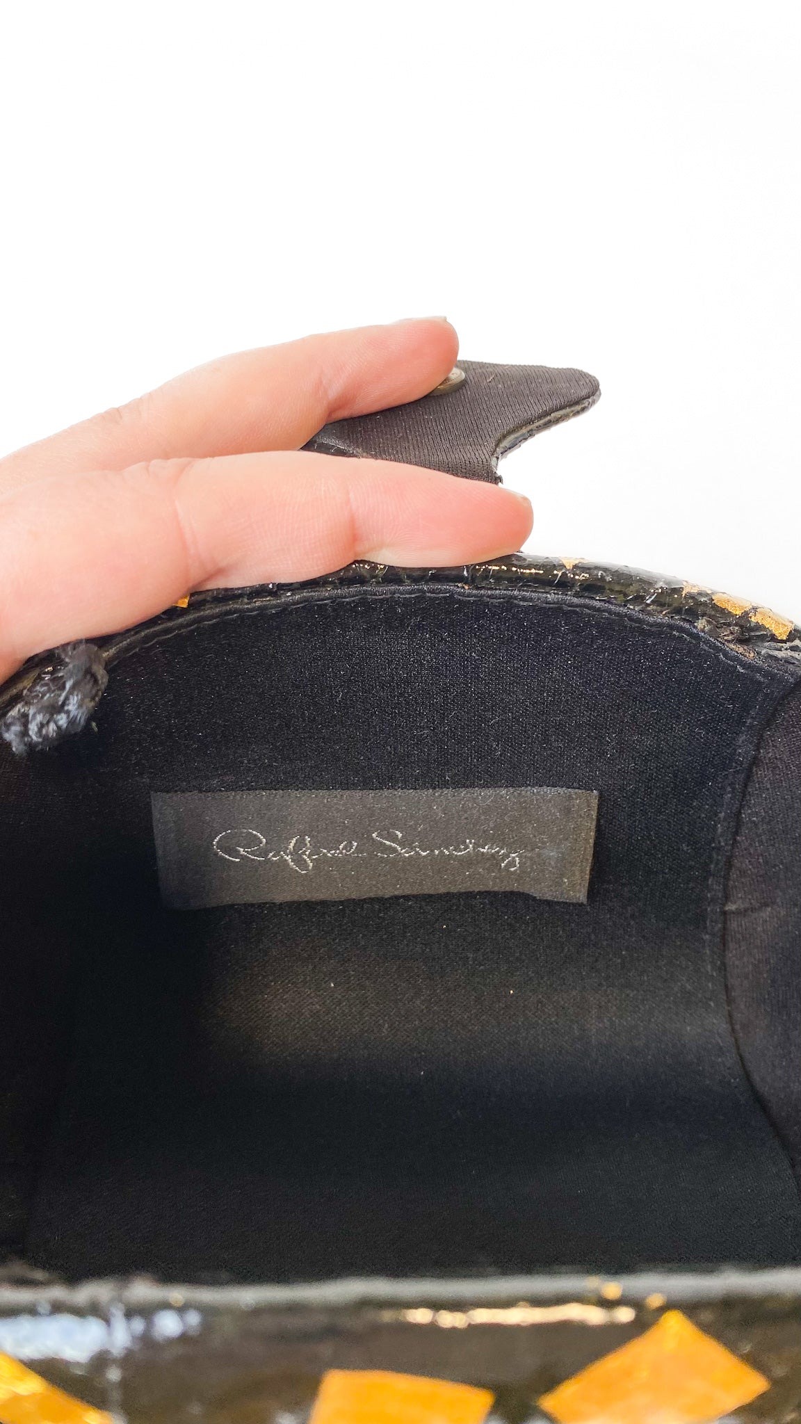 1980s Rafael Sanchez Black and Gold Clamshell Purse