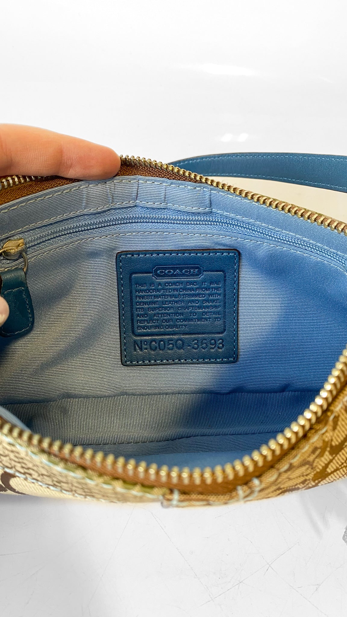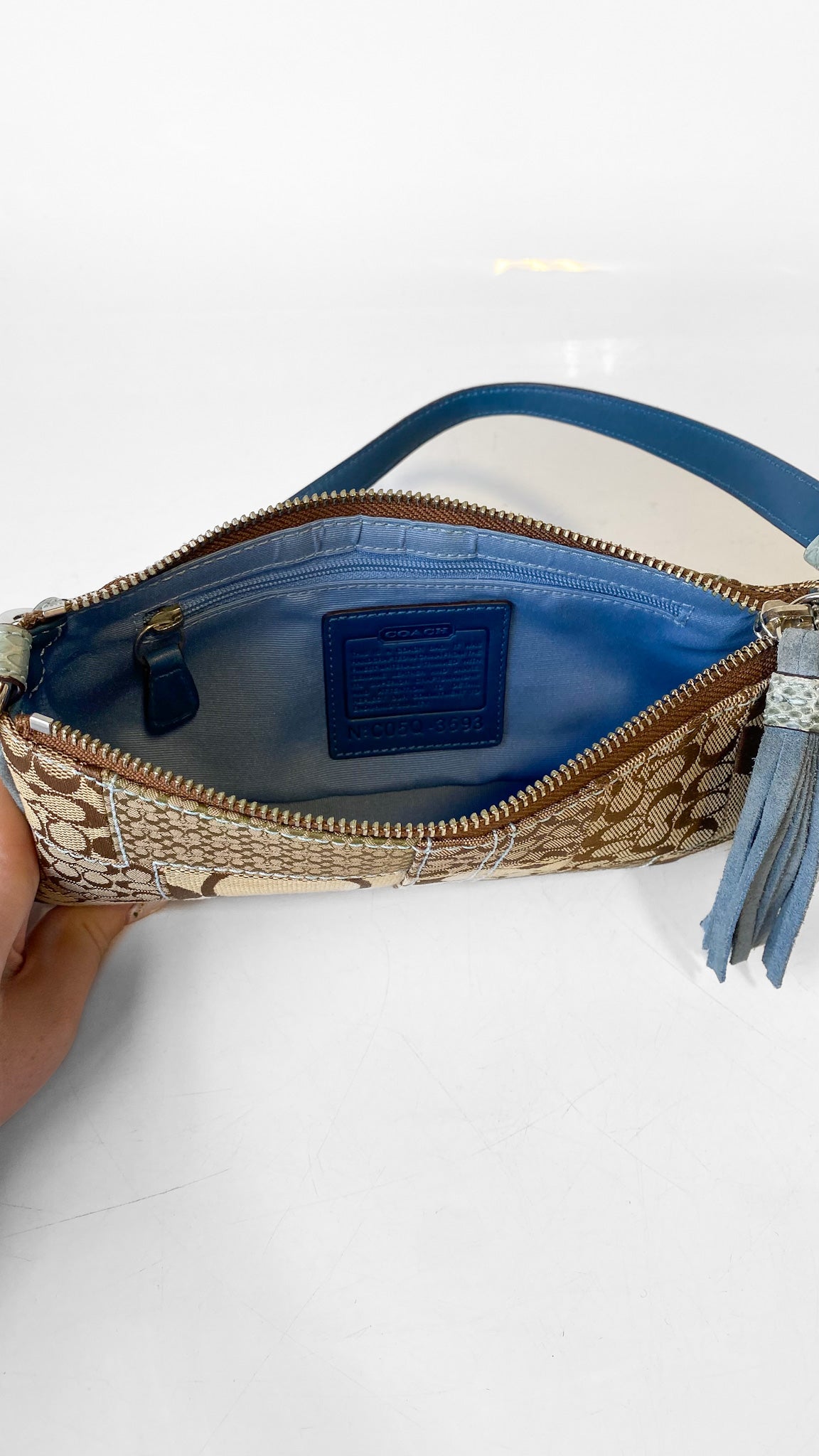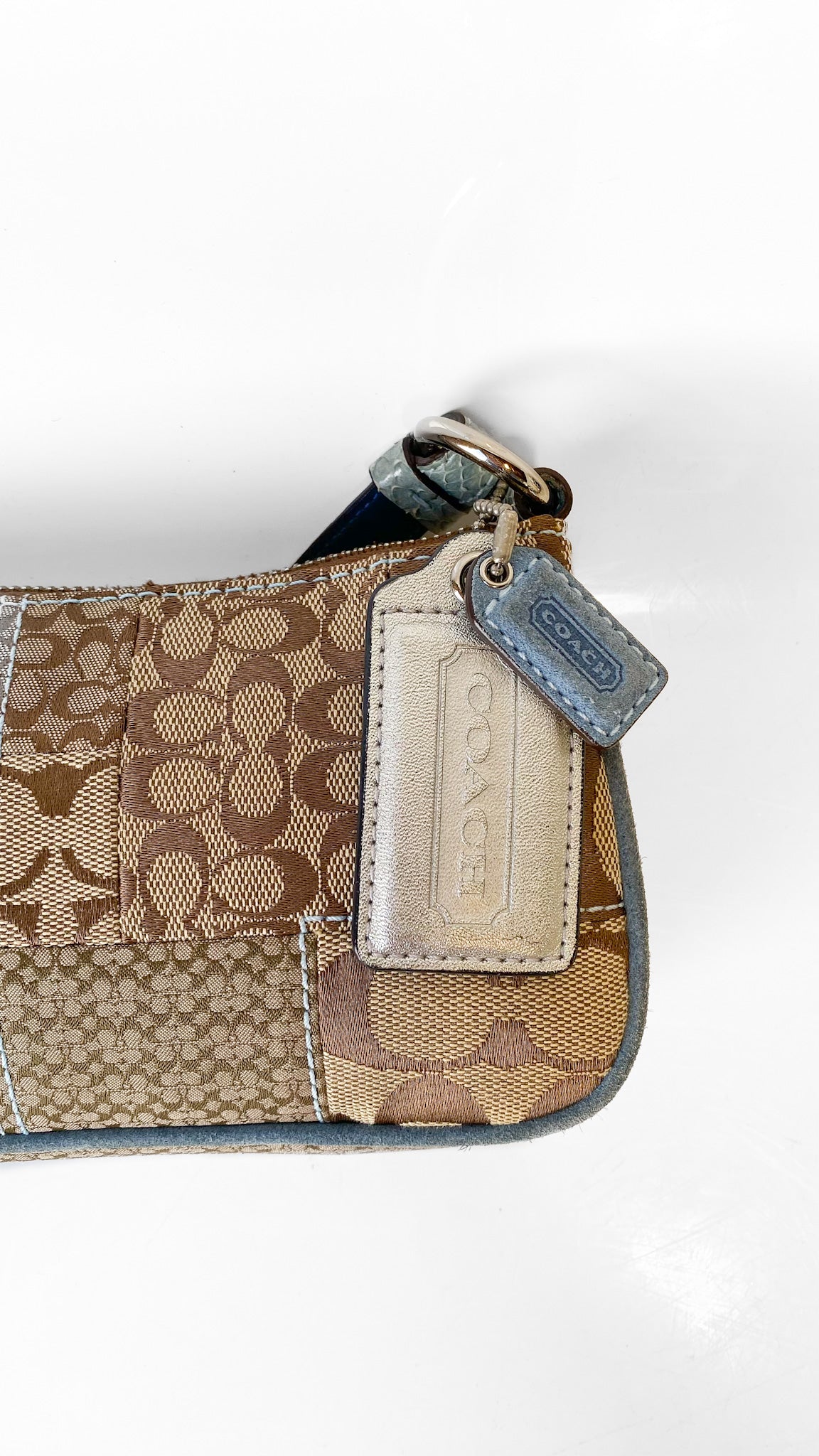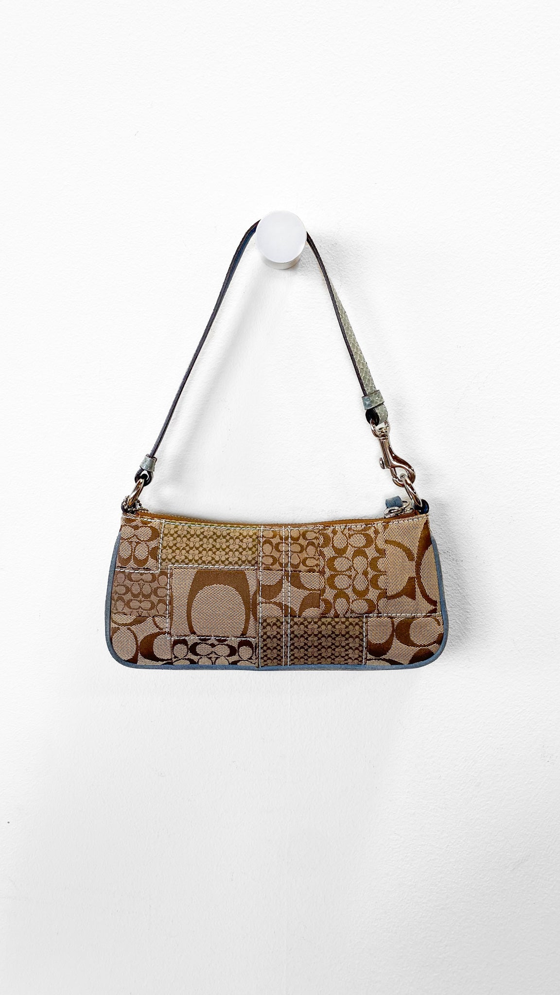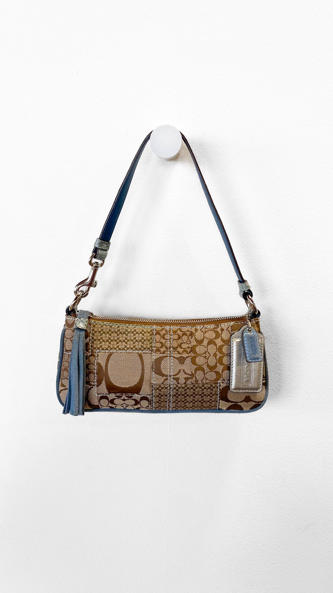 Y2K Coach Blue + Tan Monogram Shoulder Bag