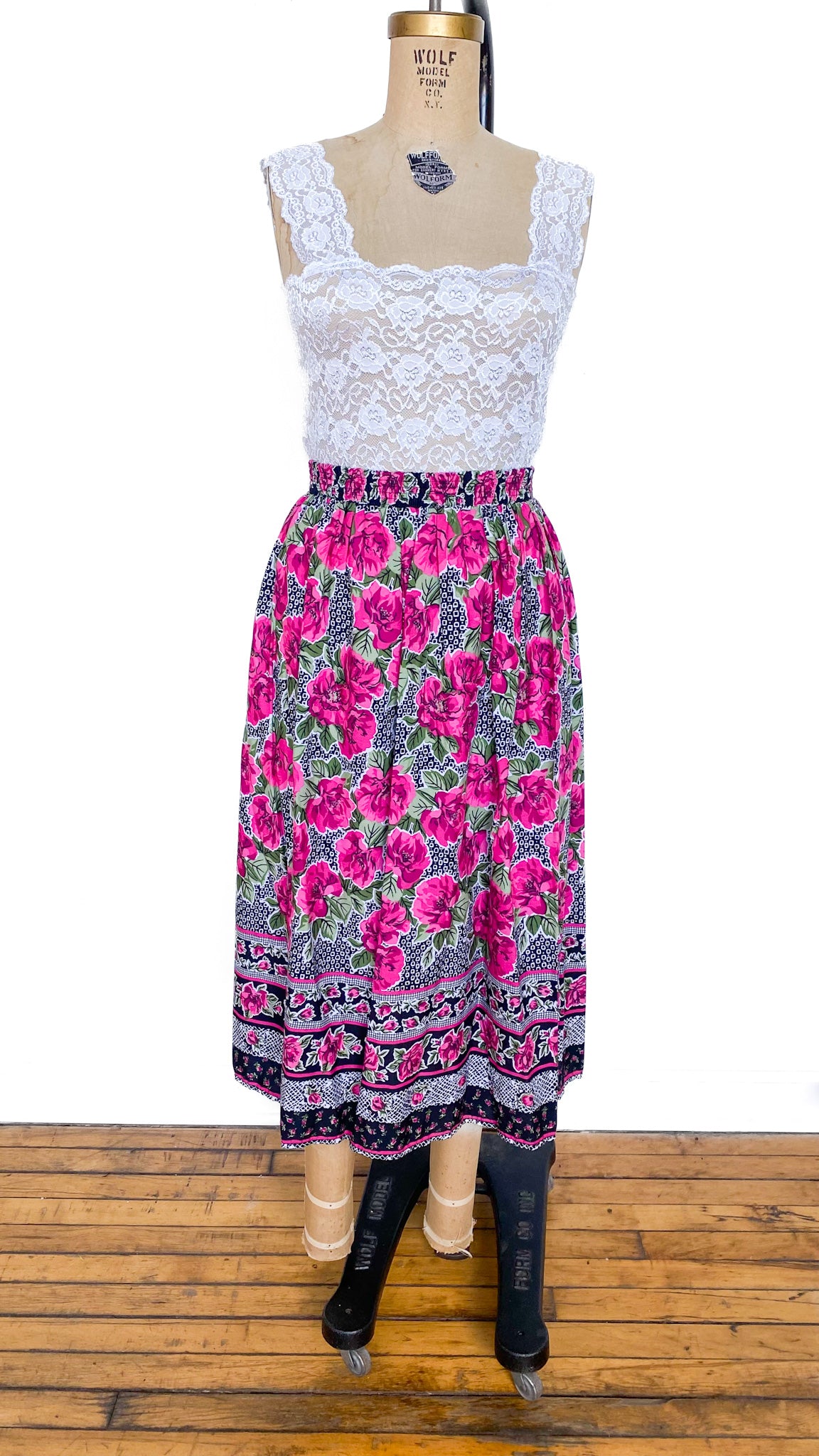 1980s Pink Carnation Skirt, sz. 1X-3X