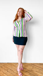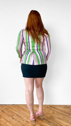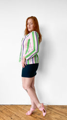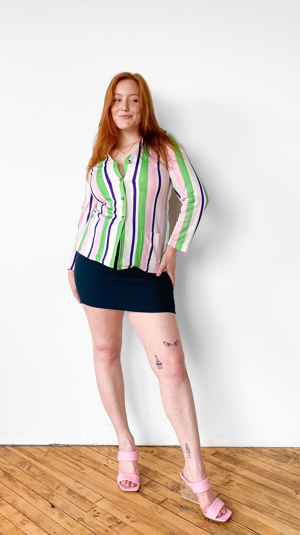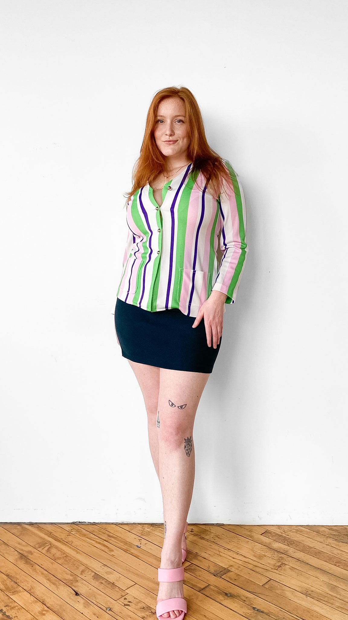 Classic dark green pencil skirt with zipper down center back. Unlined. Material has some stretch.
