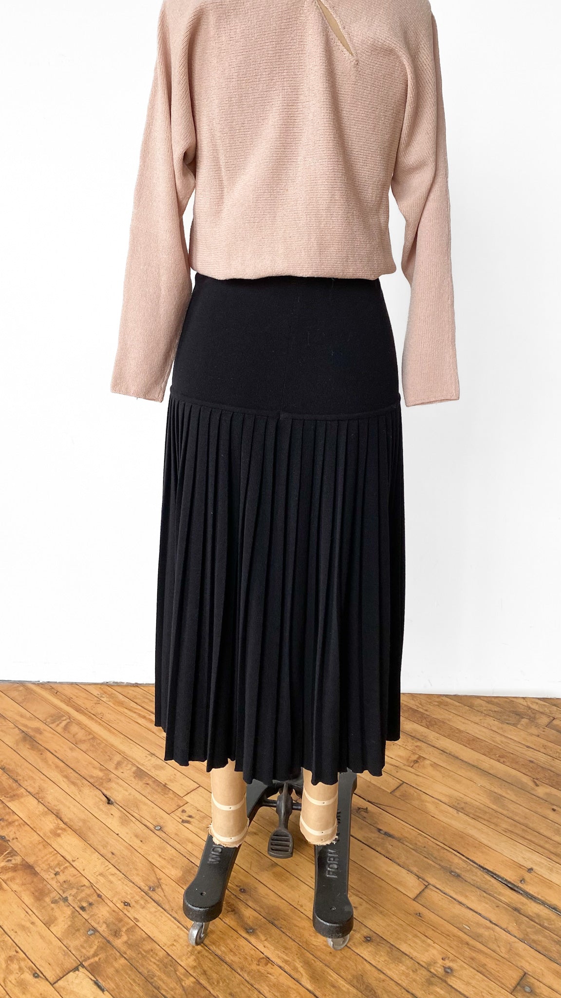 1990s Escada Black Pleated Drop Waist Skirt, sz. S-L