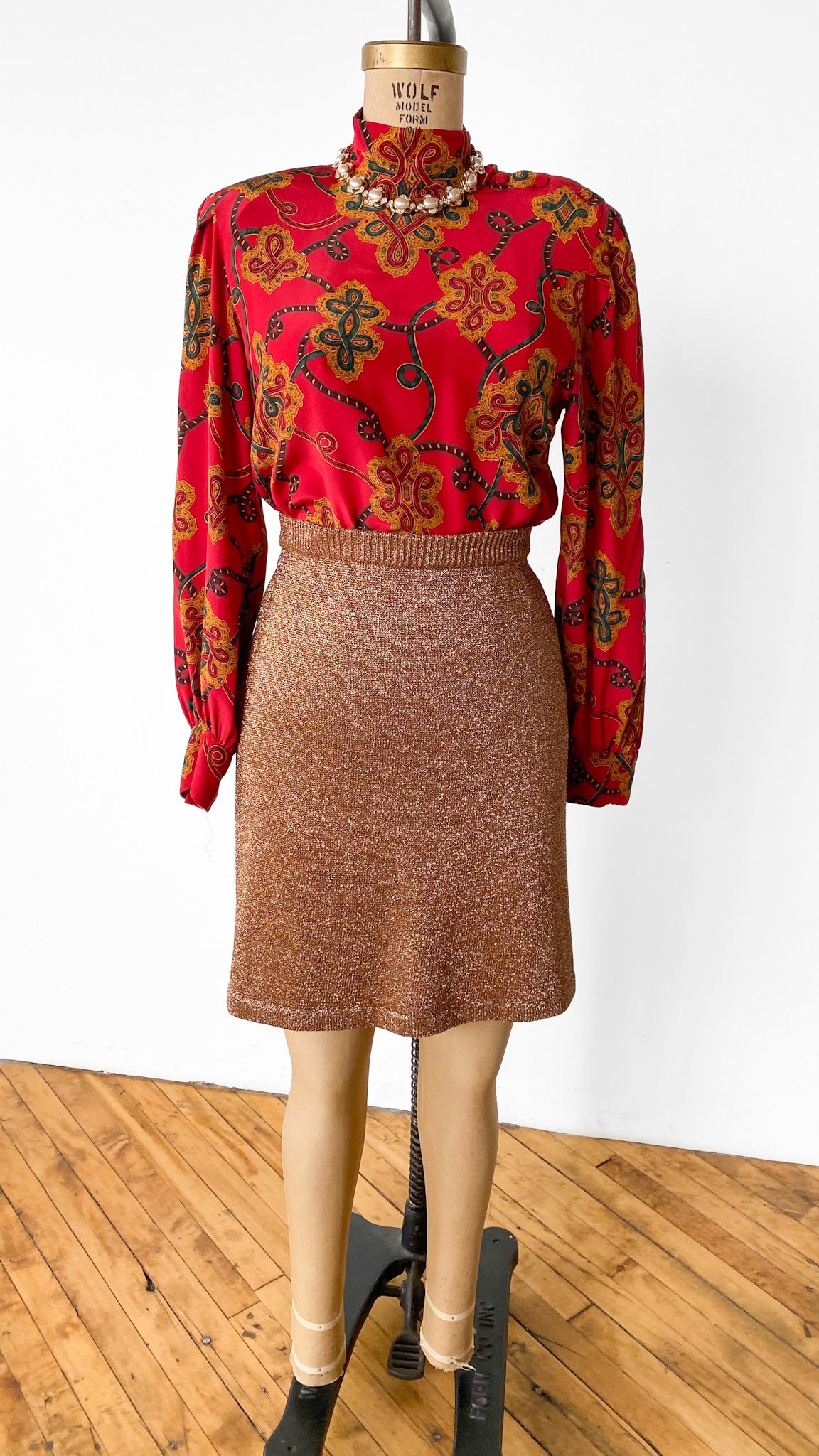 1980s Metallic Bronze Knit Skirt sz. L-1X