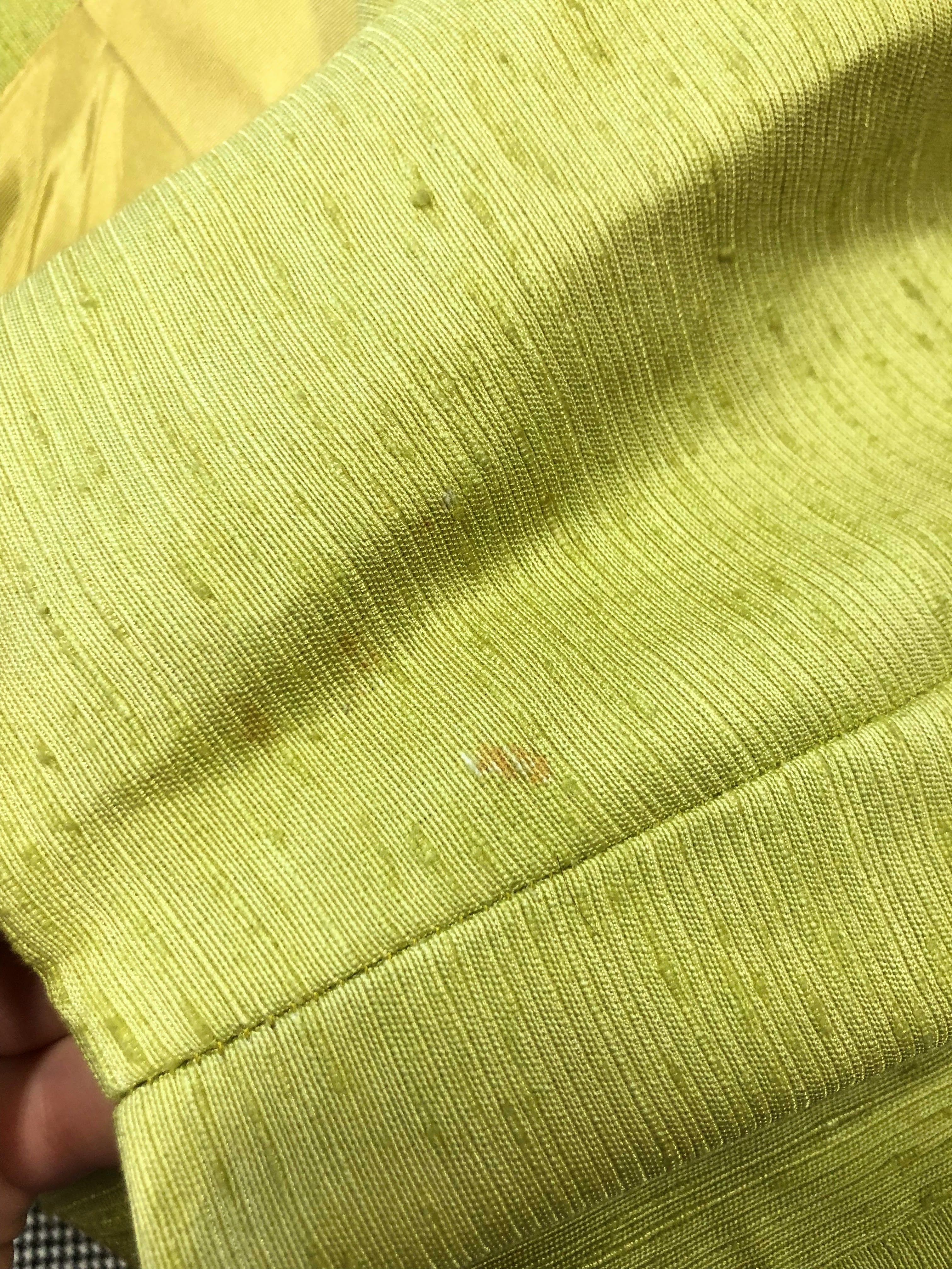 Light lime green, double-breasted, boxy, jacket with rhinestone buttons. Lined.
