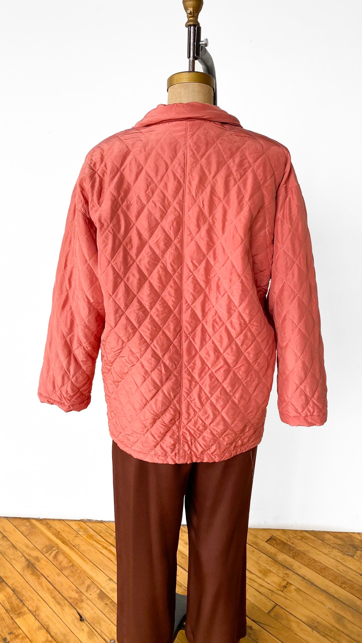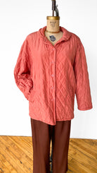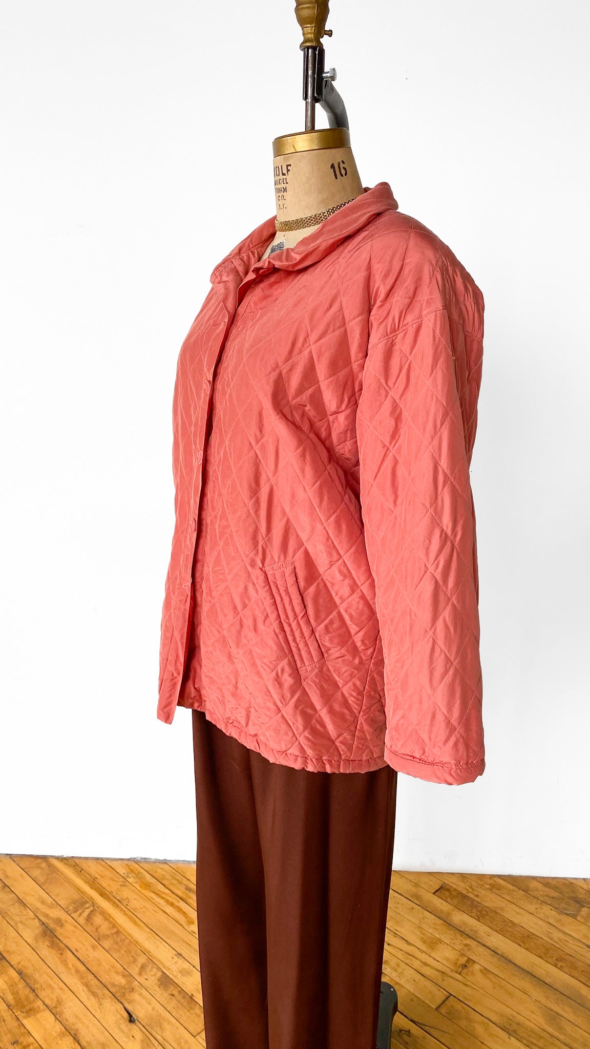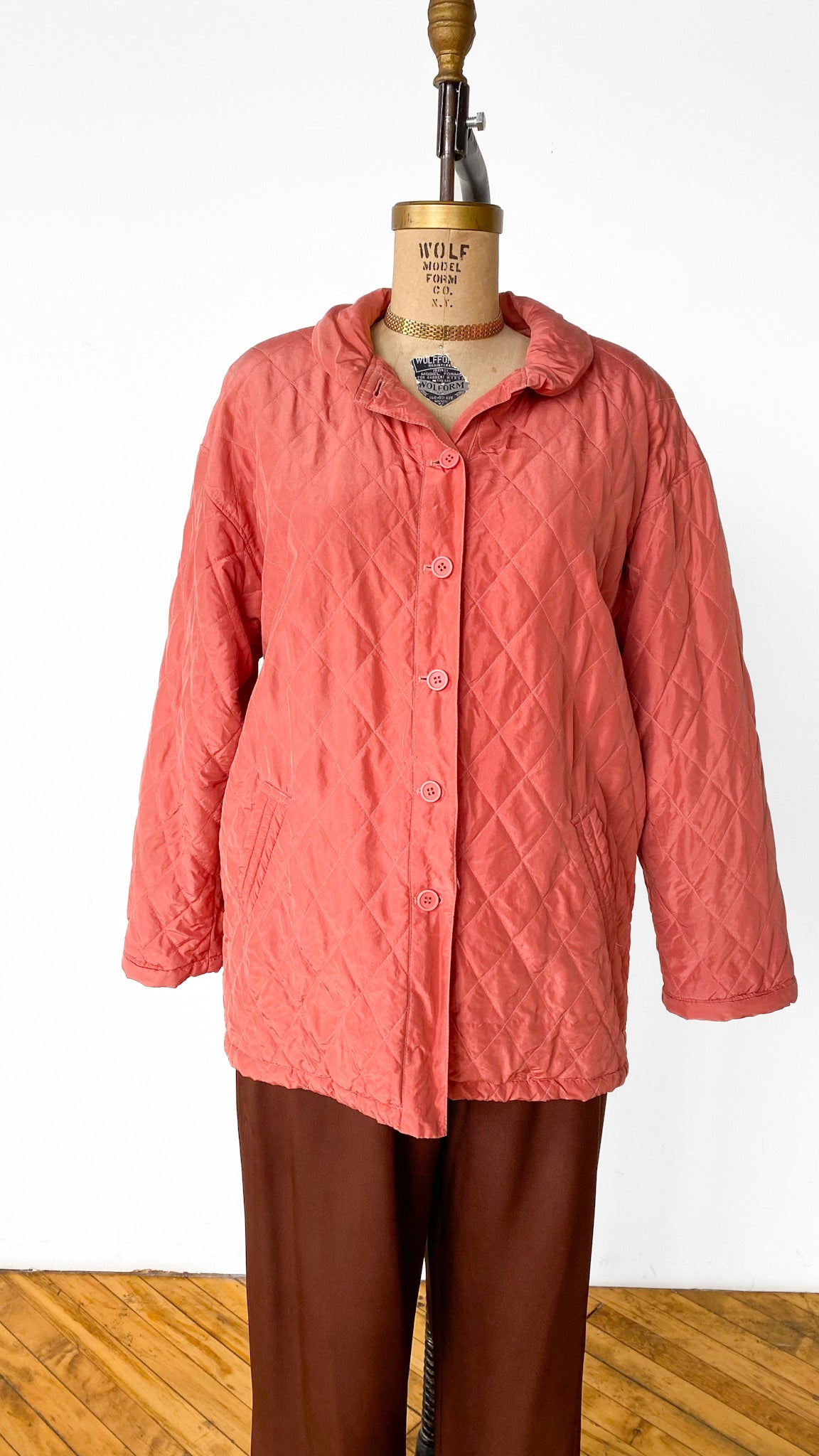 1980s Peach Quilted Silk Jacket, sz. 2X