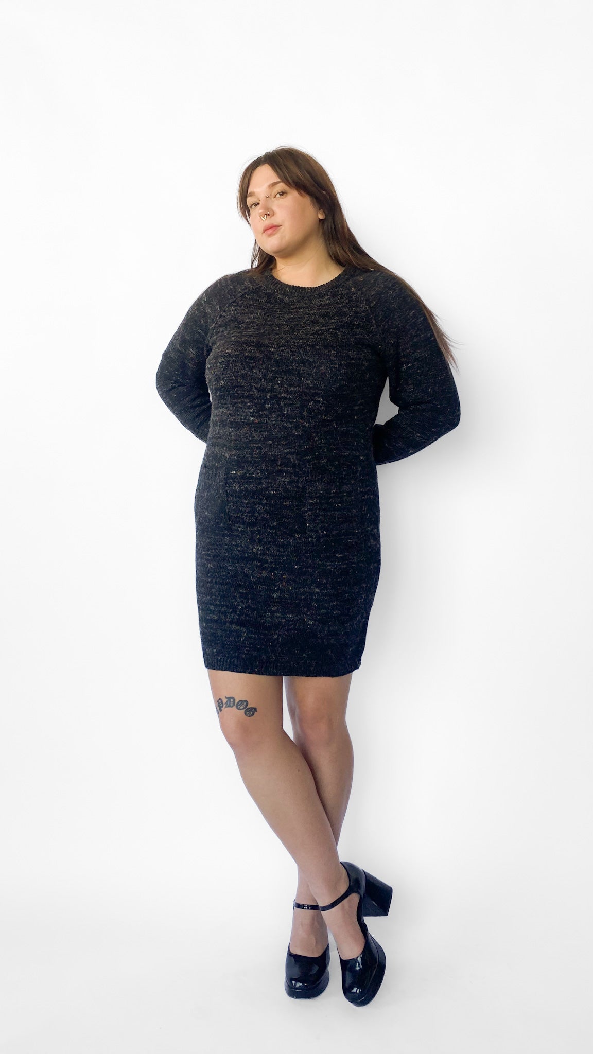 1970s Black Speckled Sweater Dress, sz. L-1XL