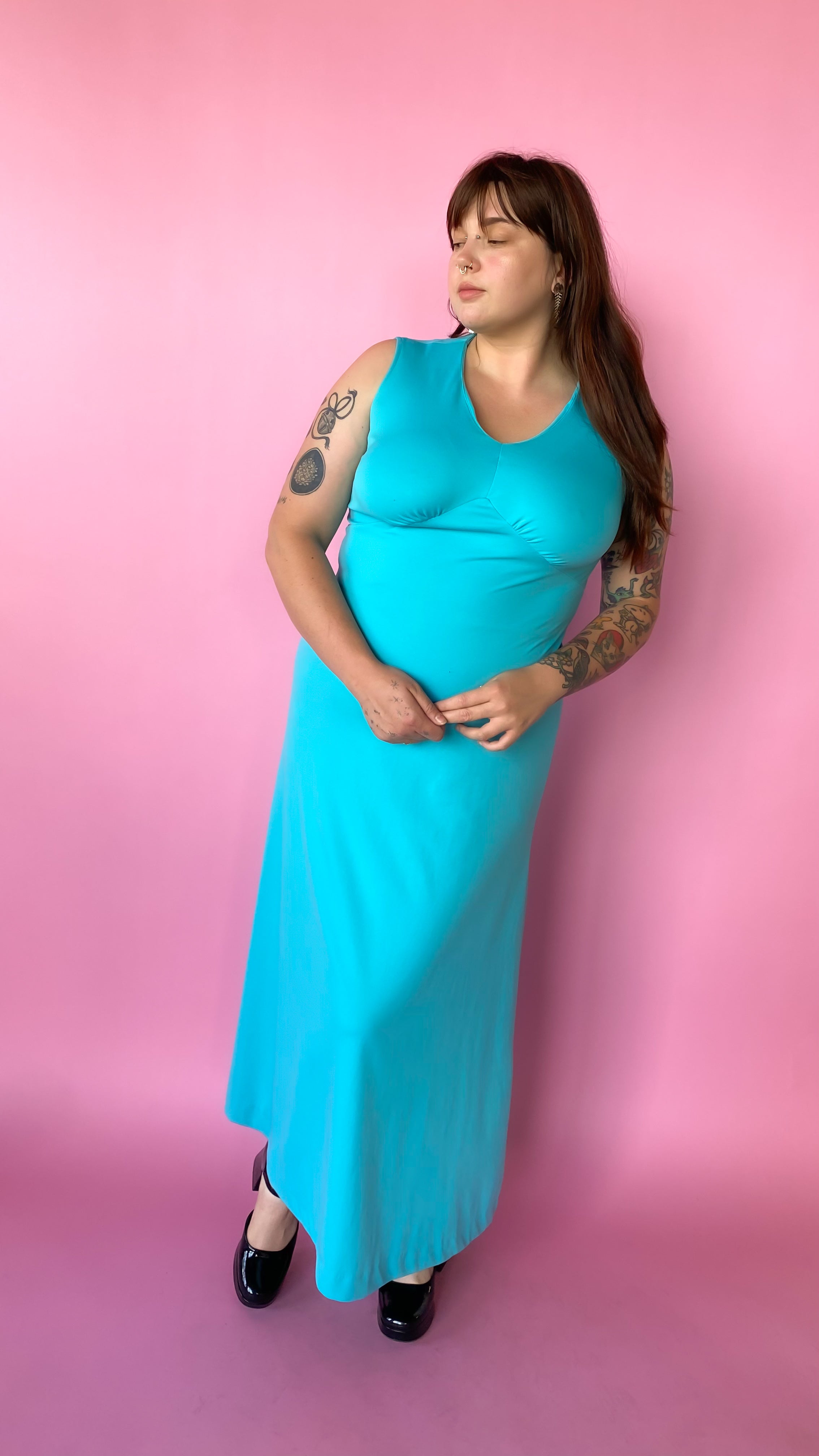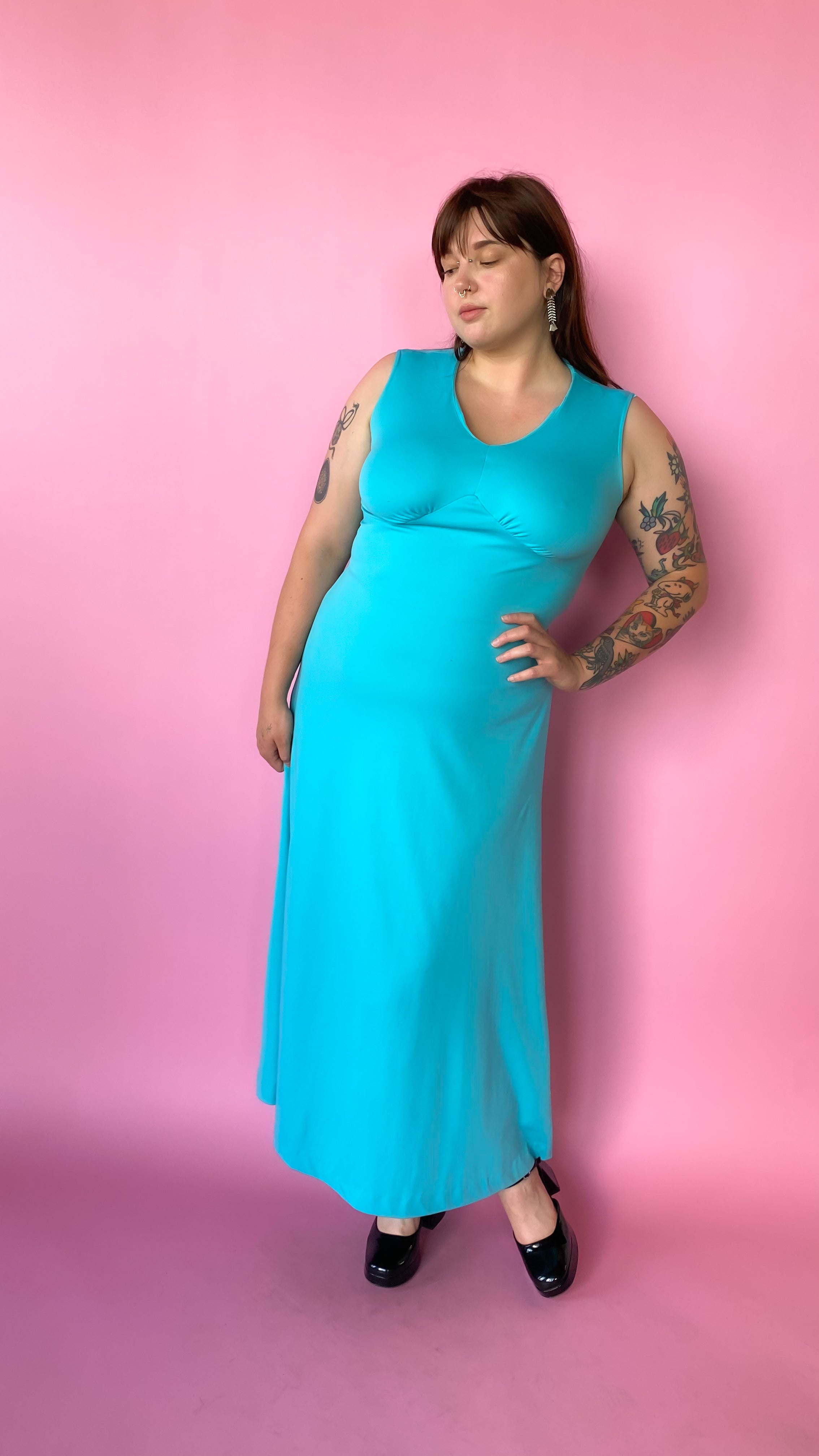 1970s Turquoise Maxi Dress, sz. L-2XL