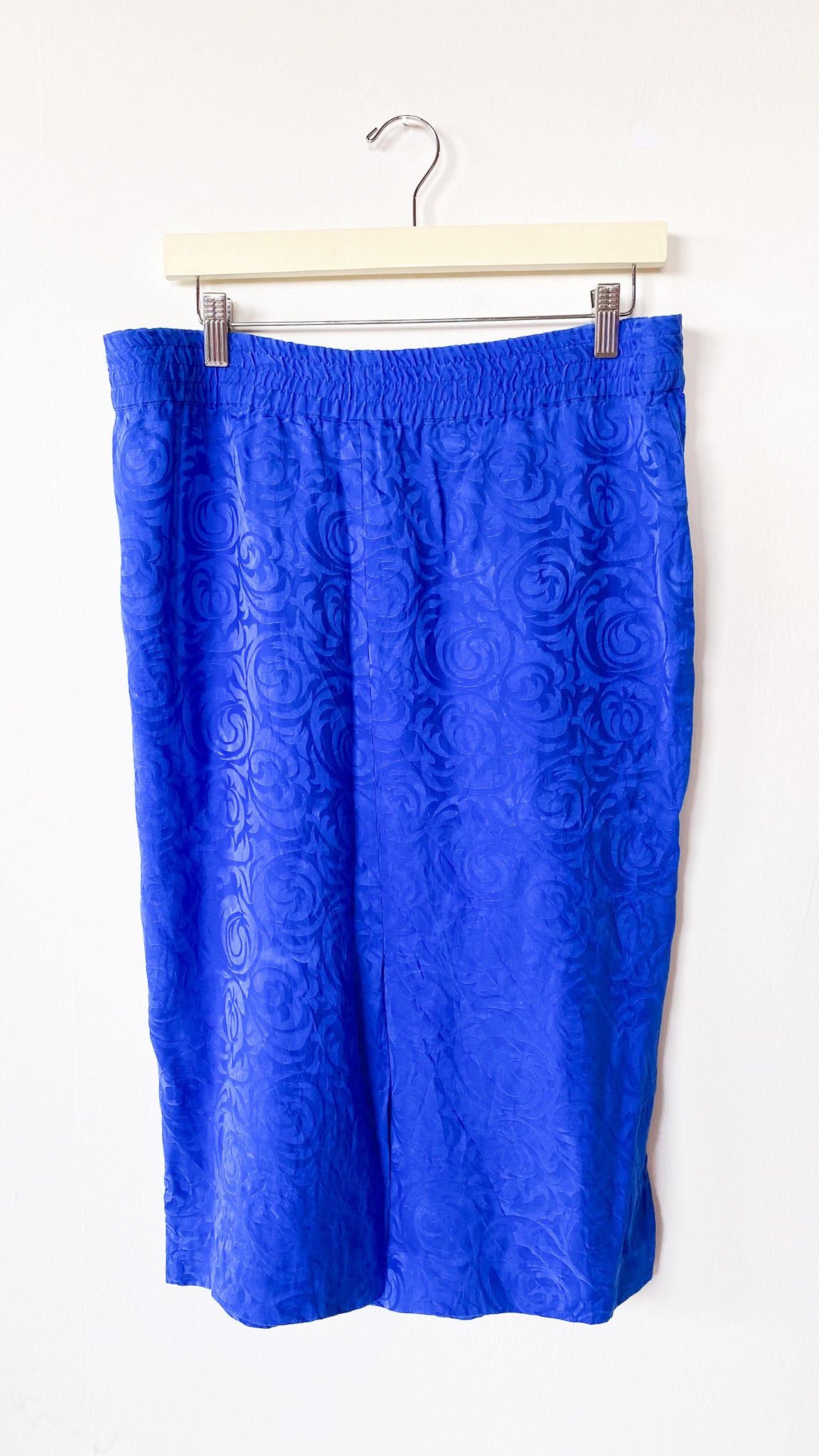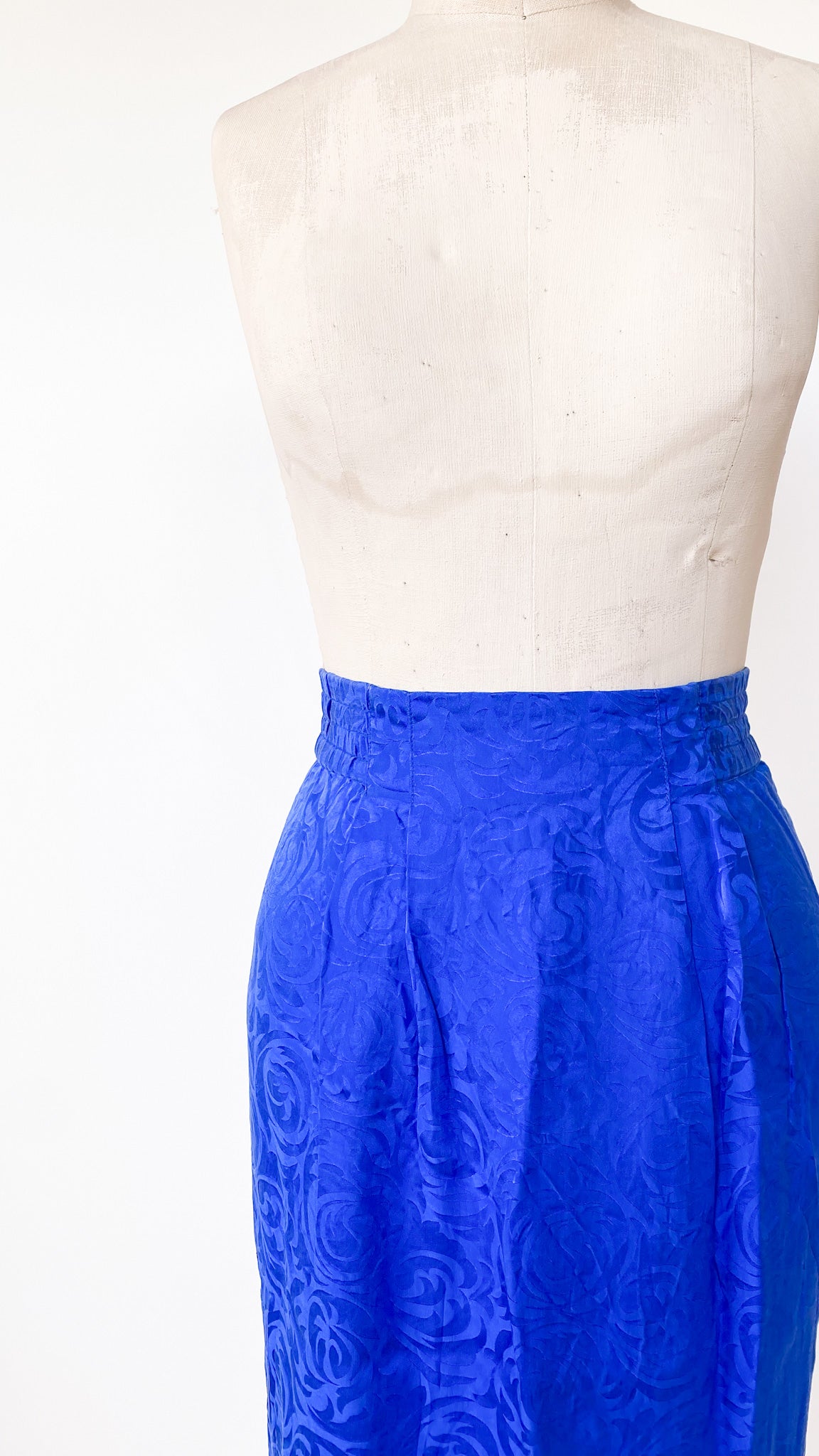 1980s Cobalt Silk Swirl Skirt, sz. L