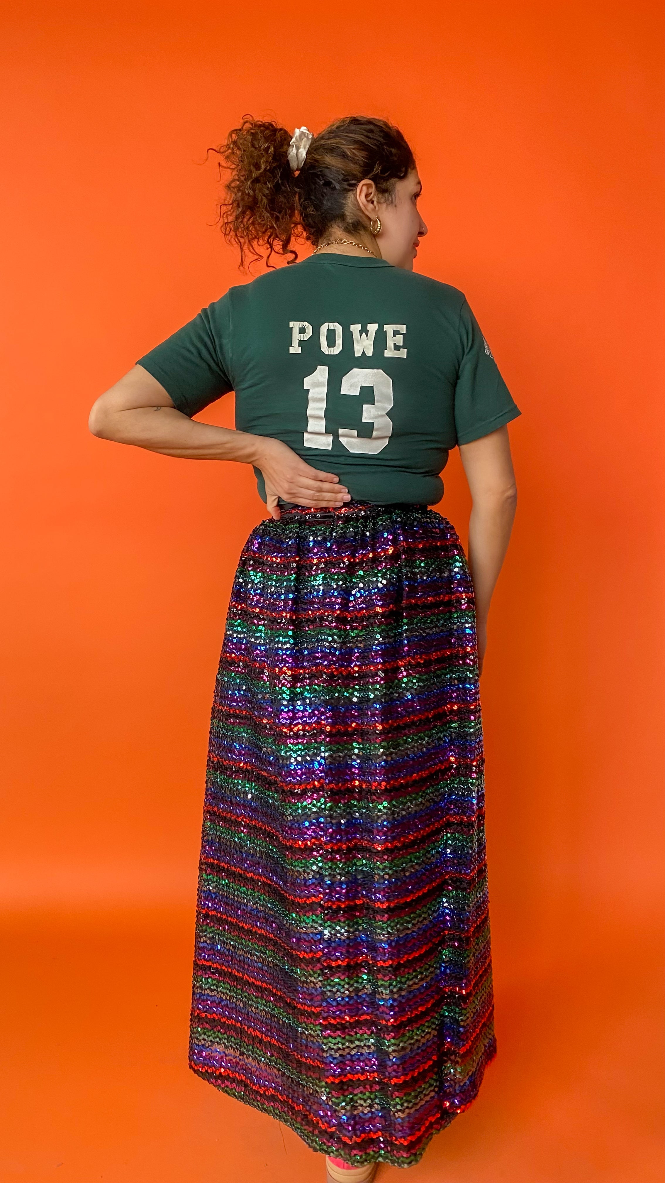 1980s Rainbow Sequin Maxi Skirt, sz. Medium