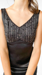 1990s Black Beaded Shift Gown, sz. S