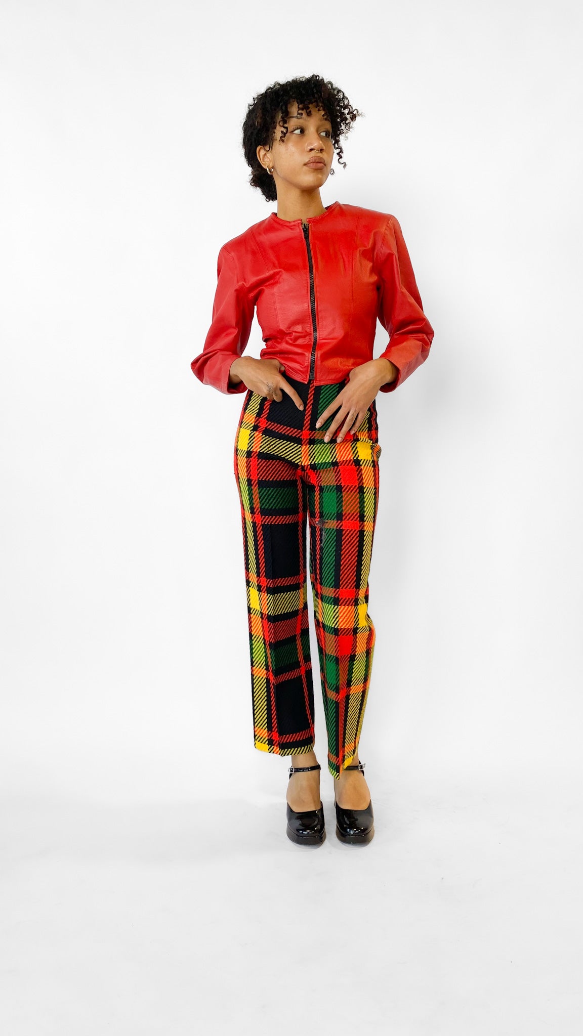1990s Red Cropped Leather Jacket, sz. S