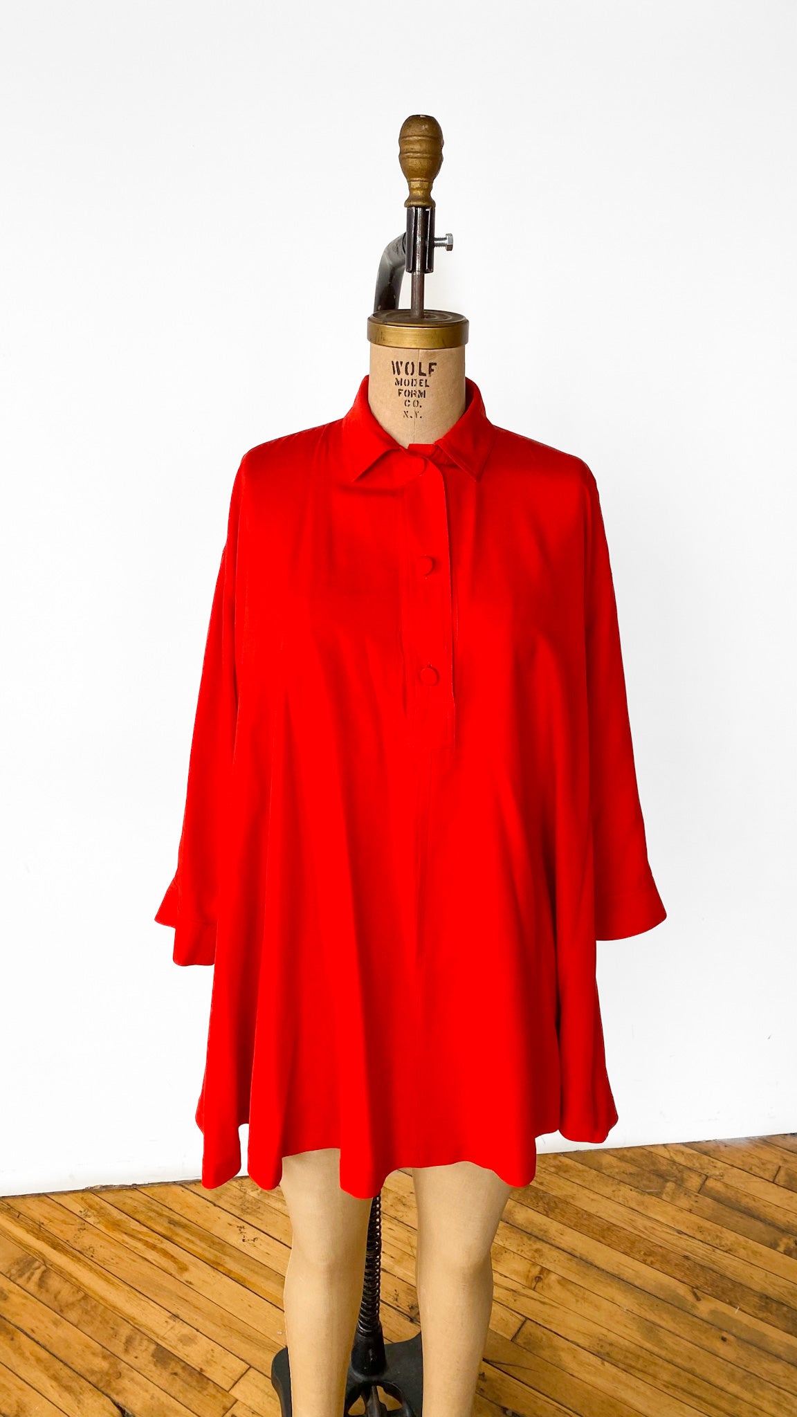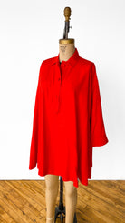 1990s Donna Karan Red Silk Flair Blouse, sz. M-XL