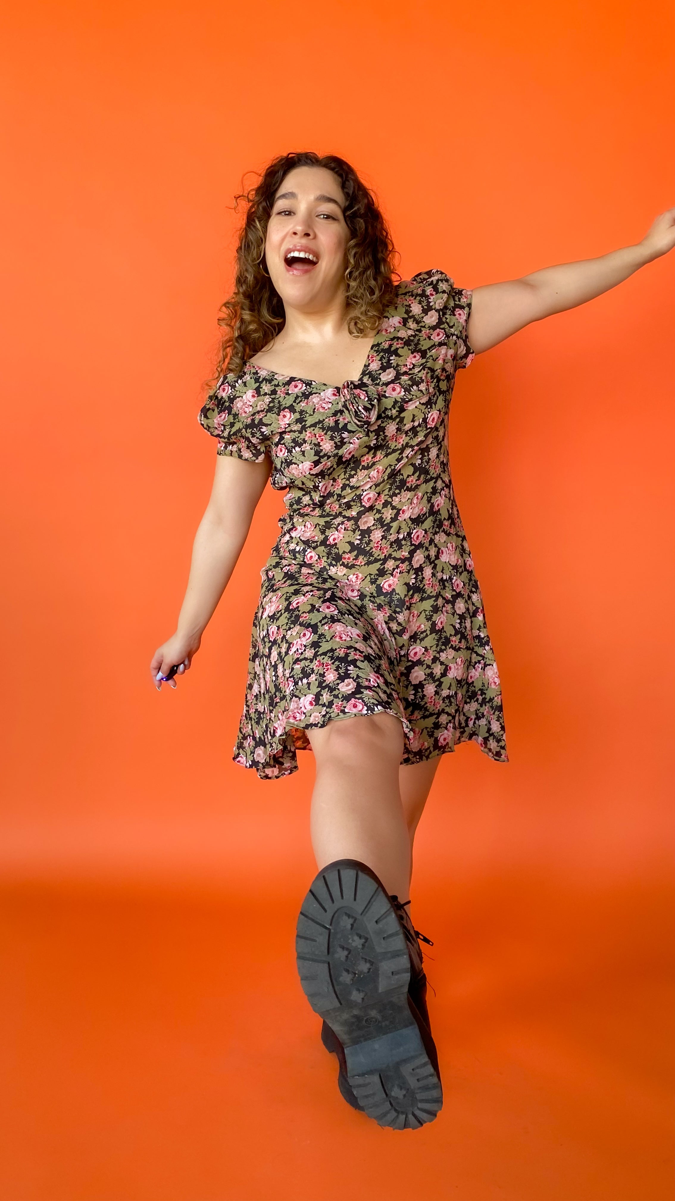 1990s Semi-Sheer Rose Mini Dress, sz. Large
