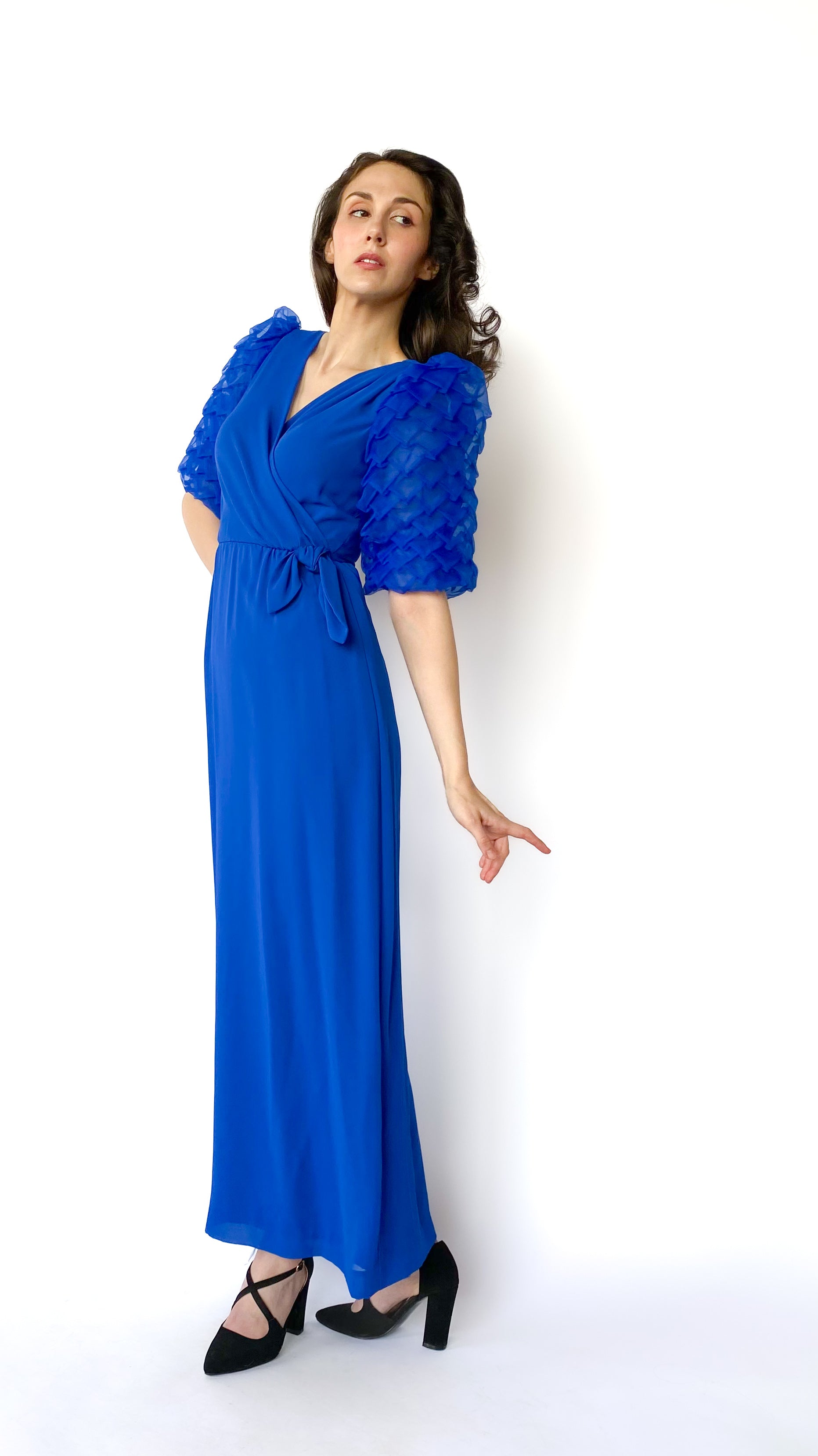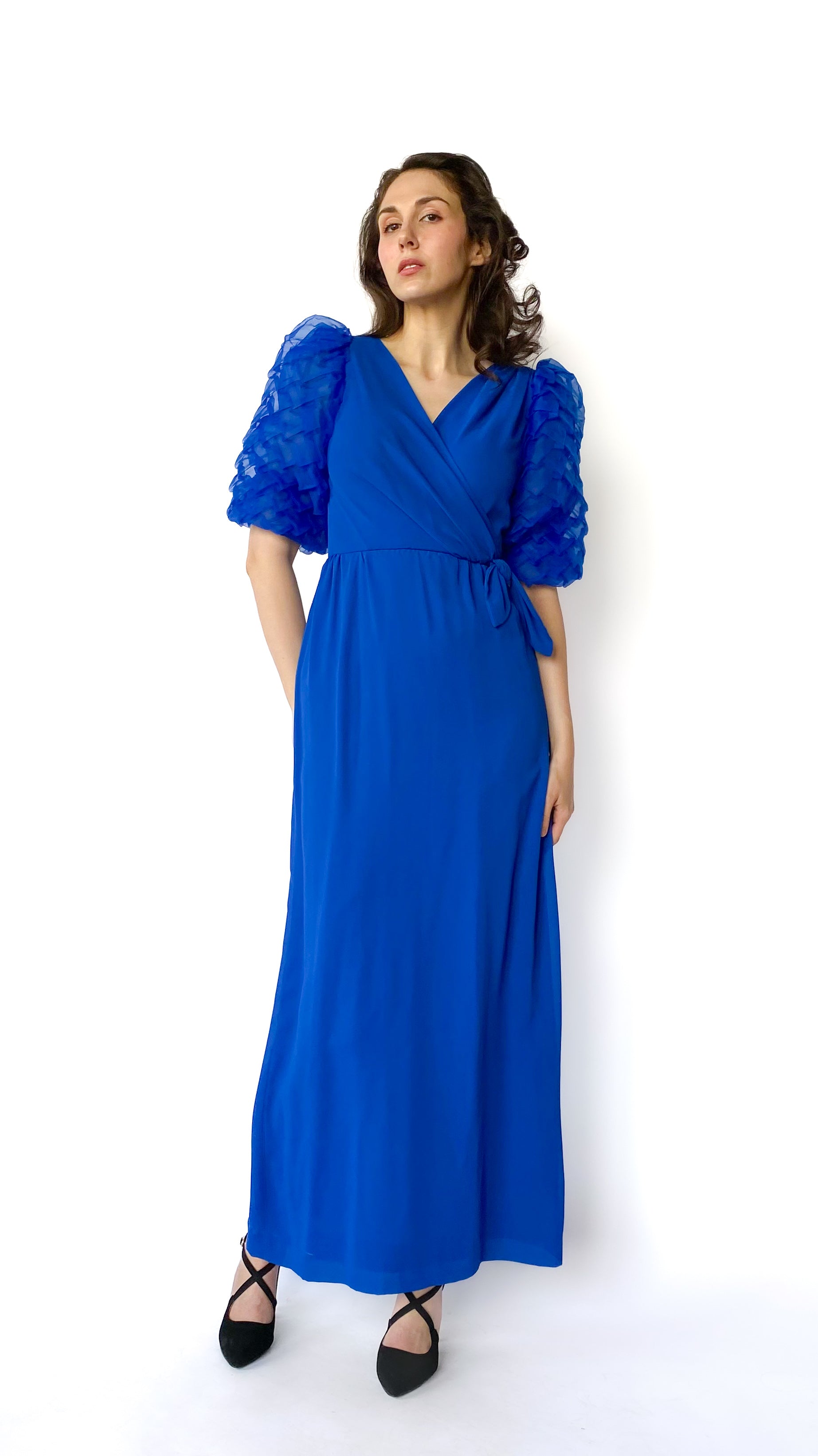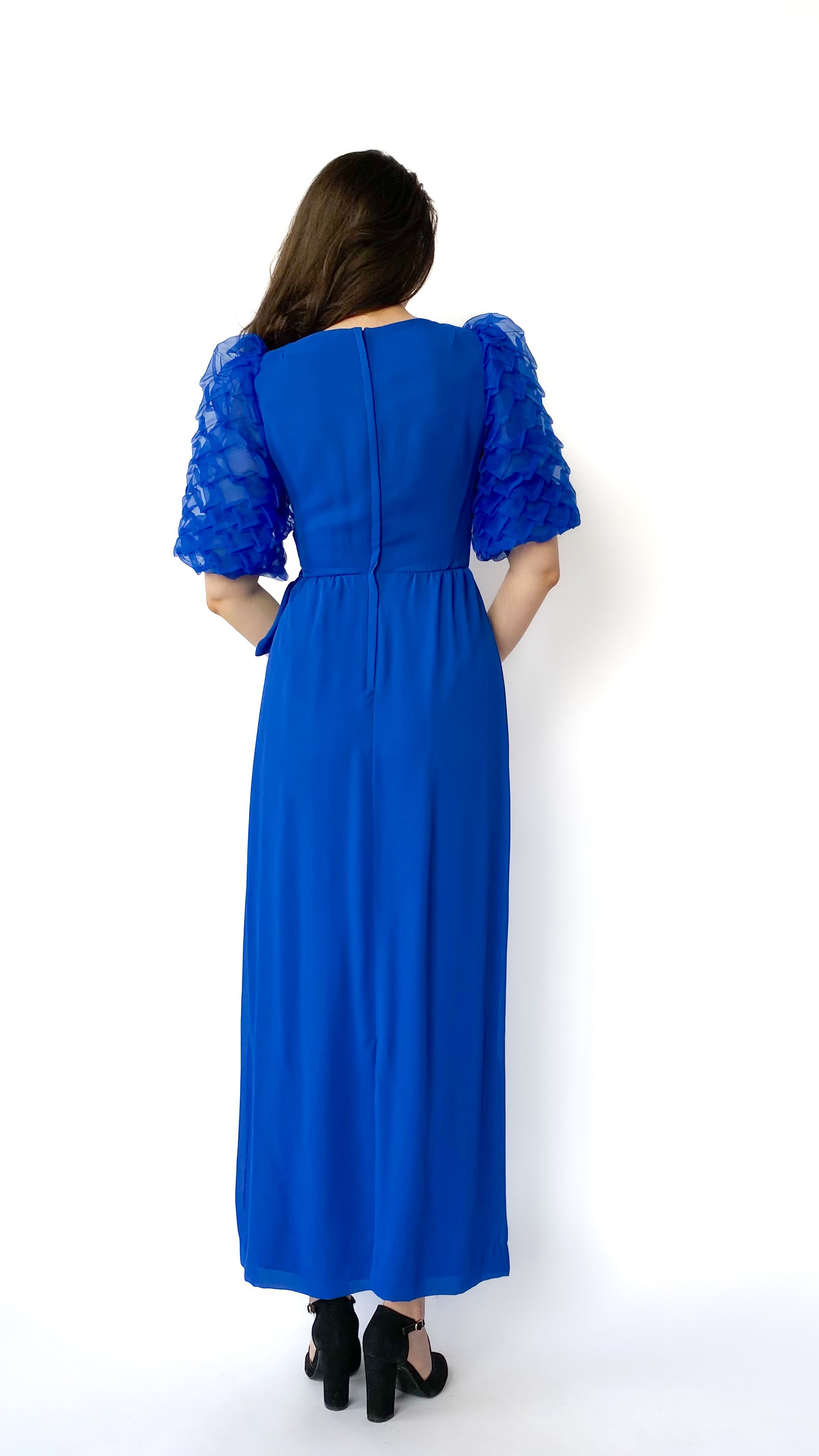 1970s Royal Blue Puff sleeve Dress, sz. S
