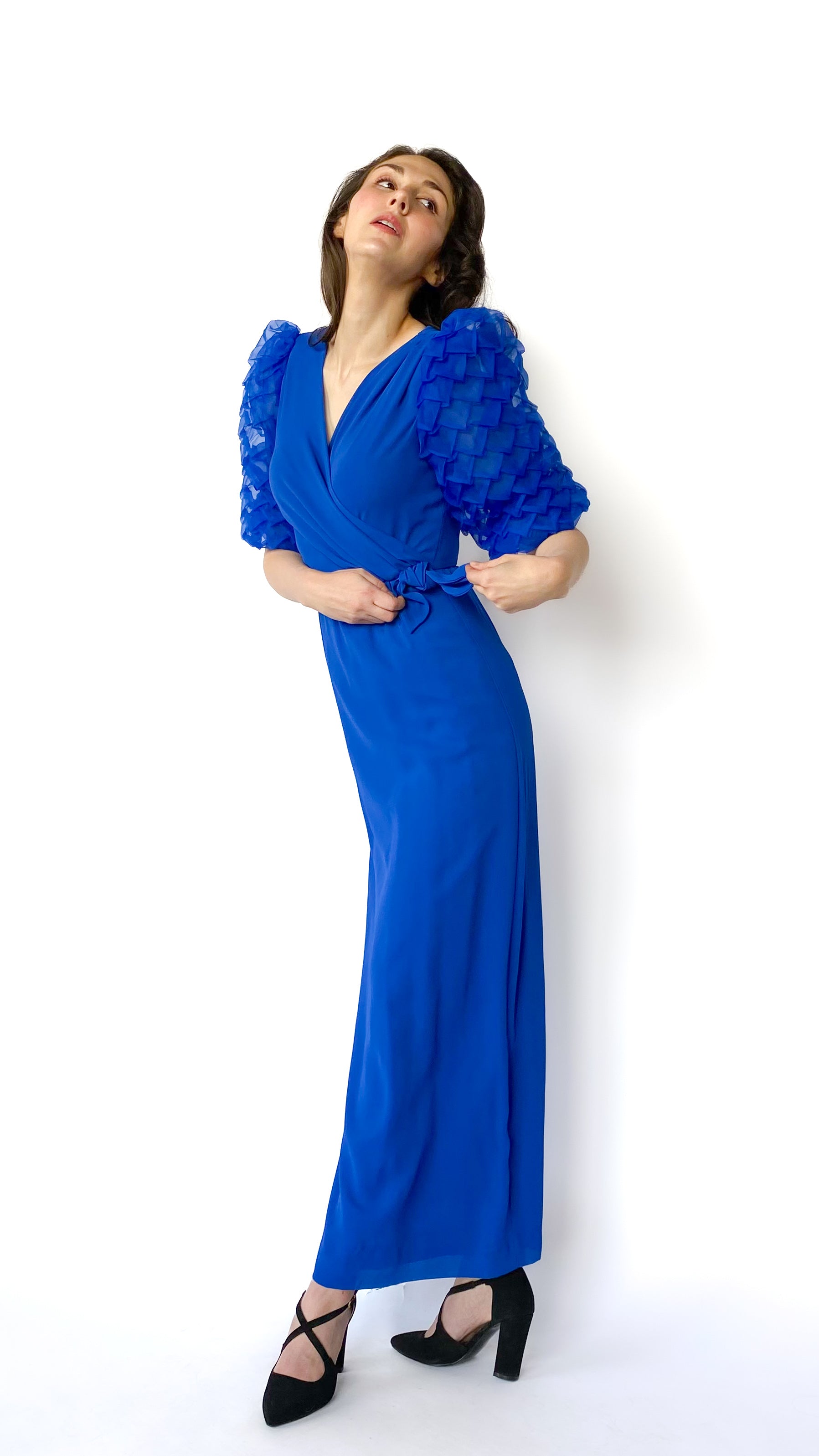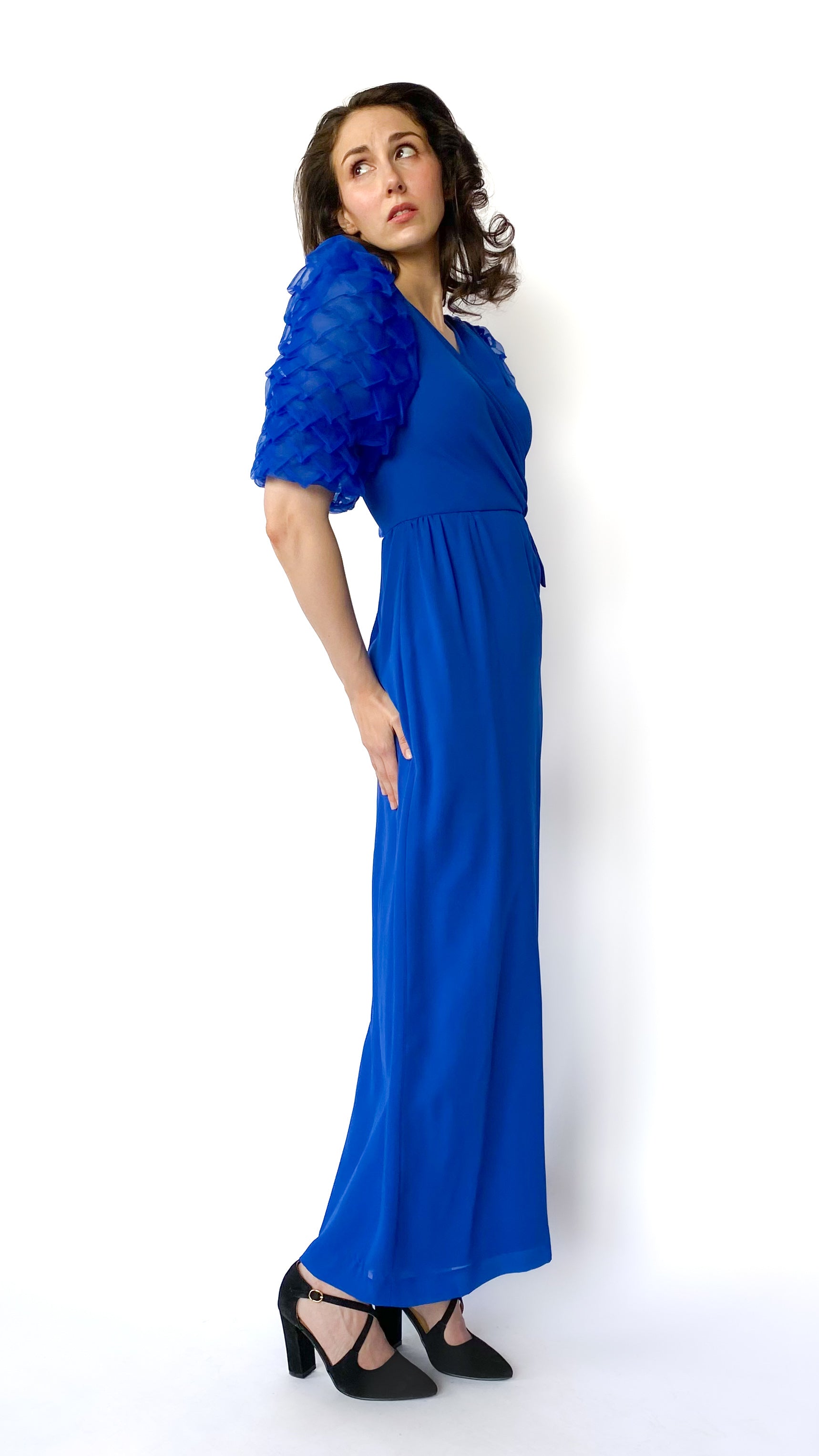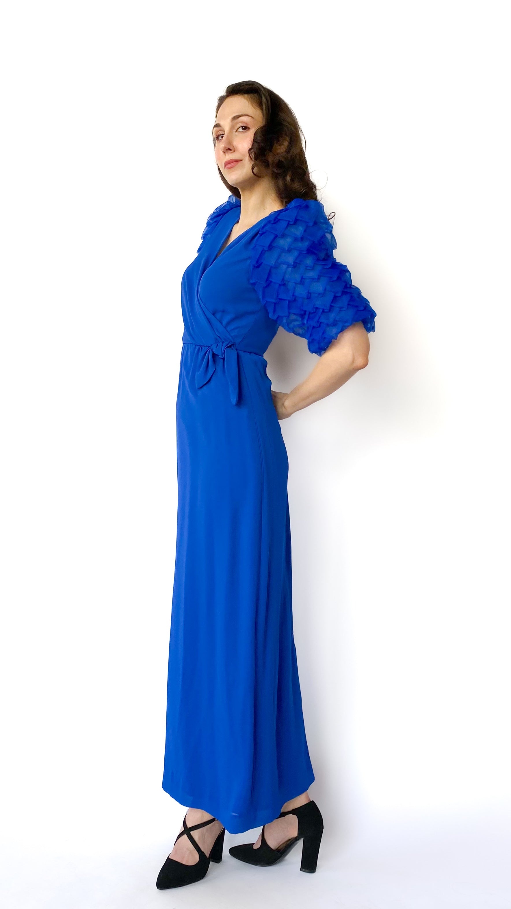 1970s Royal Blue Puff sleeve Dress, sz. S