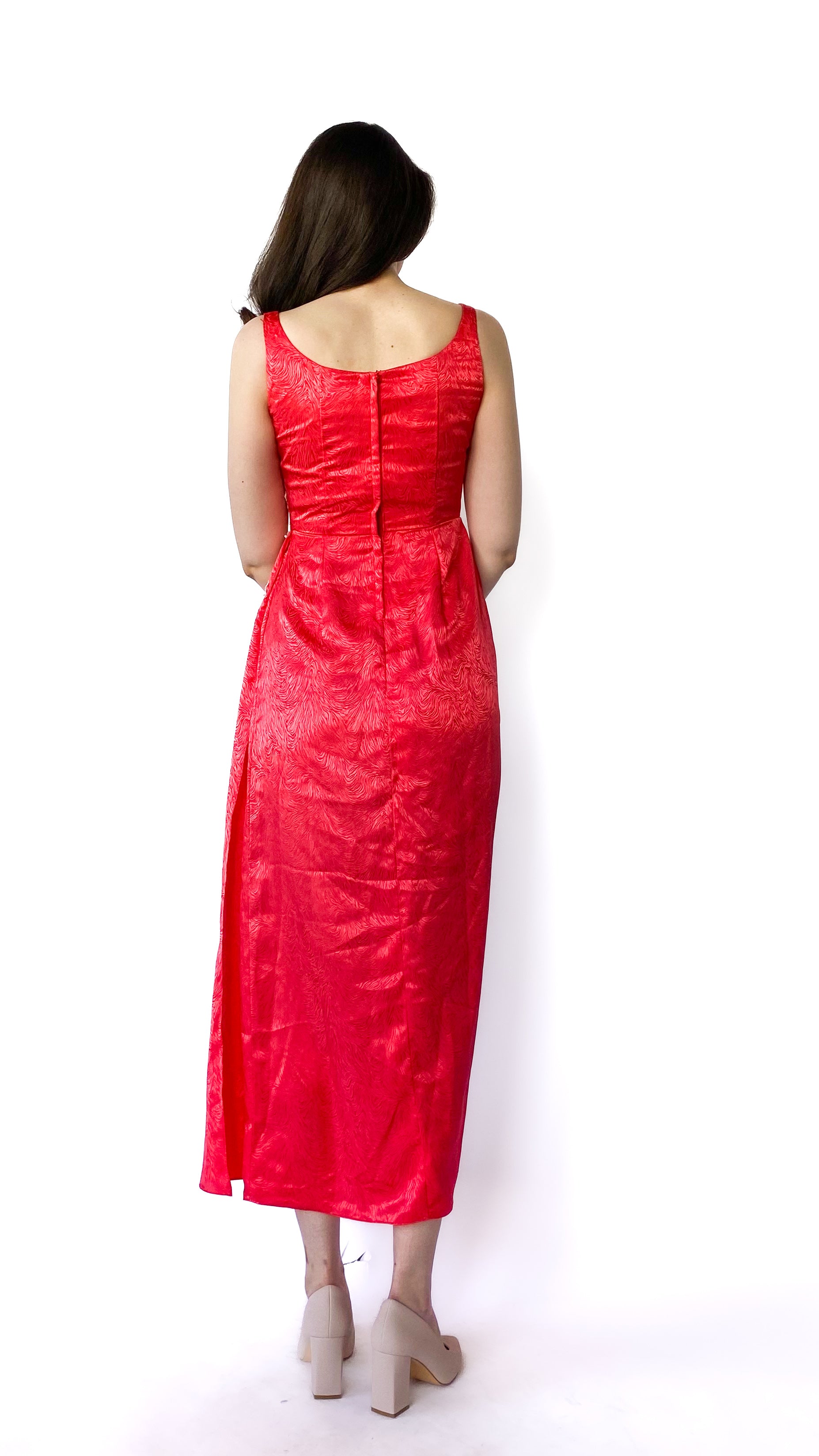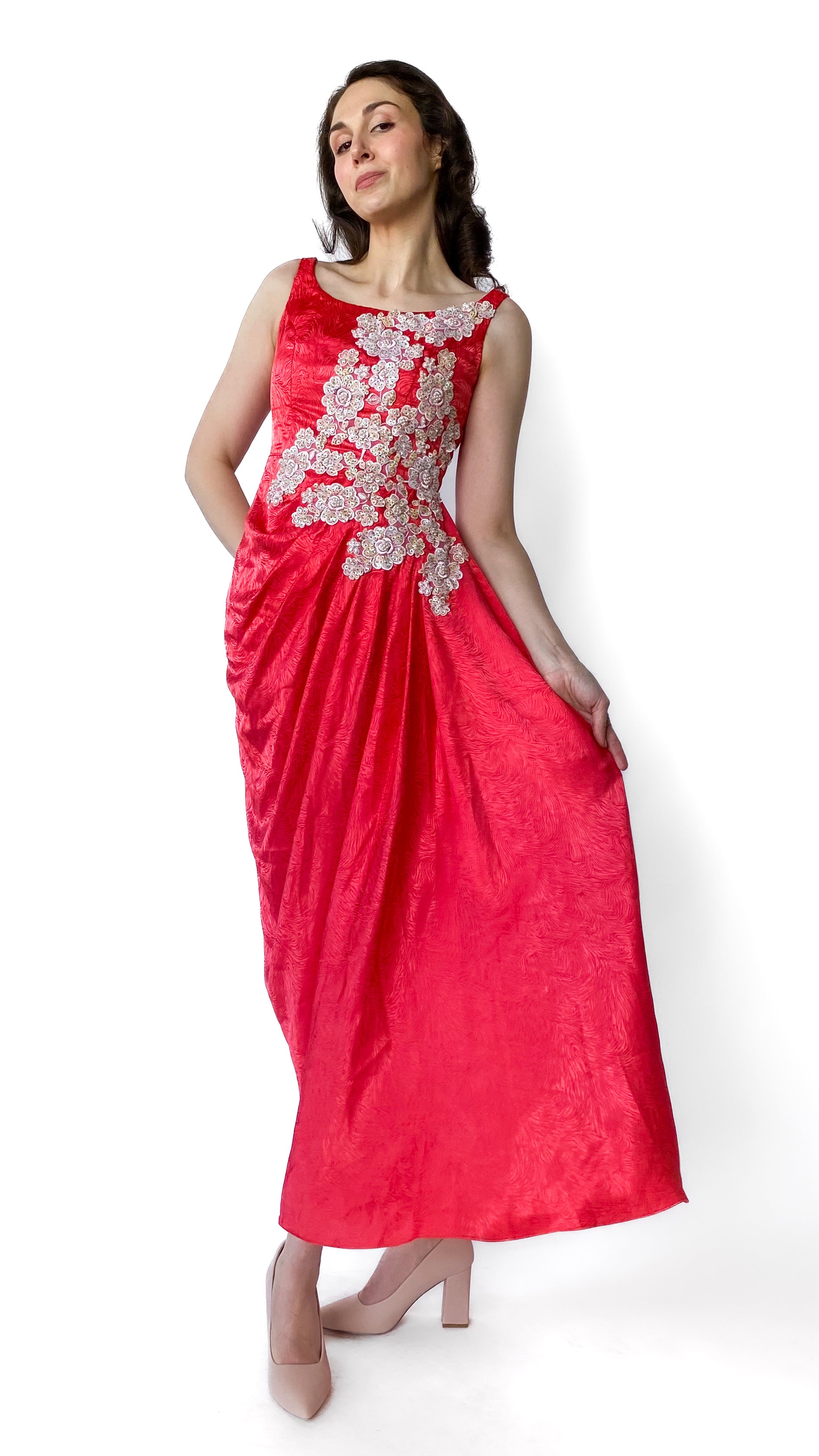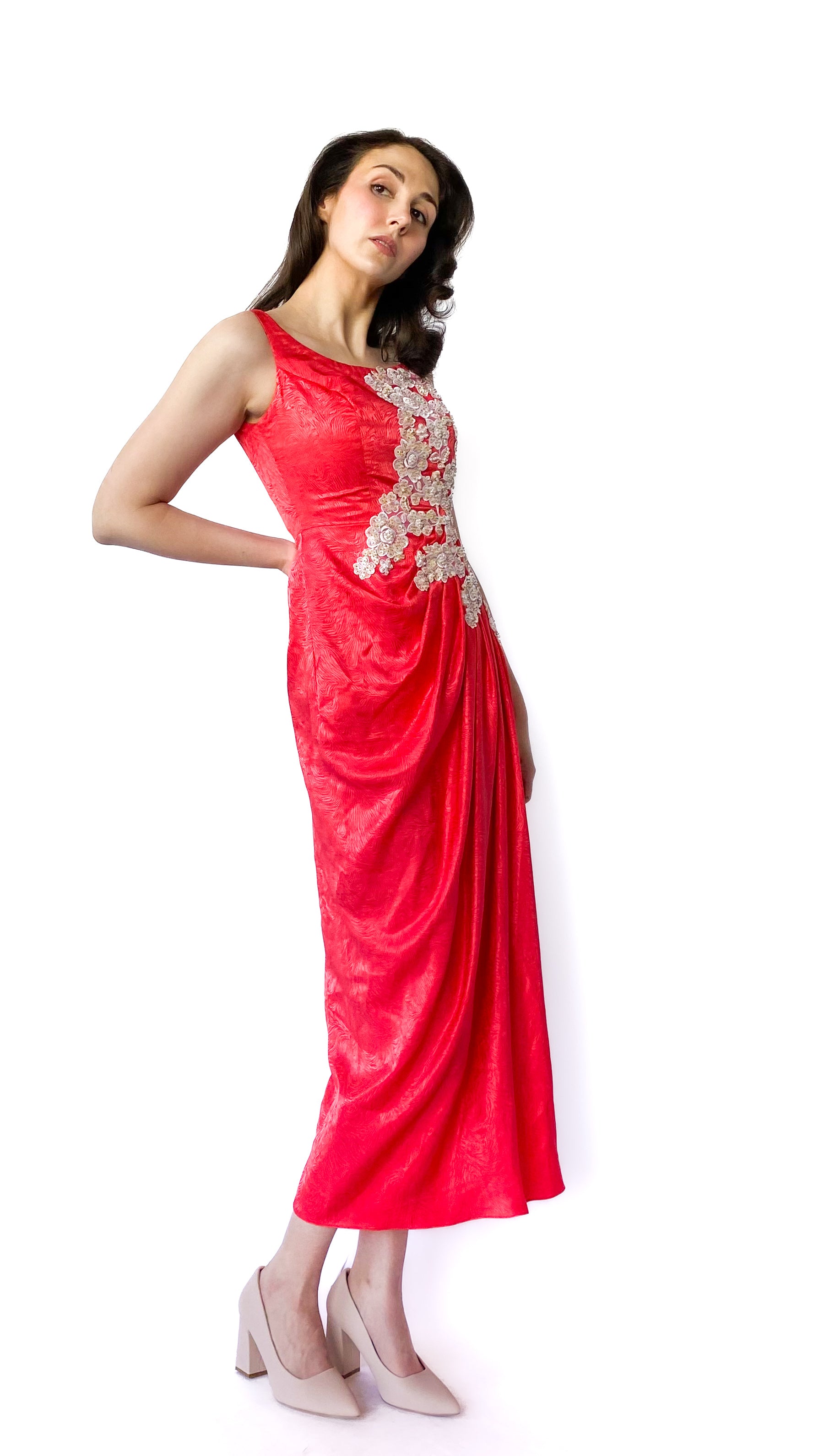 1950s Red Orange Ruffle Lace Party Dress, sz. S