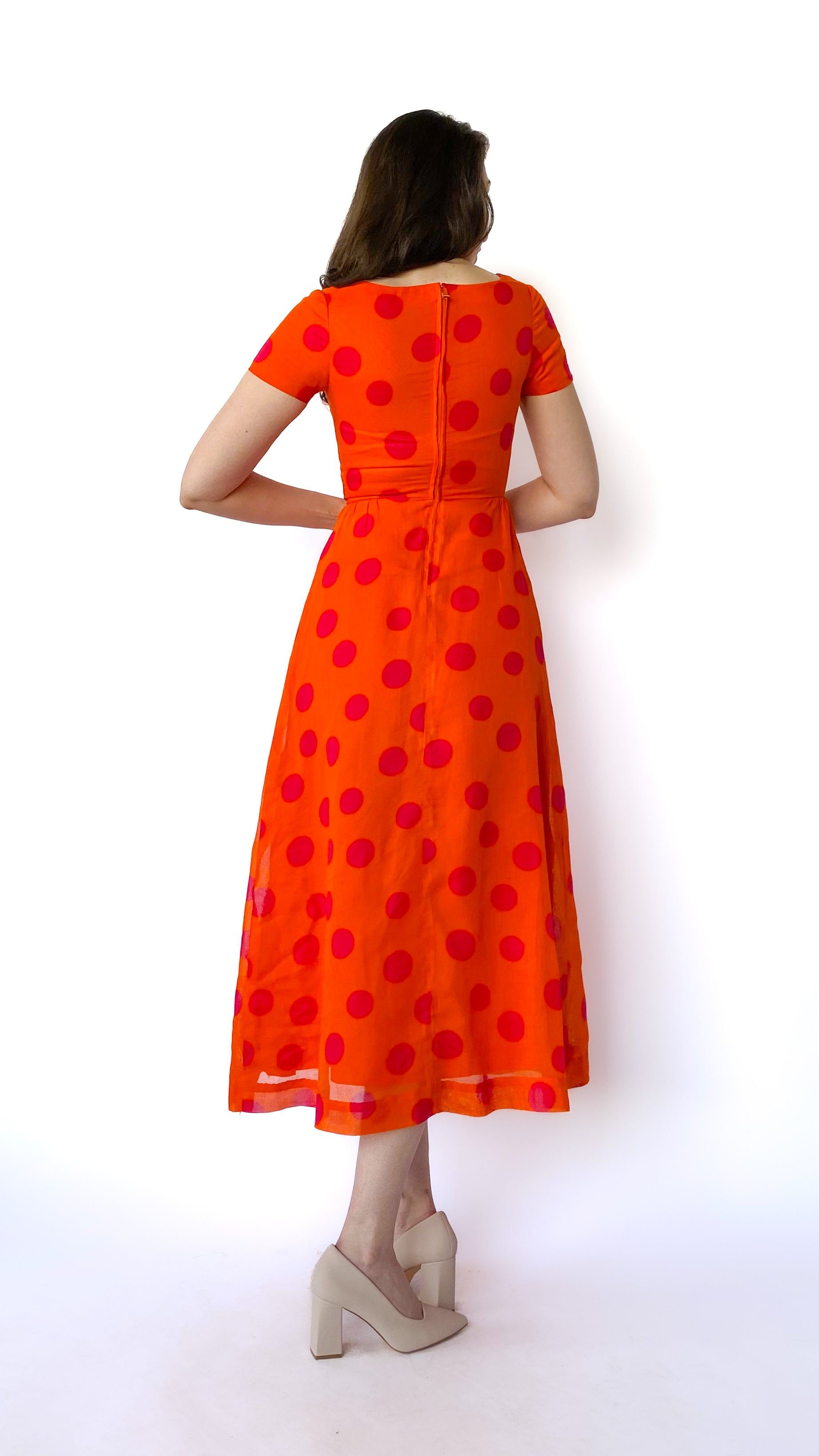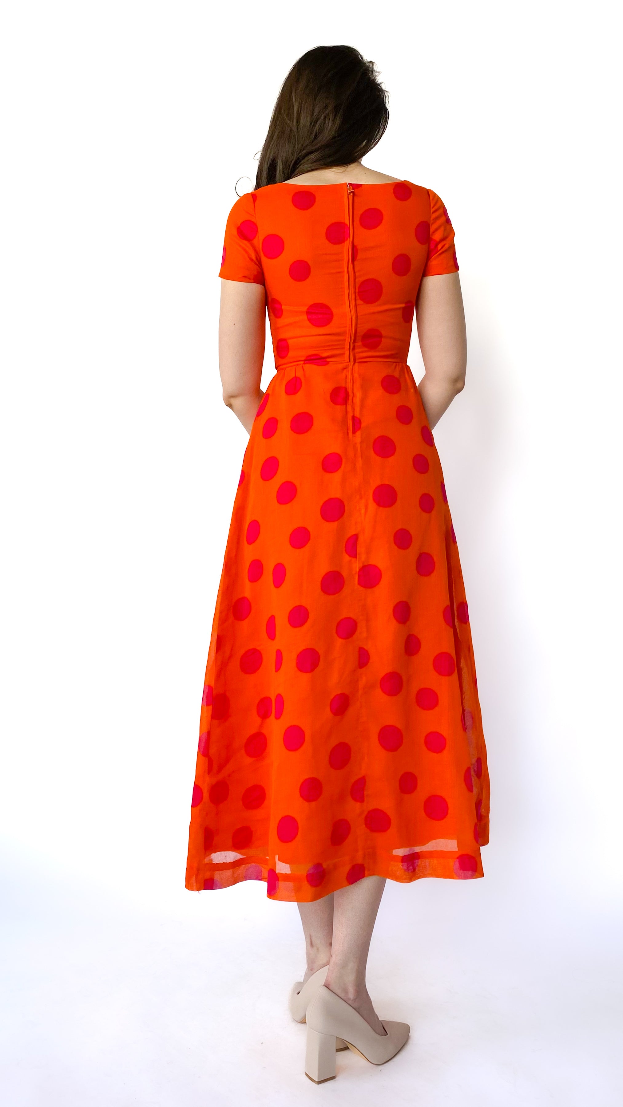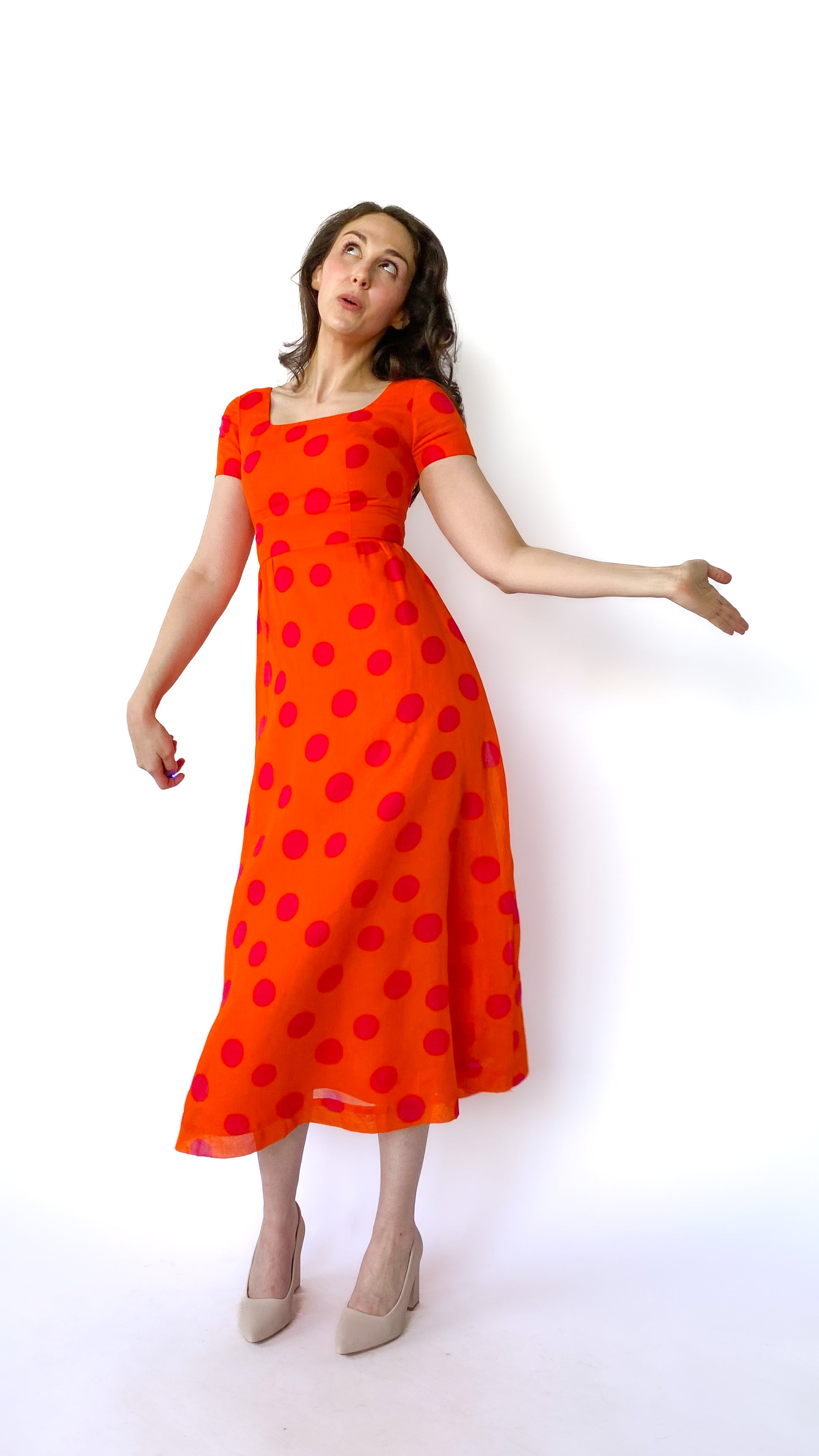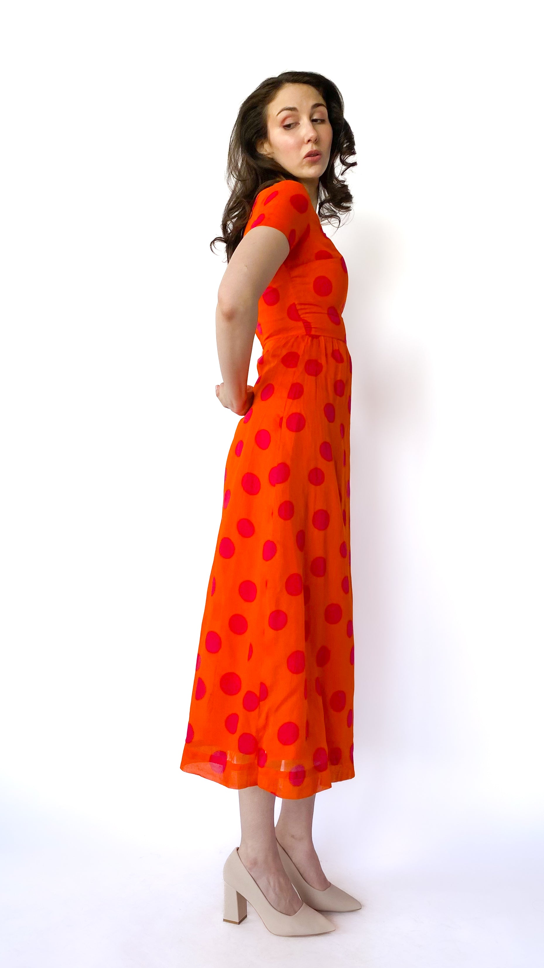 1960s Orange & Pink Polka Dot Dress, sz. XS