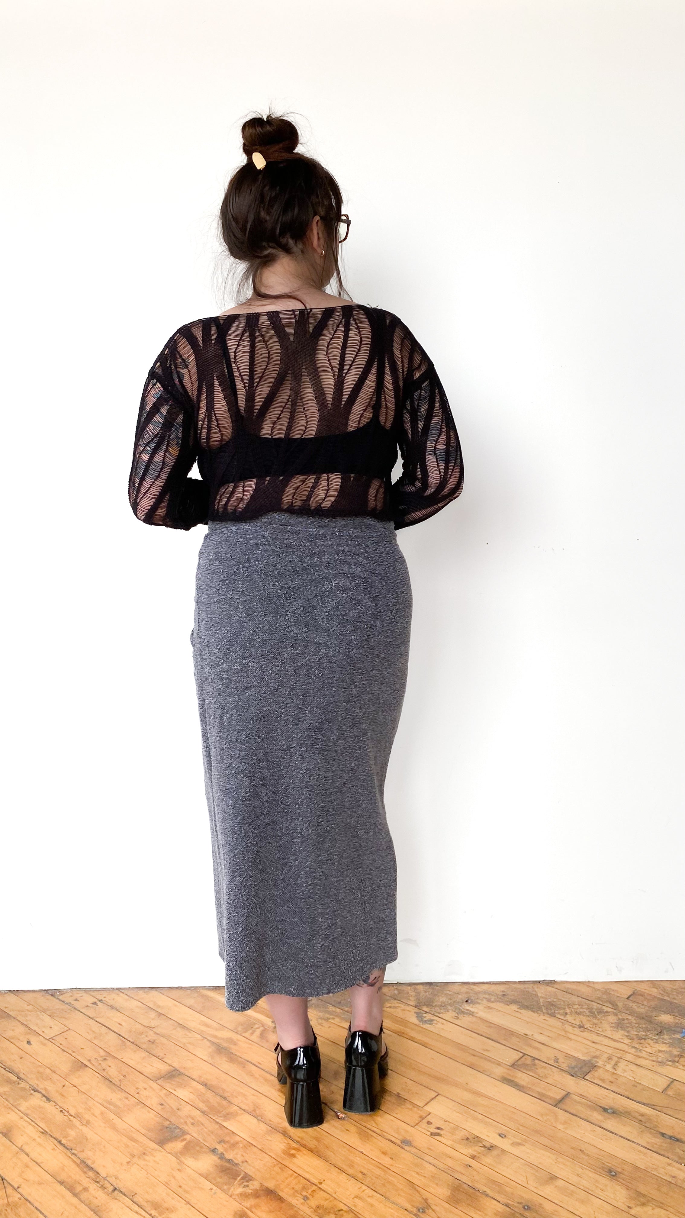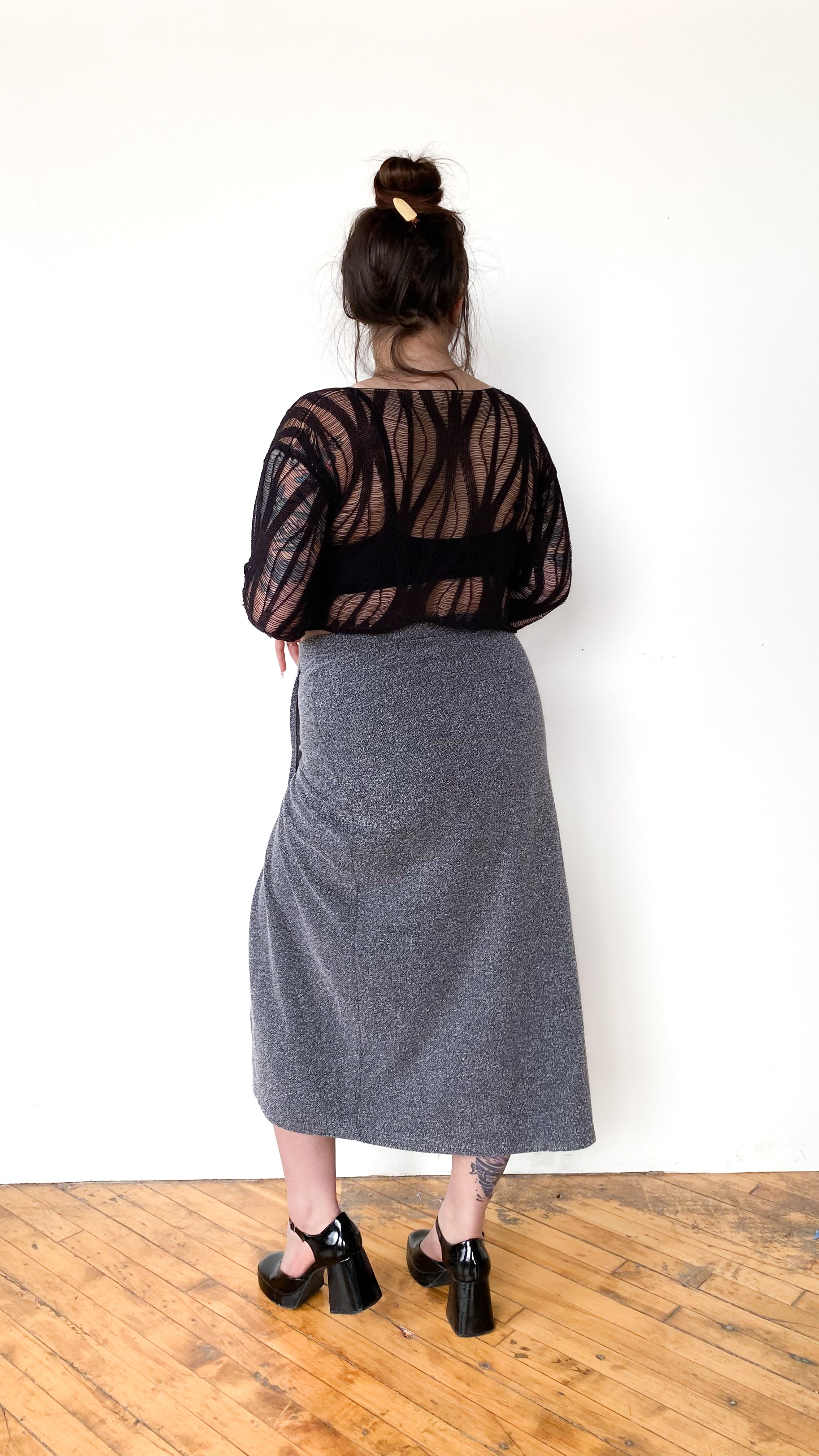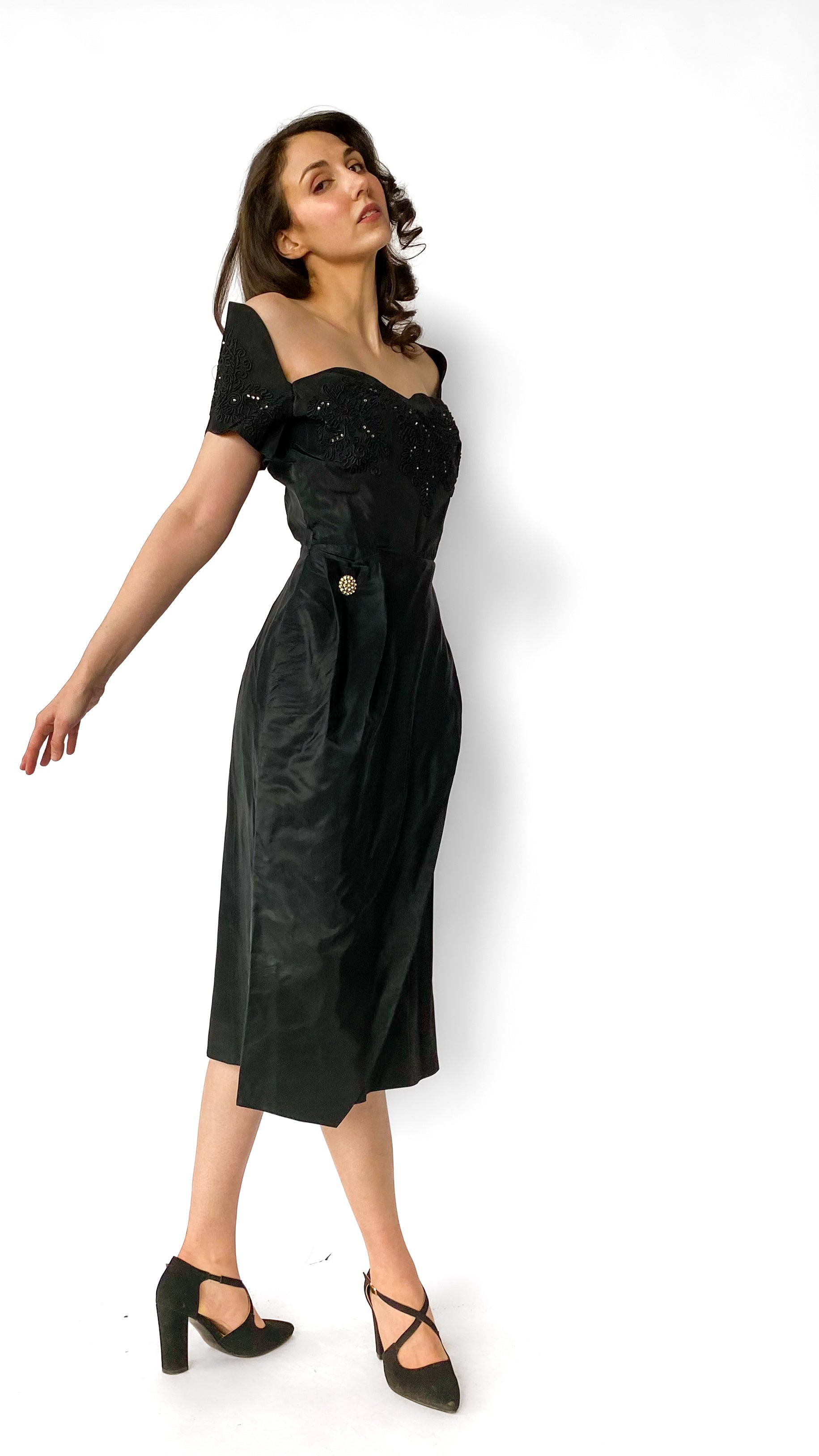 1980s Wool Collared Long Sleeve Black Dress, sz. 2XL-4XL