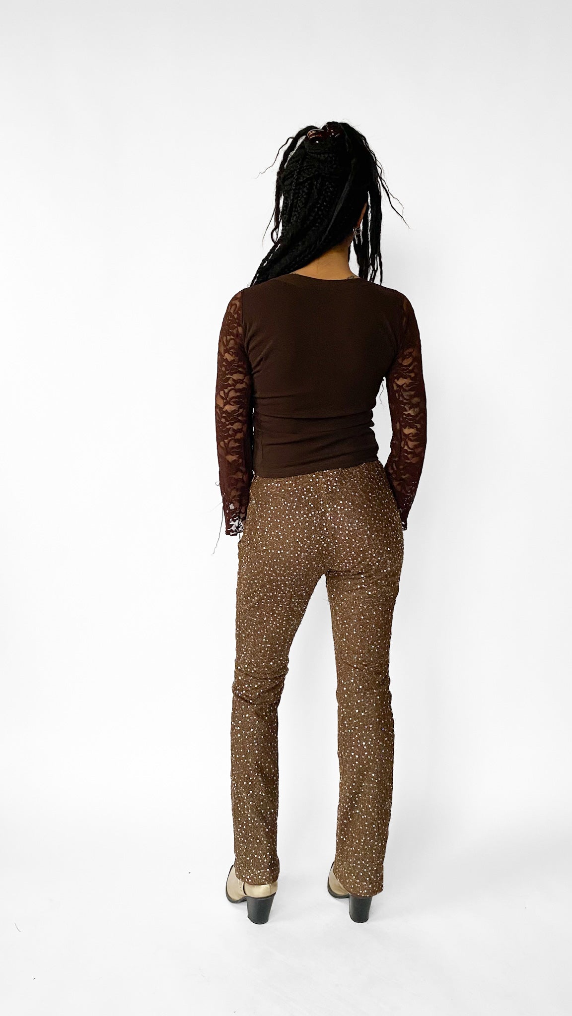 Y2K Brown Sparkle Sequin Pants, sz. S