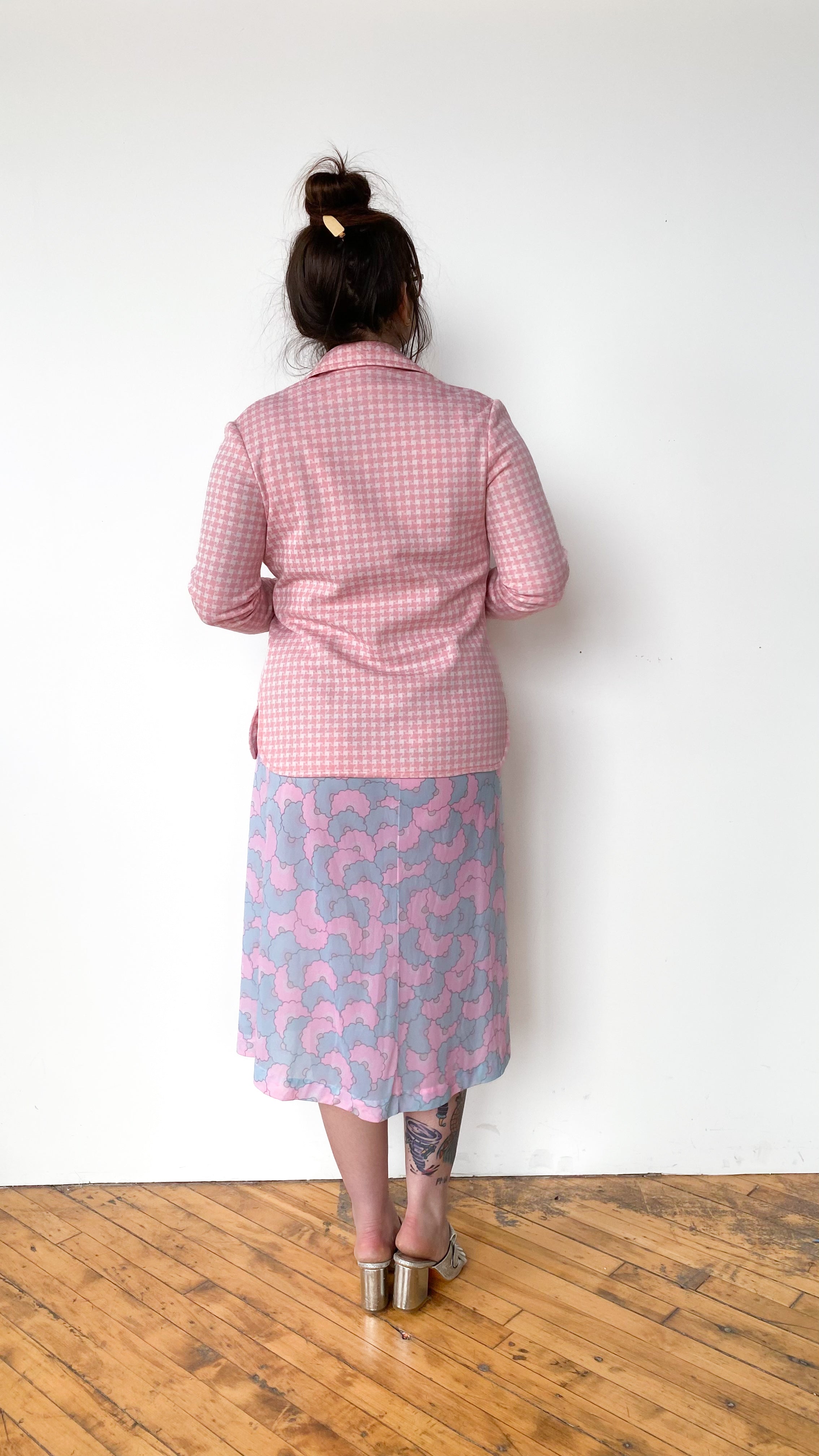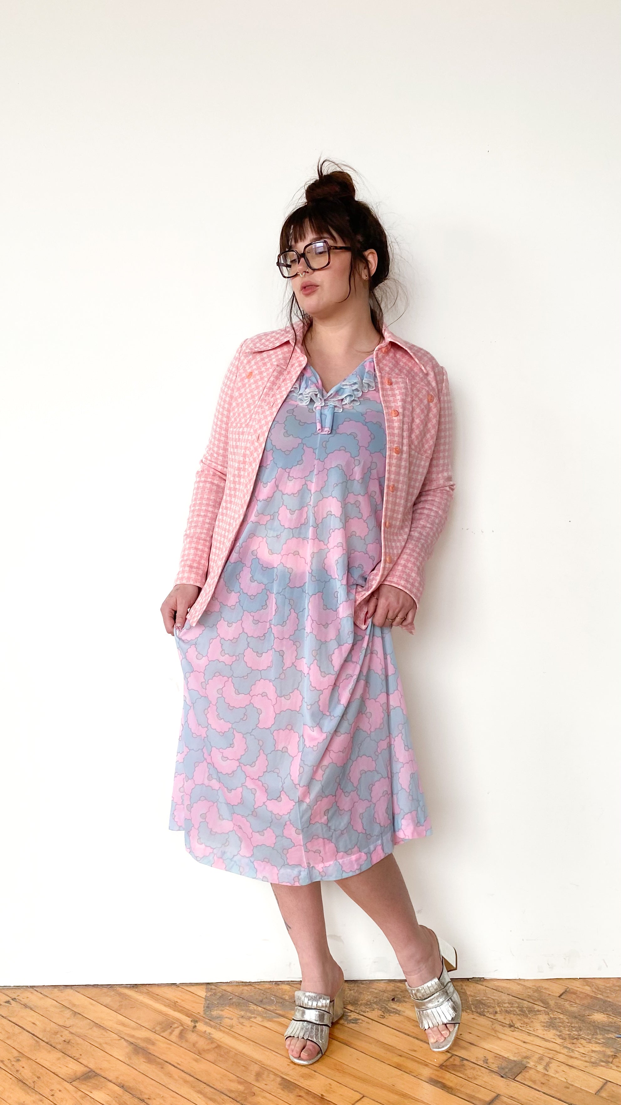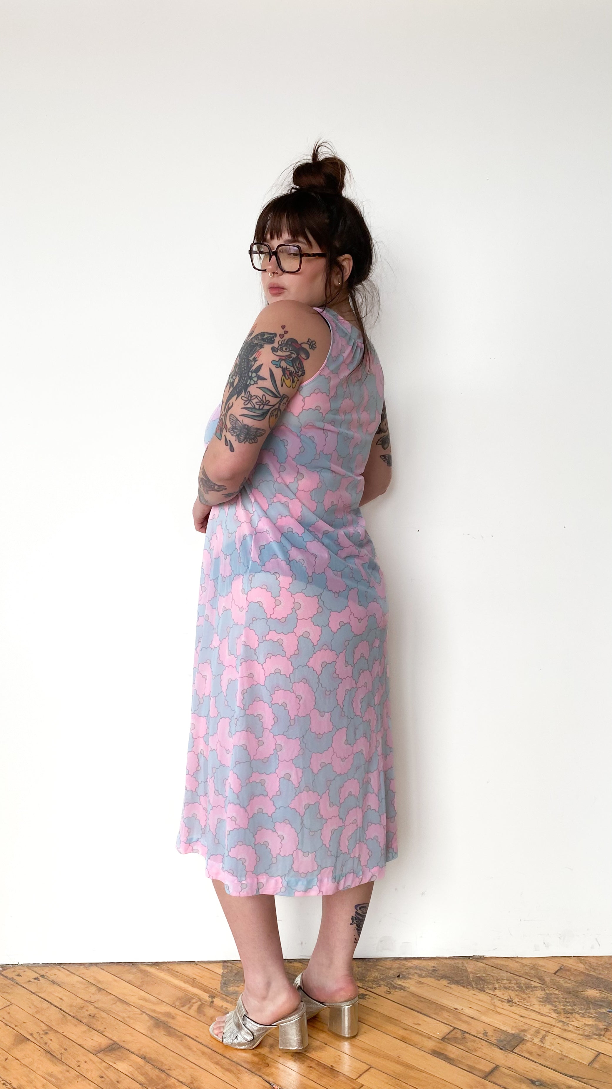 1960s Pink & Blue Sheer Maxi Slip Dress, sz. L-1XL