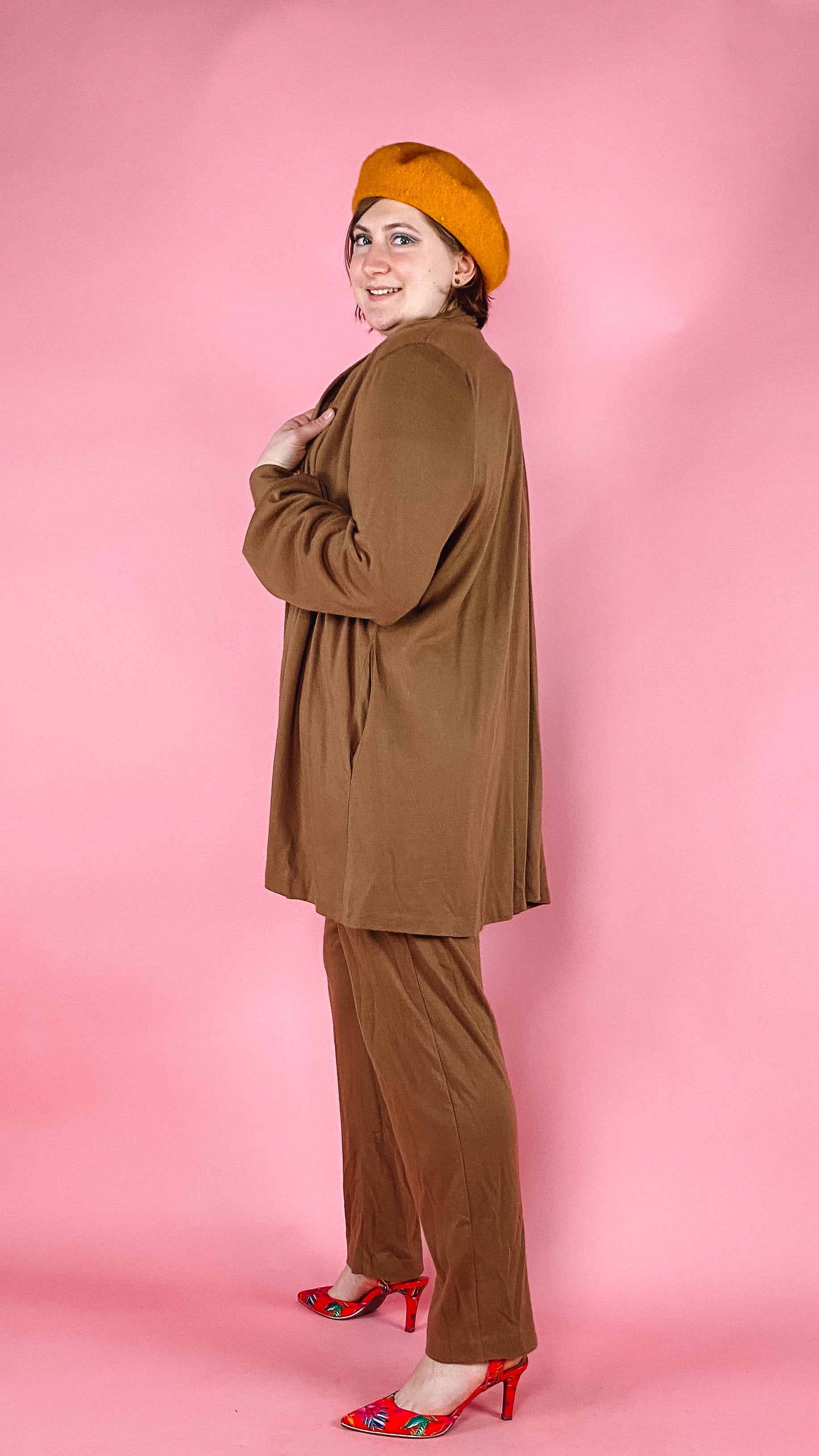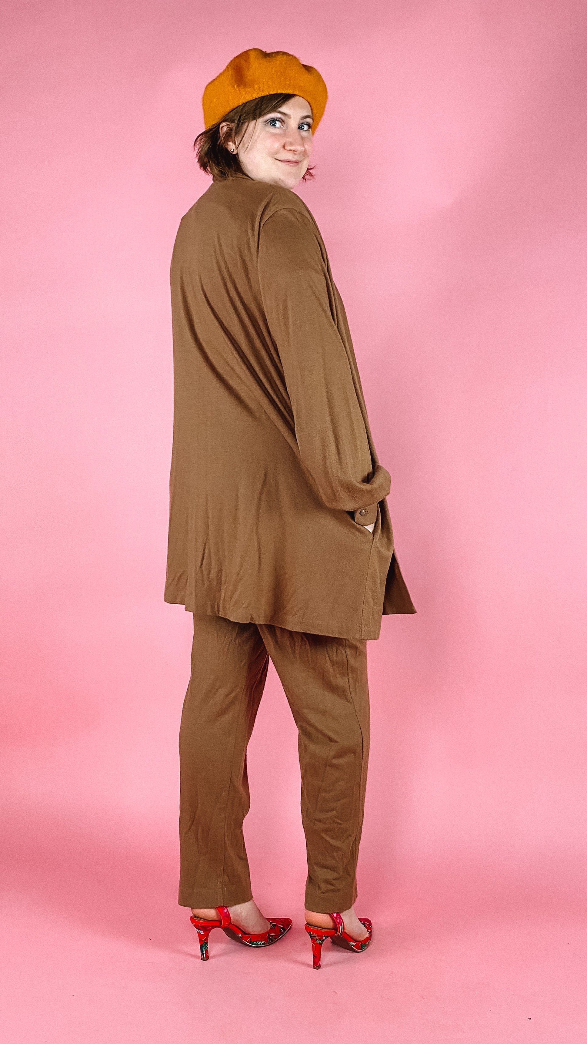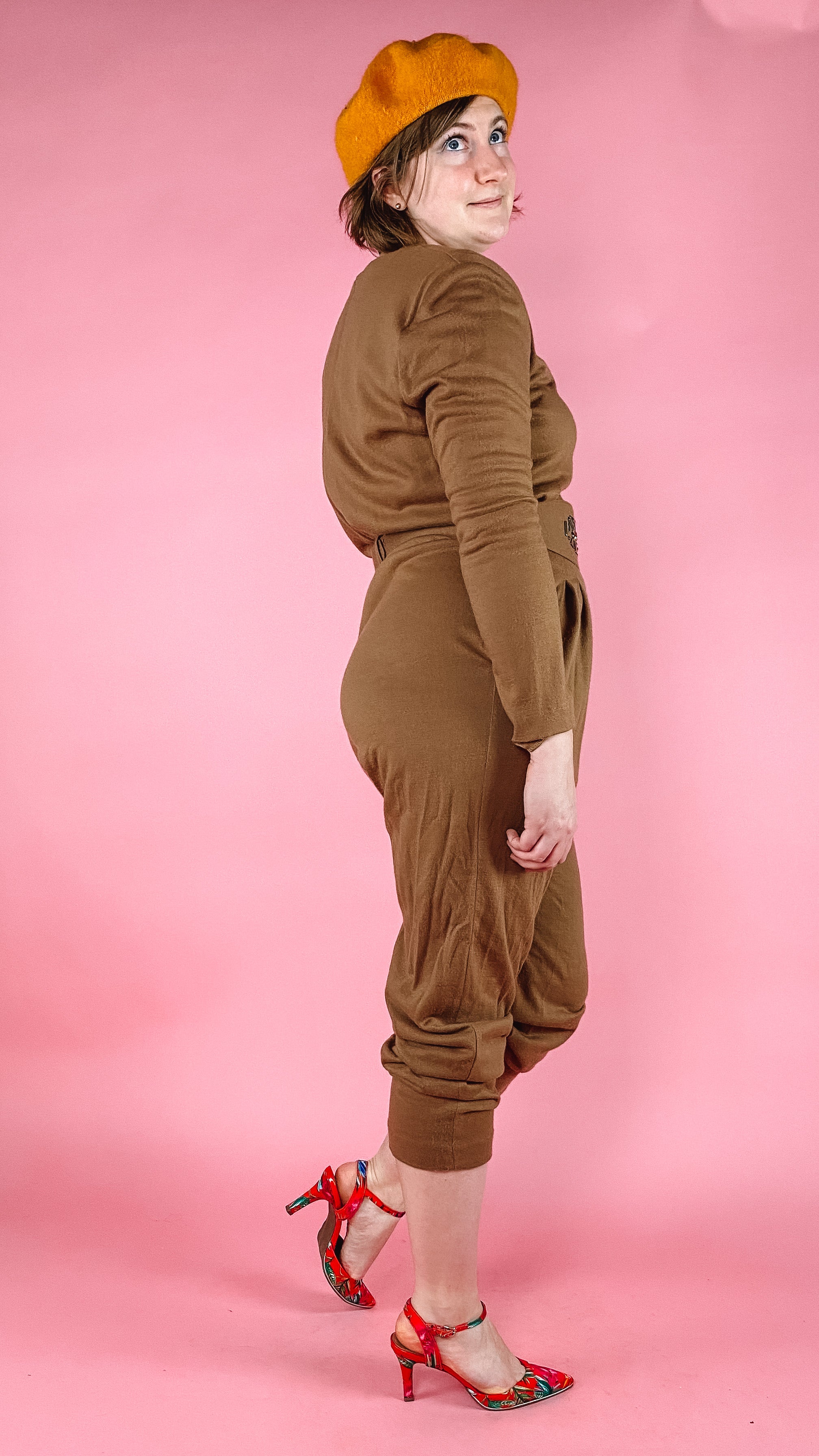 1980s Coffee Wool blend Jumpsuit and Cardigan, sz. L