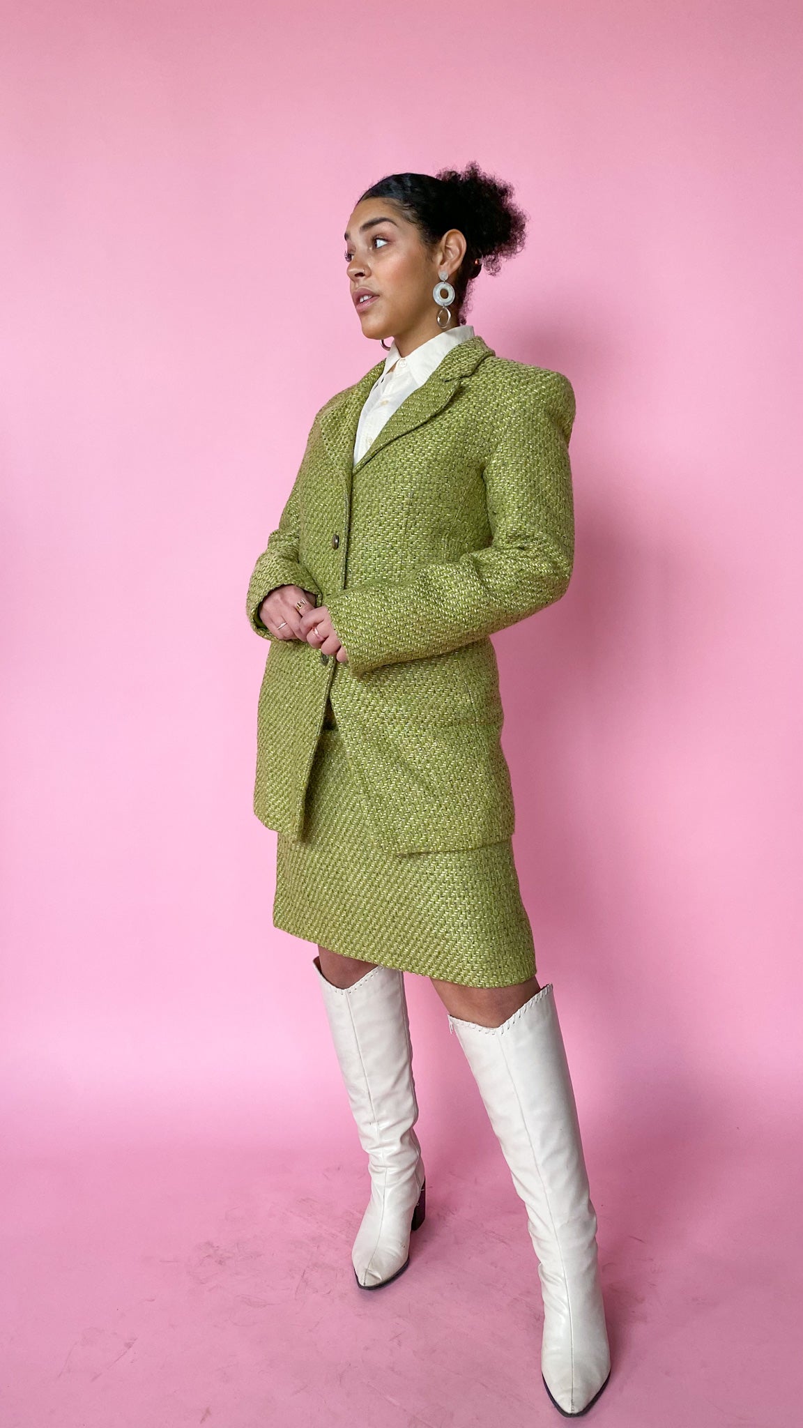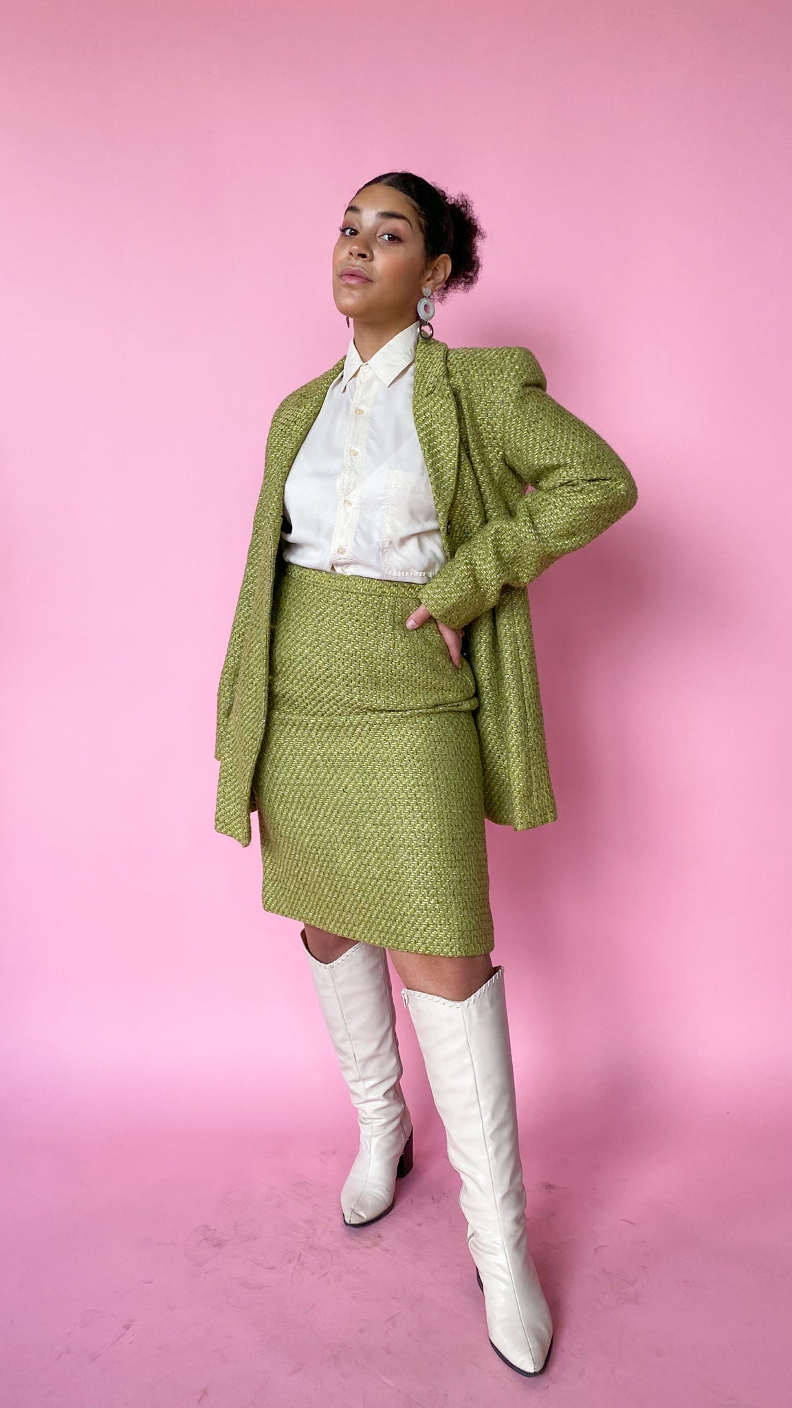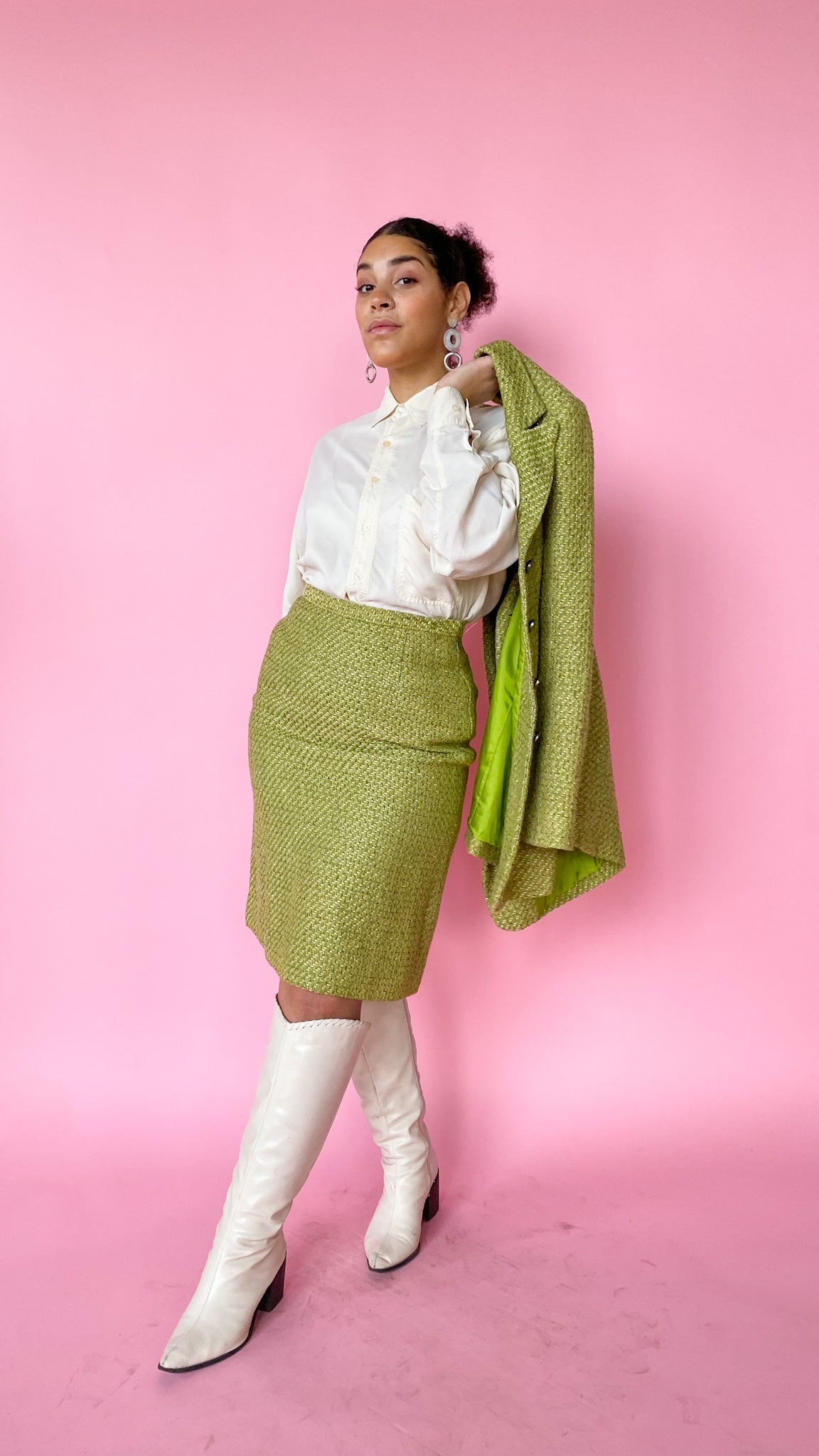 1980s Green Shimmer Tweed Suit Set, sz. M