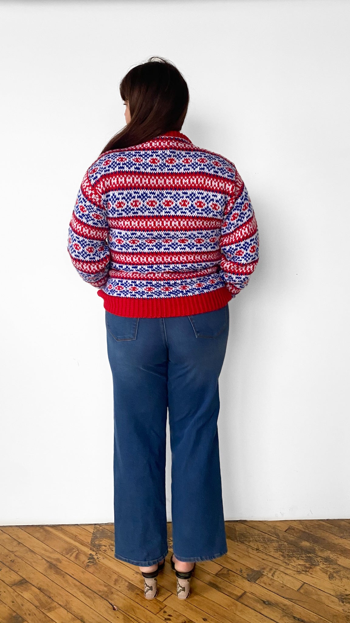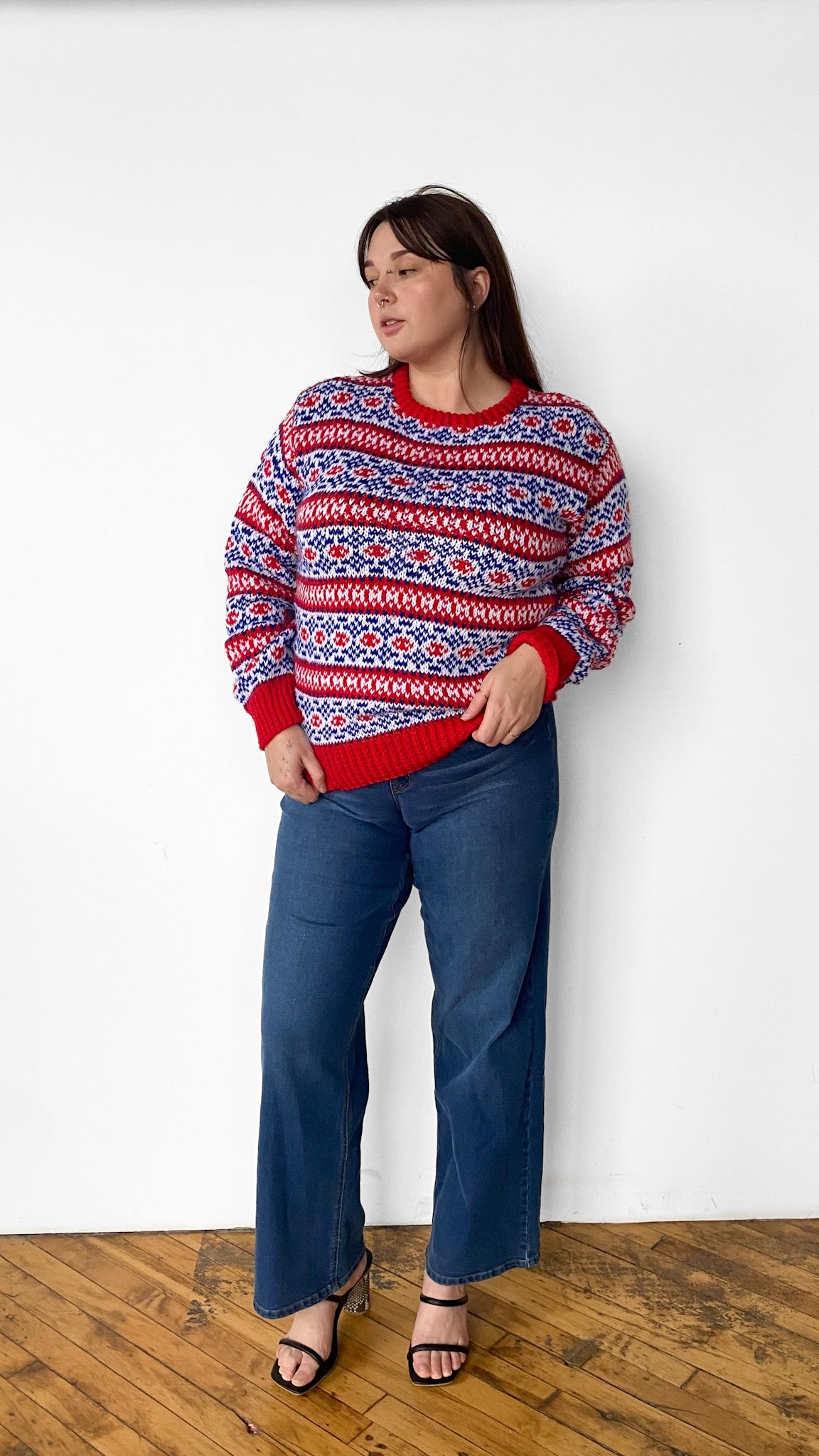 1980s Red and Blue Knit Sweater, sz. 2XL-3XL