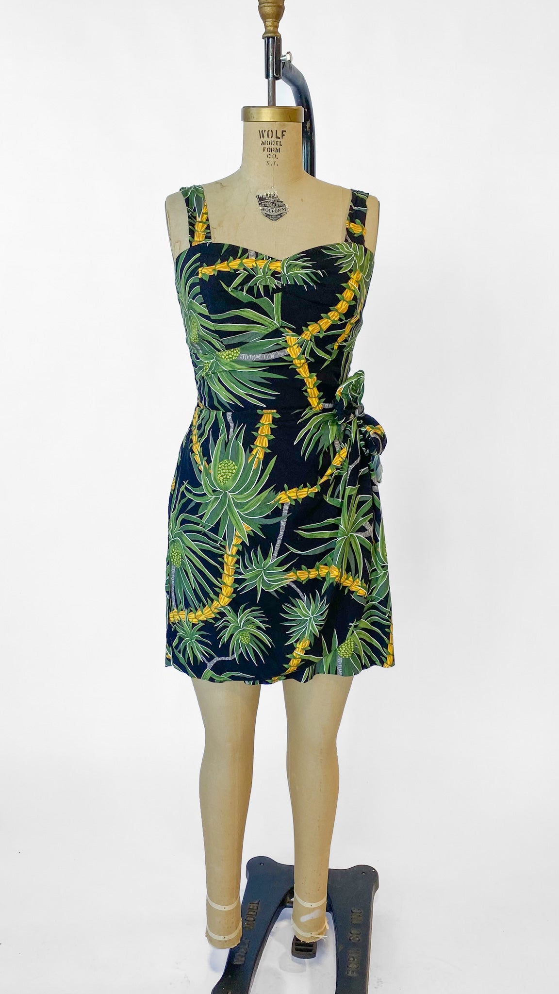 1990s Black Tropical Wrap Skirt Dress, sz. S-L