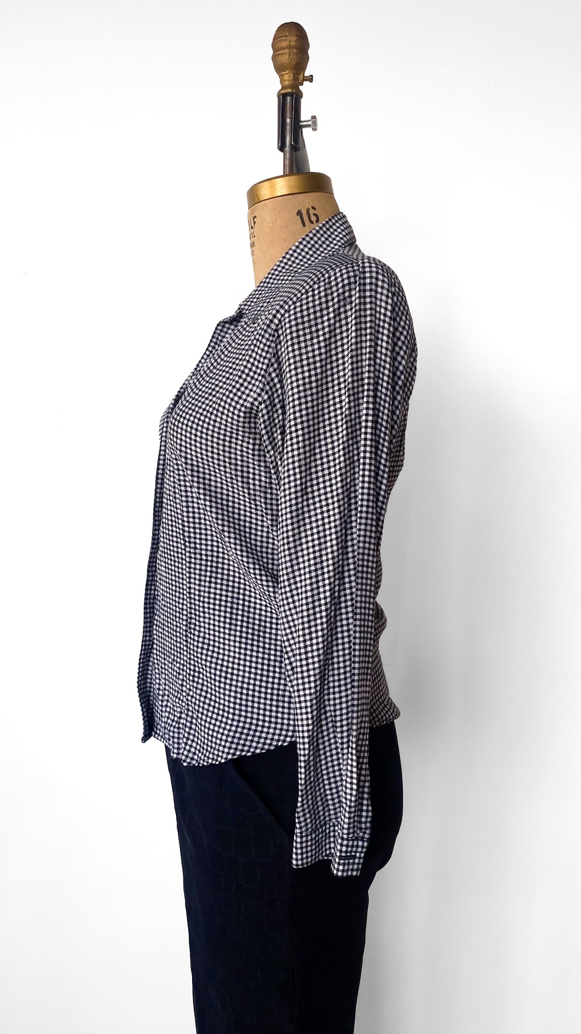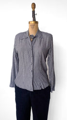 1990s Black + White Houndstooth Blouse, sz. L