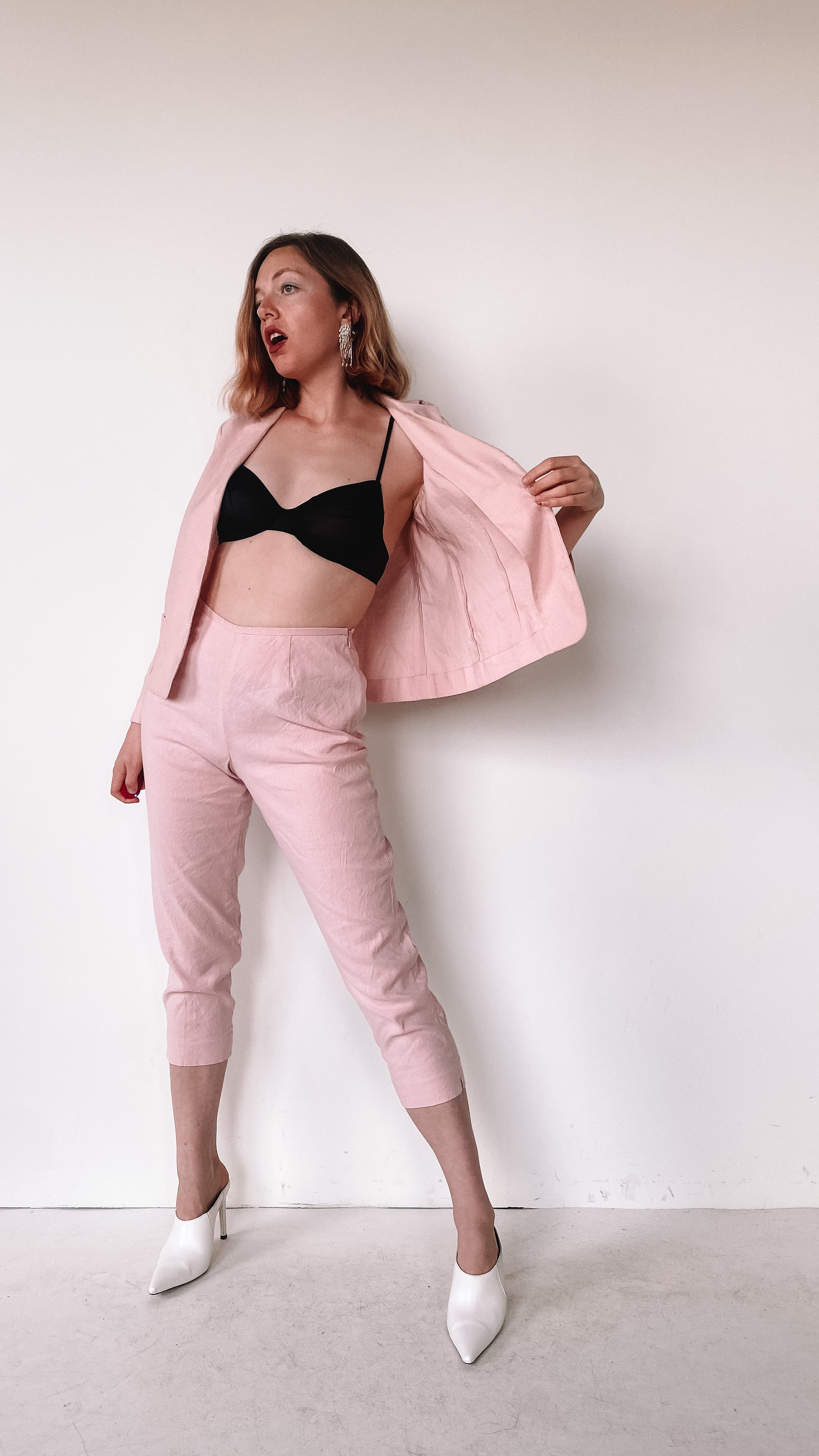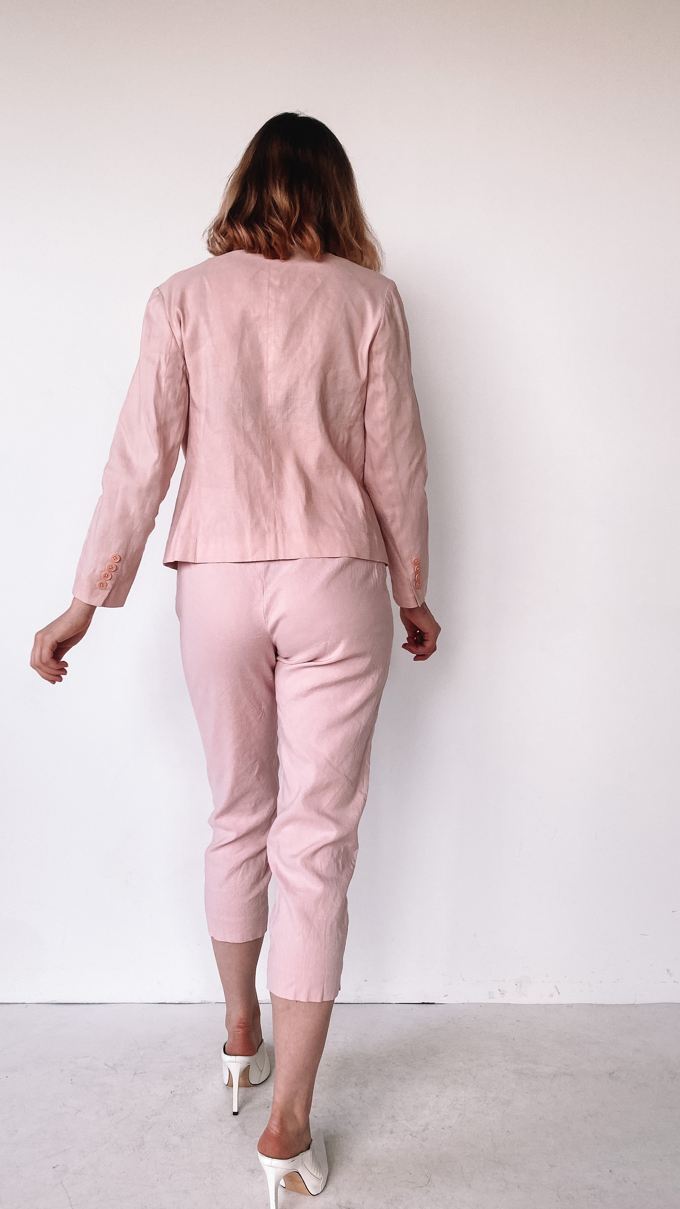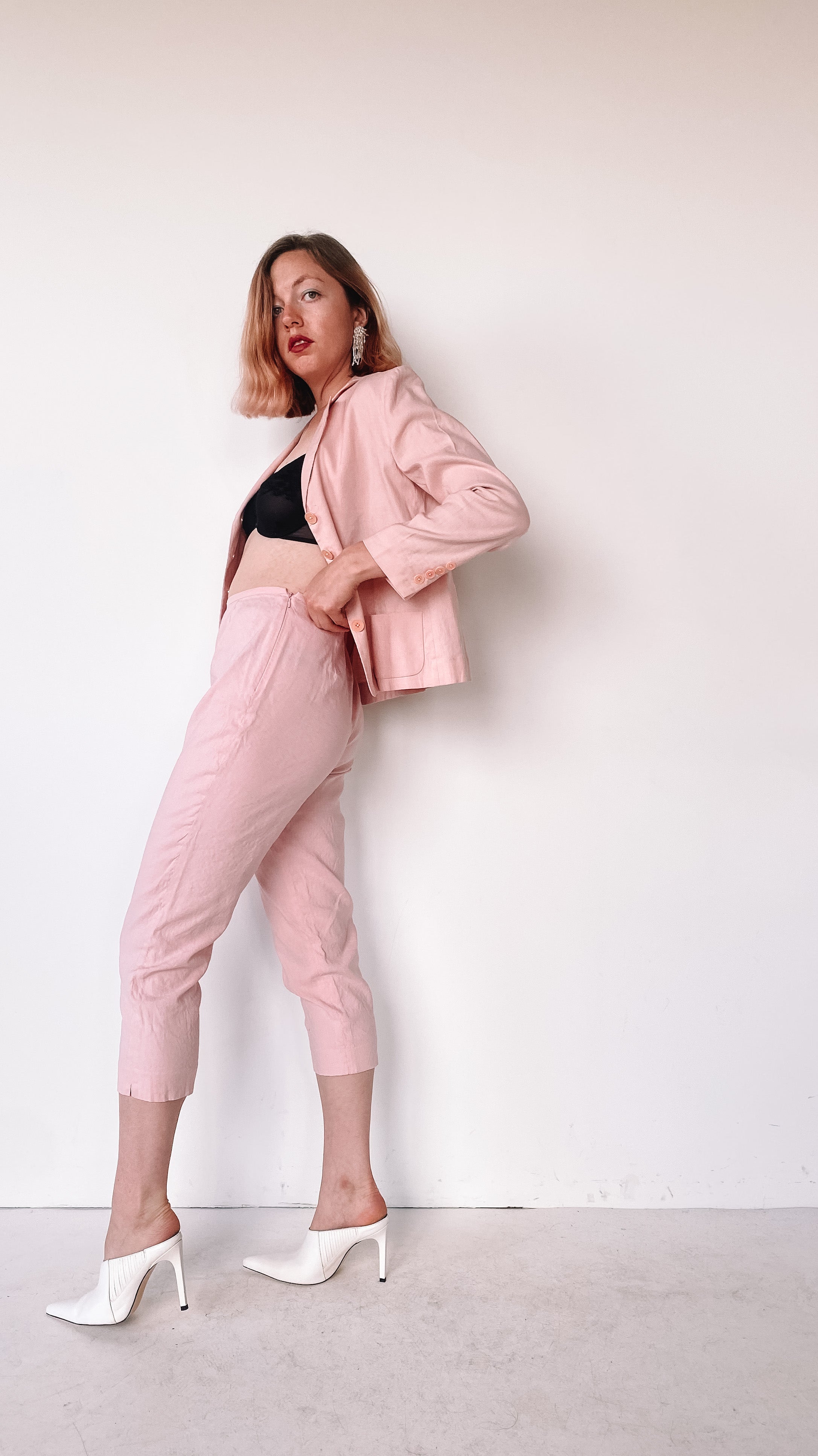 Y2K Powder Pink Linen Pant Suit, sz. S