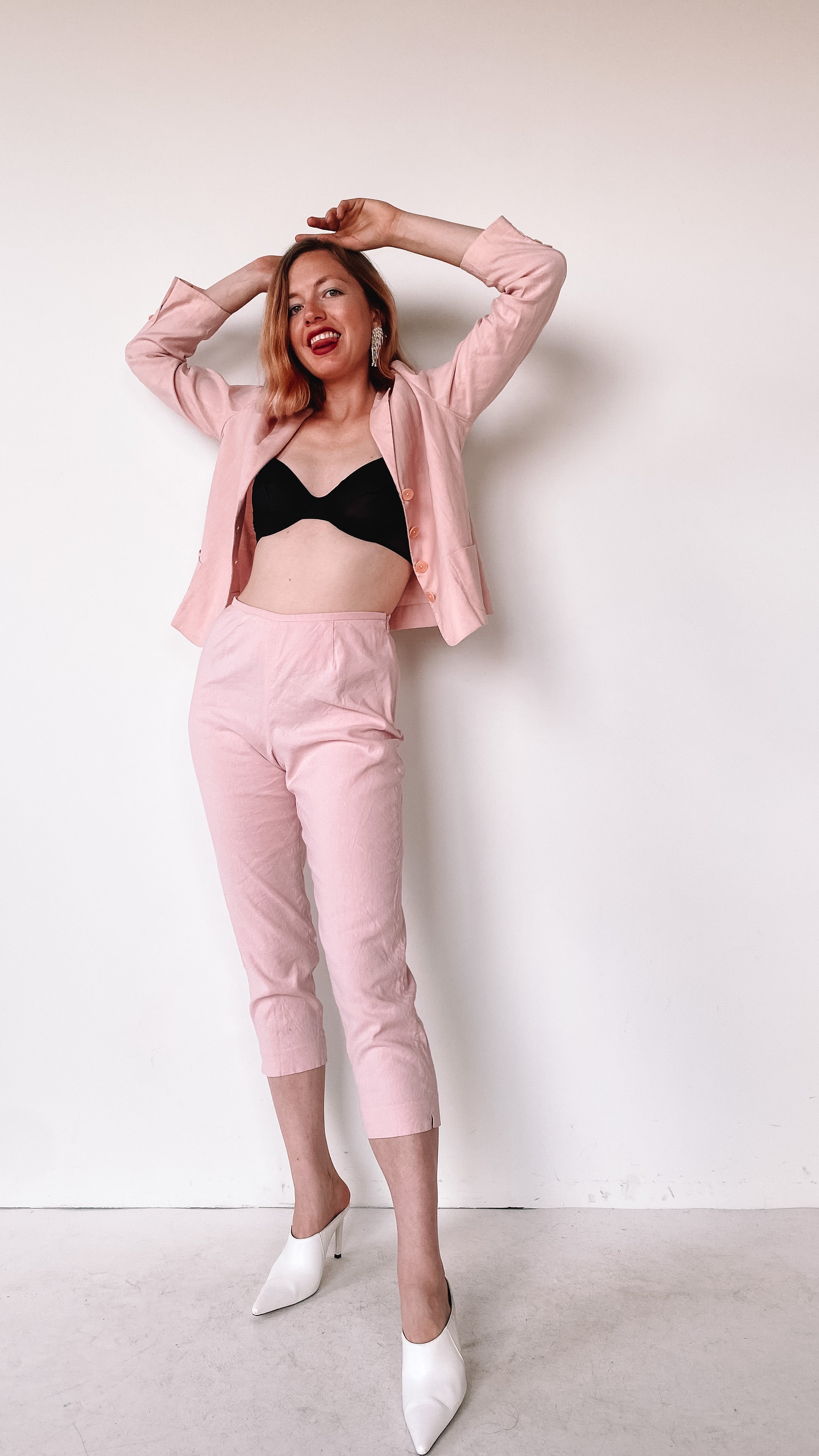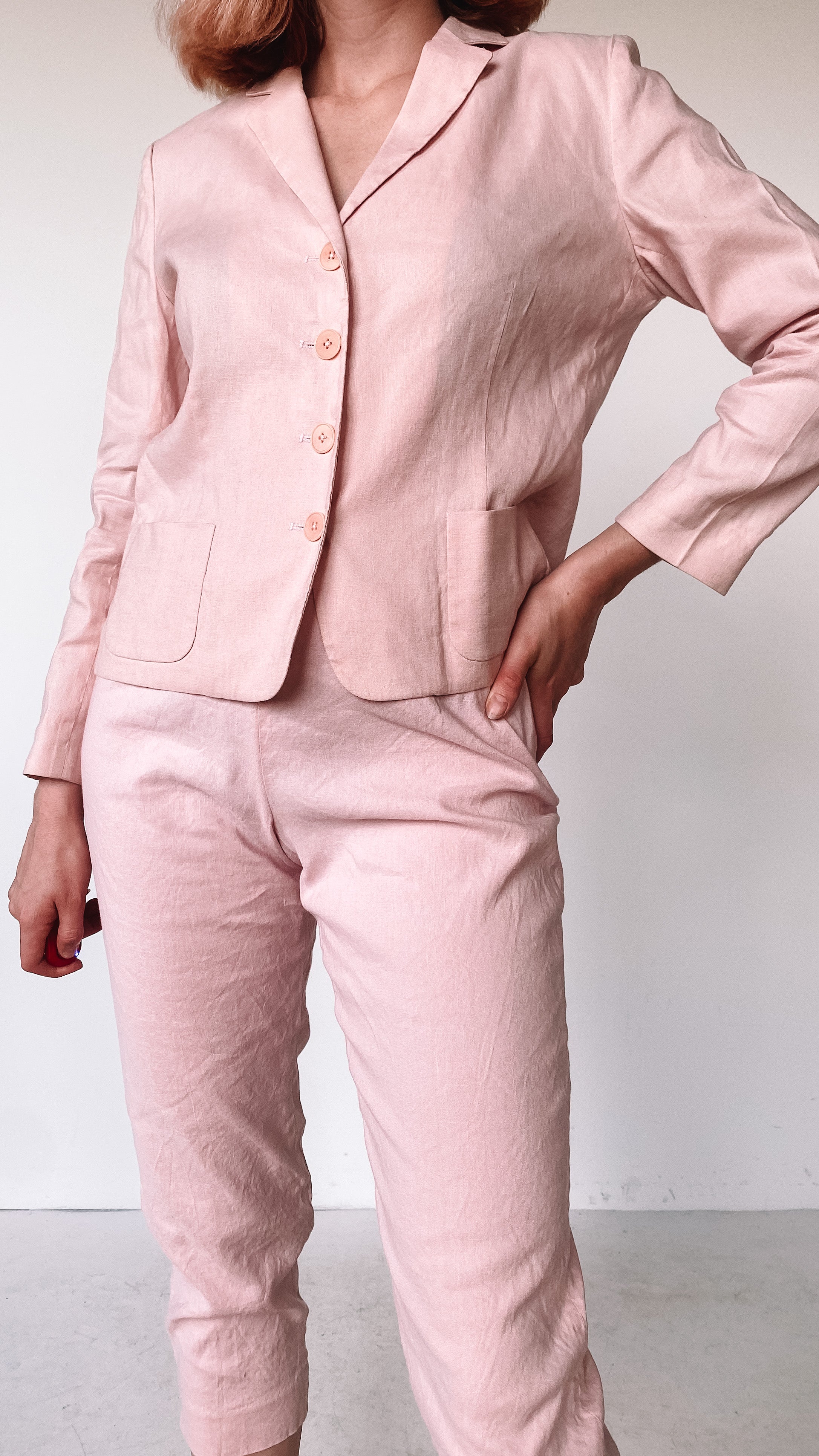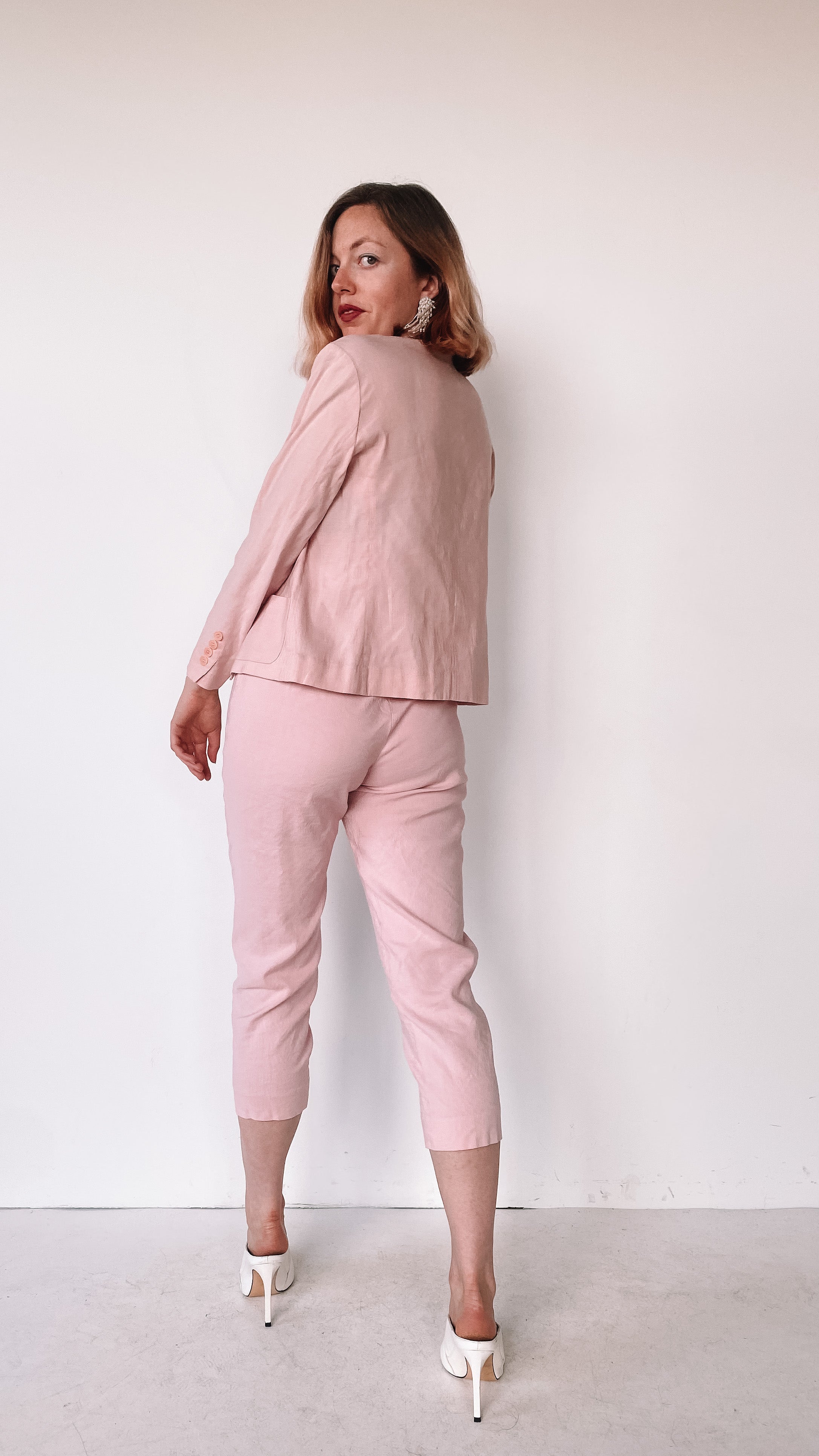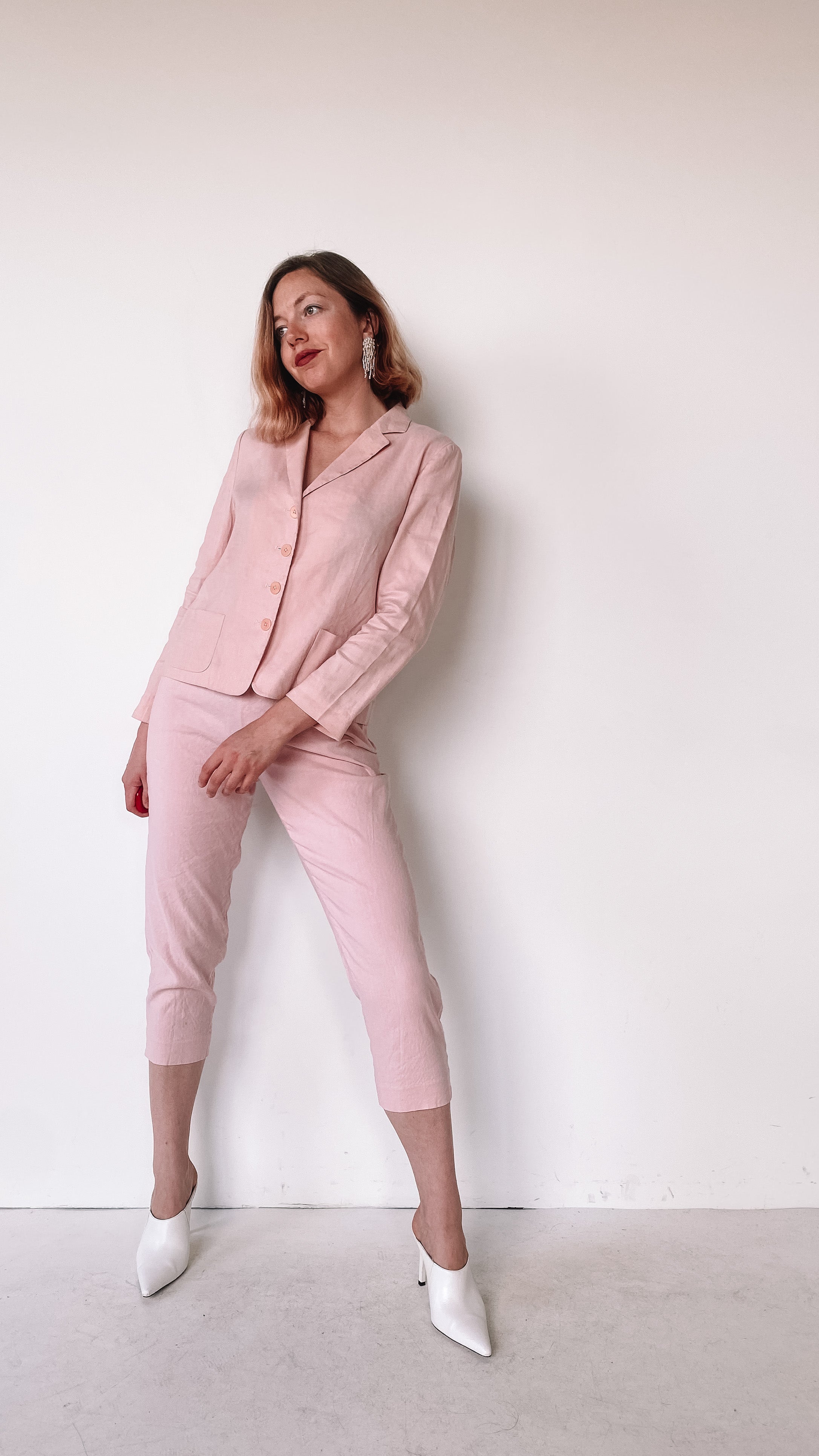 Y2K Powder Pink Linen Pant Suit, sz. S