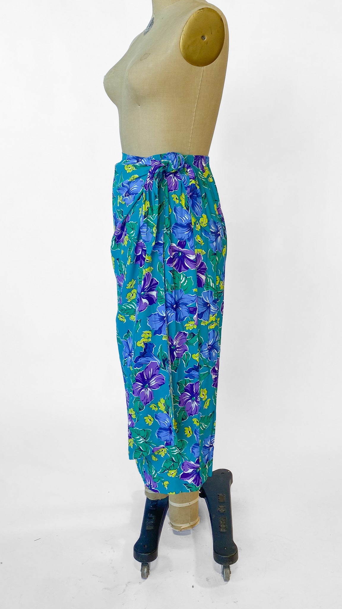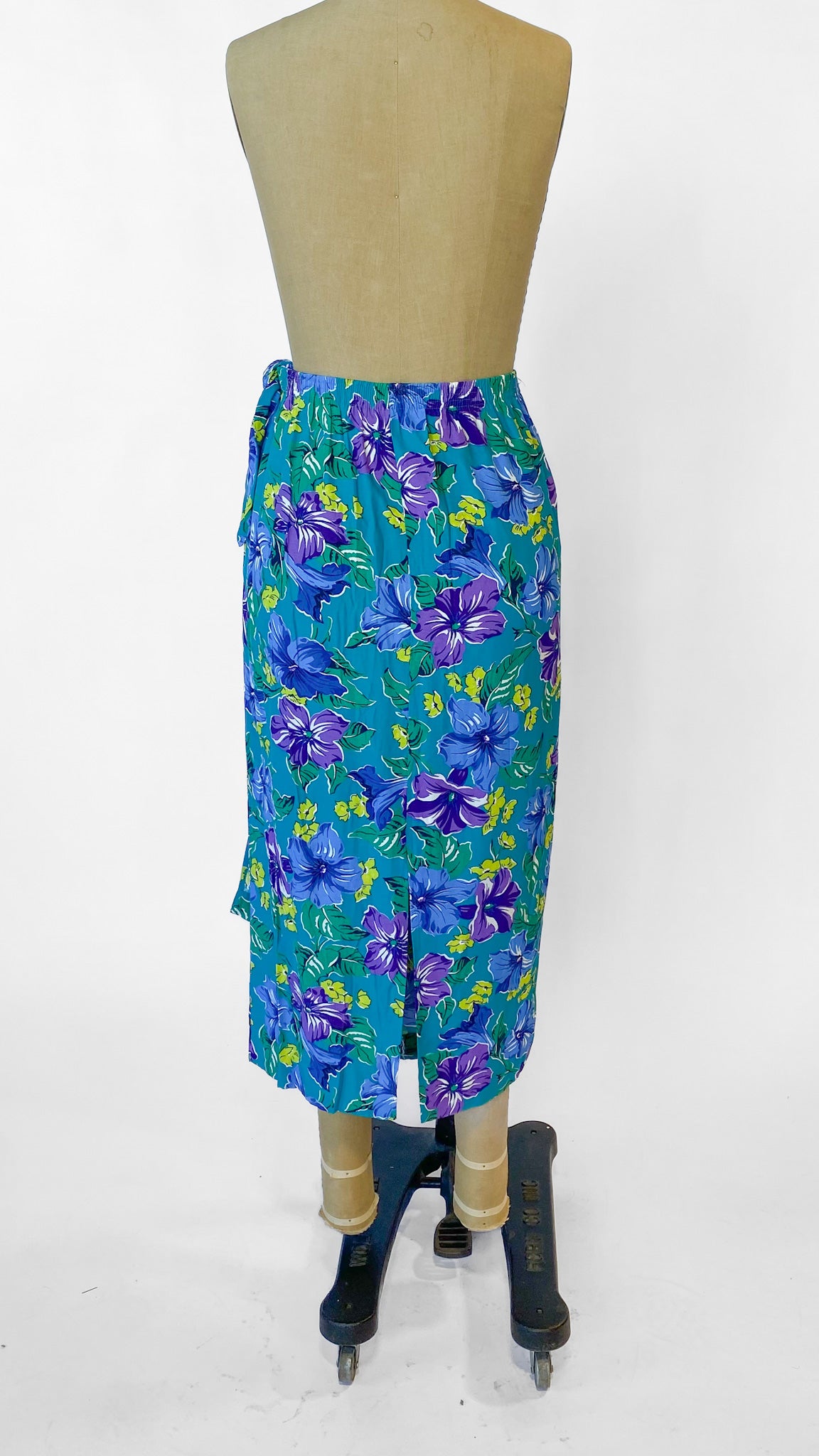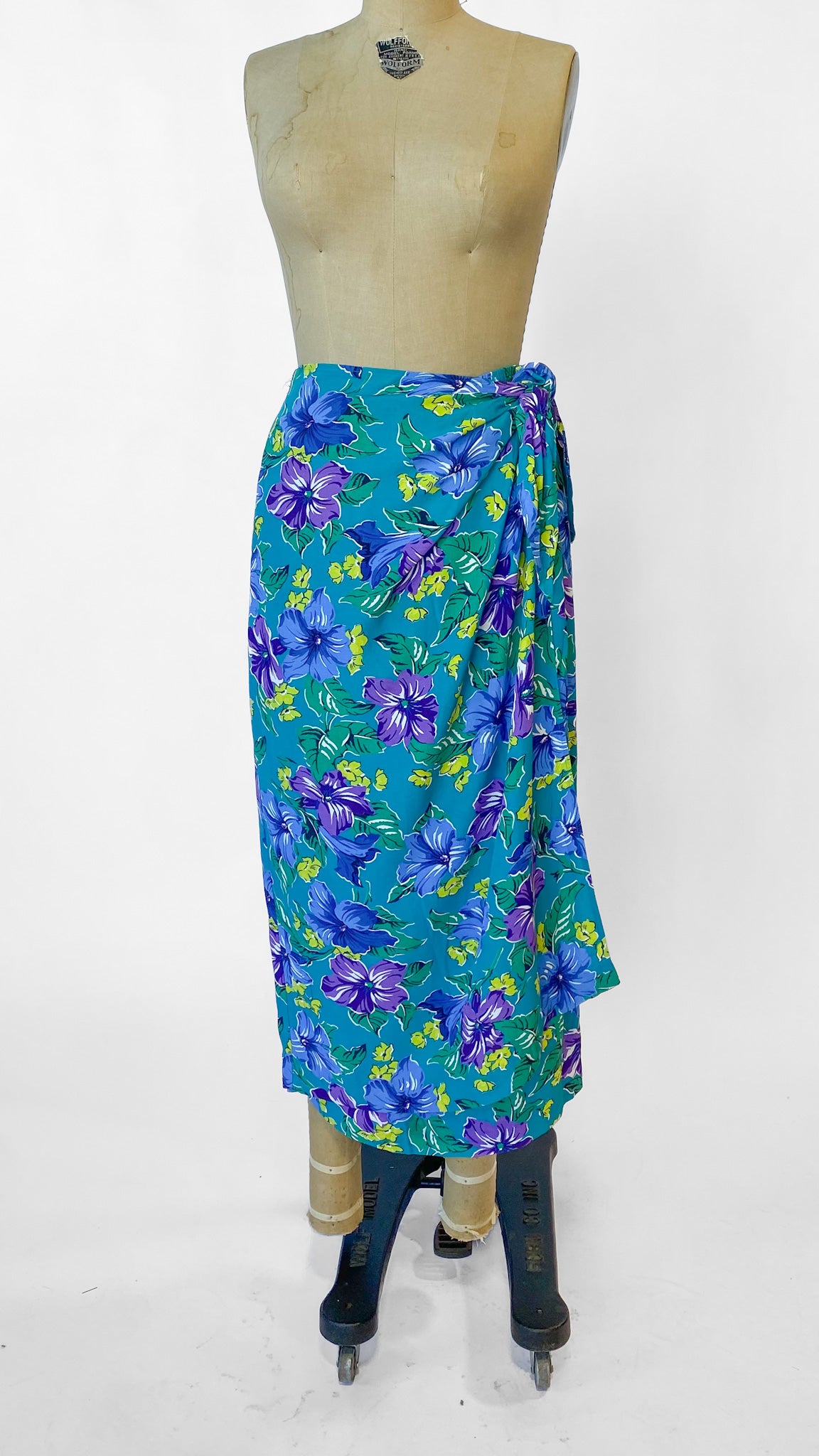 1990s Teal Hibiscus Wrap Skirt, sz. M-XL