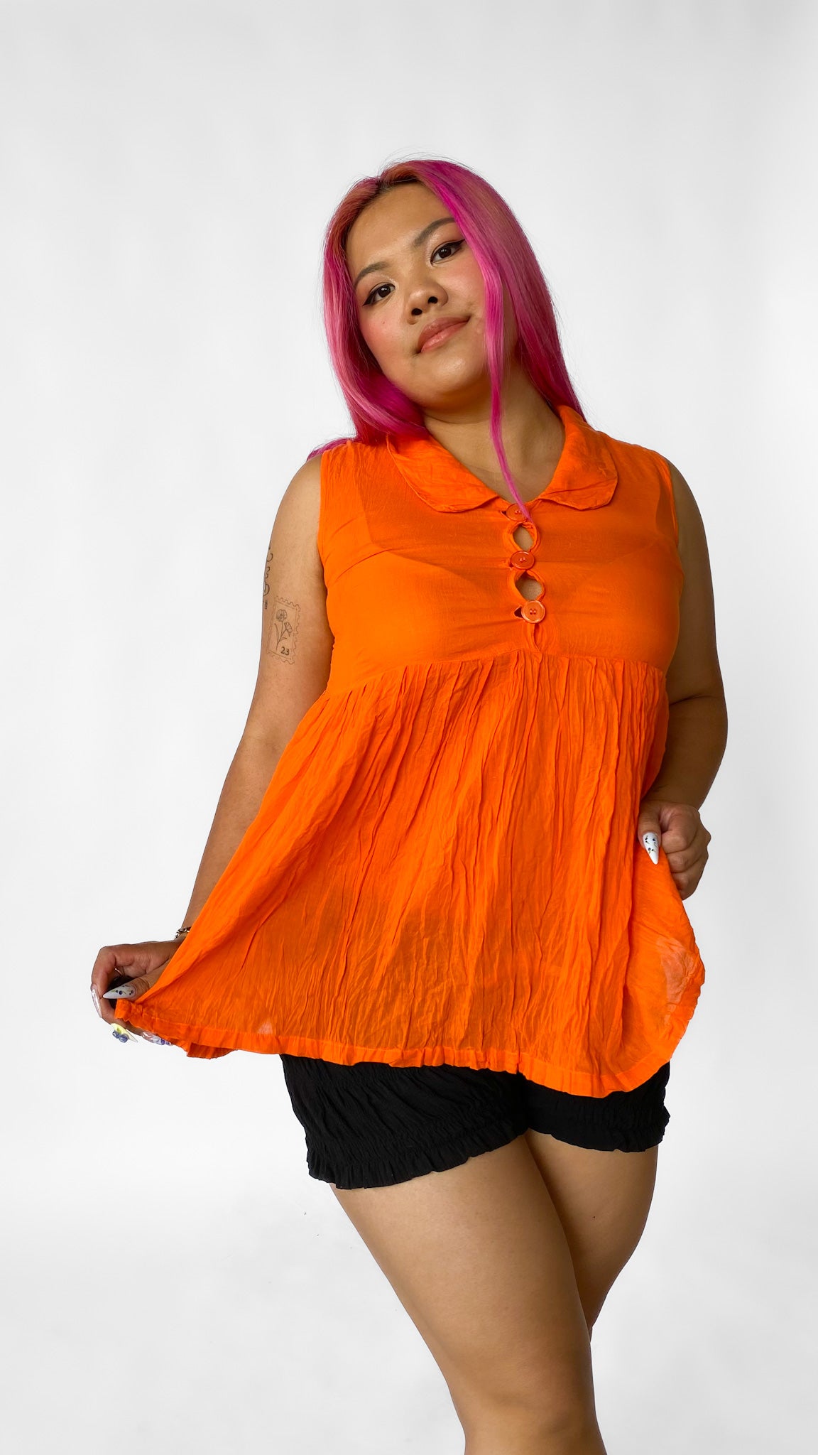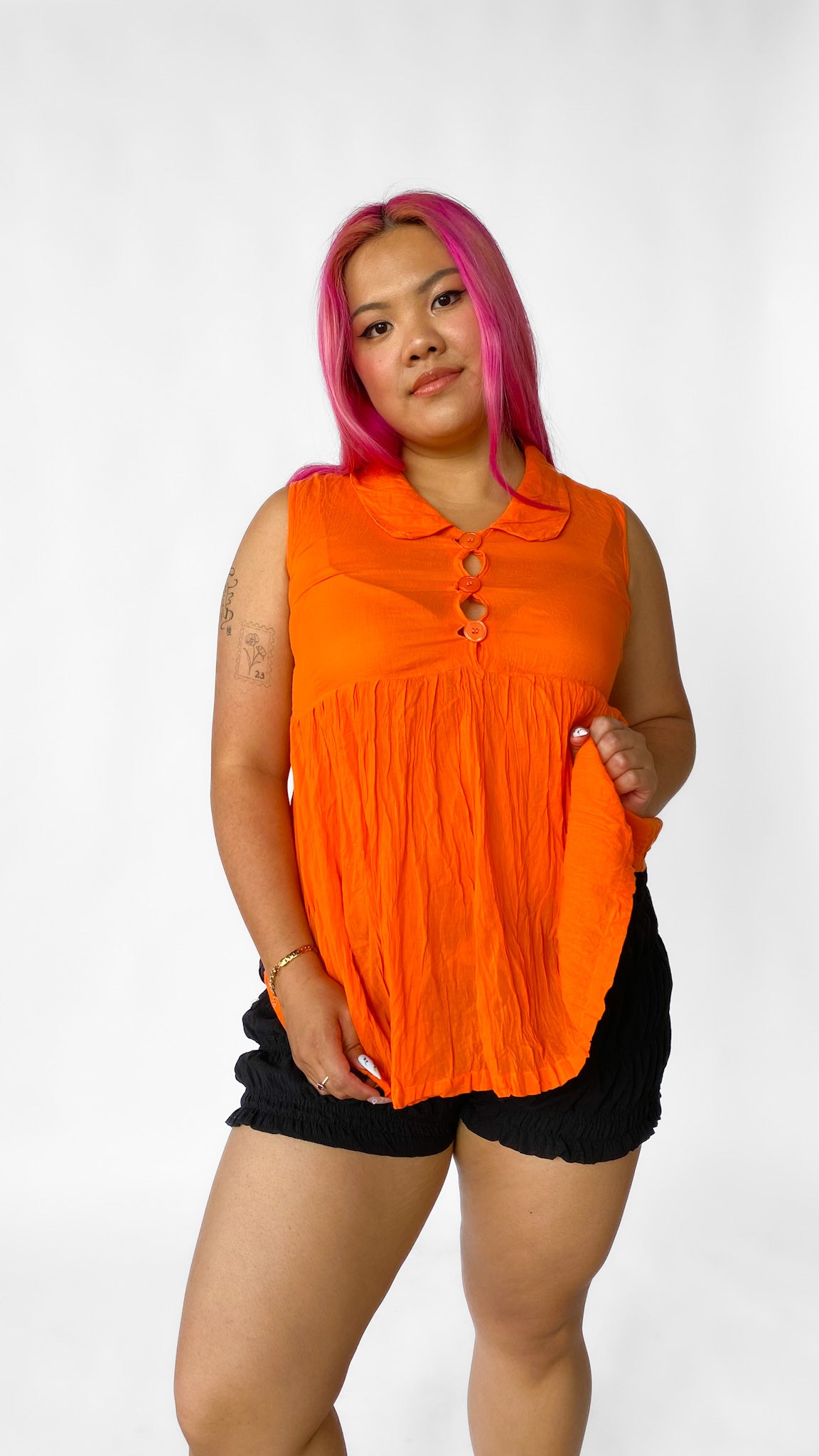 1980s Orange Empire Waist Top, sz. M