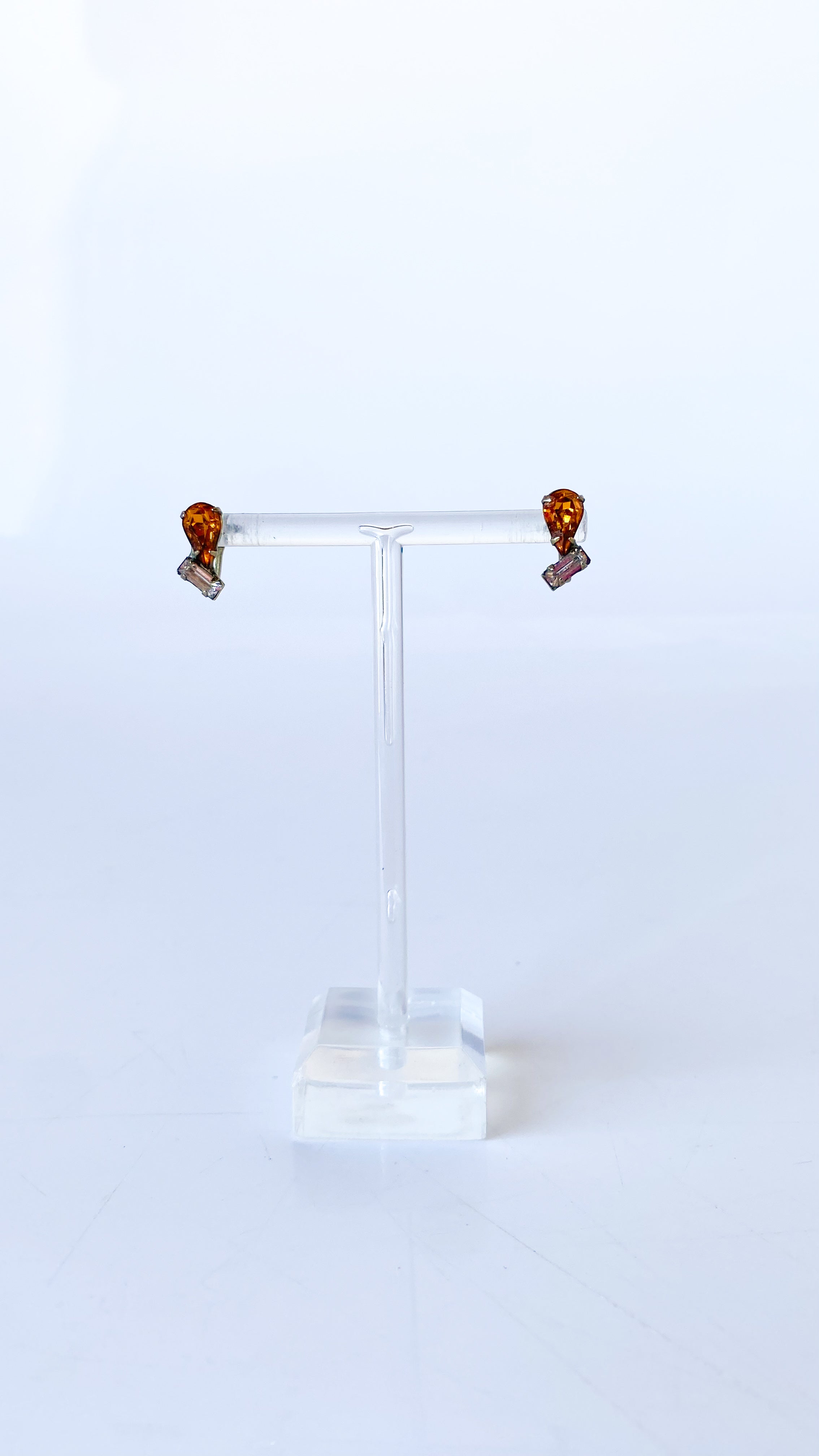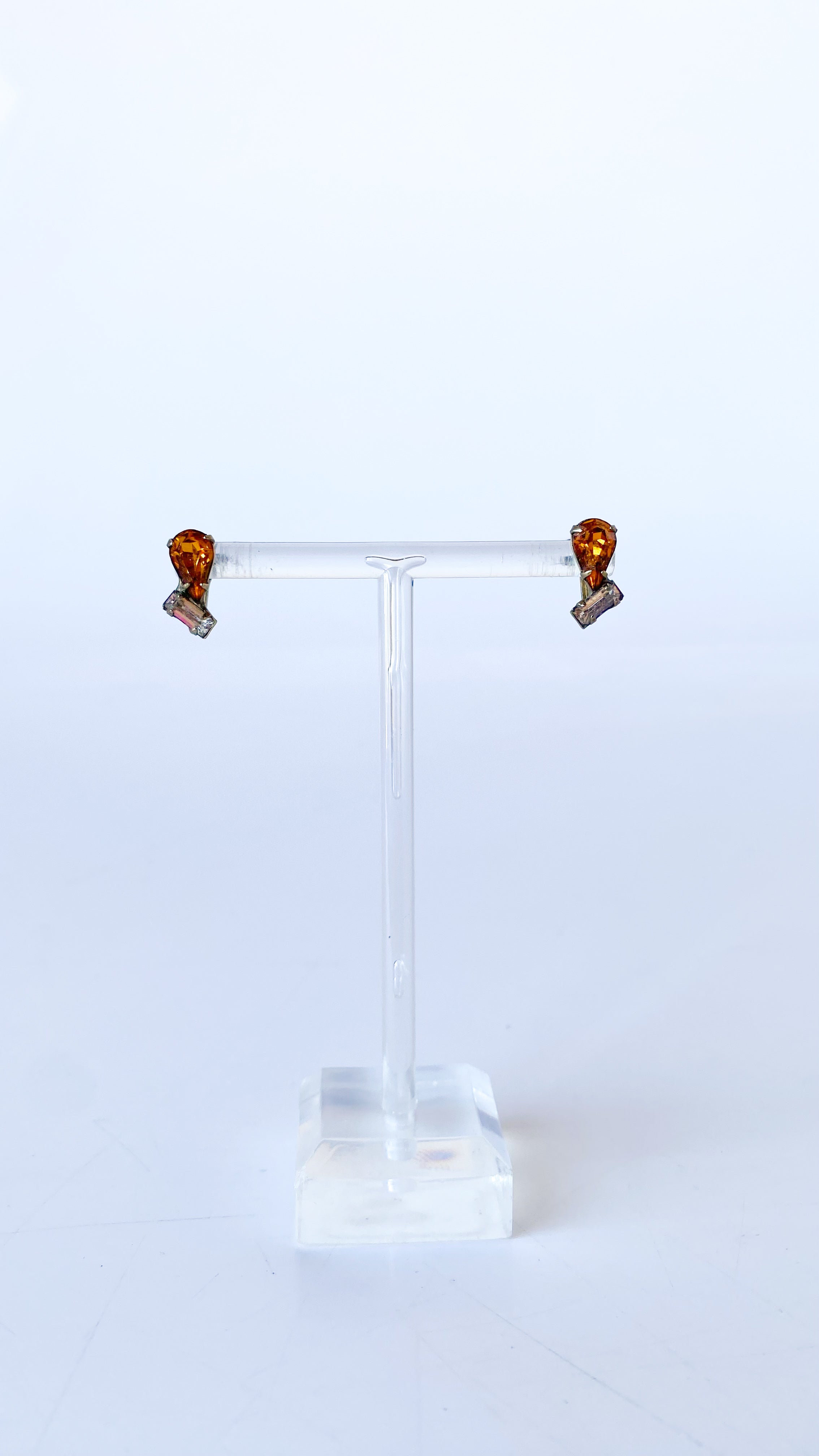 Amber Rhinestone Clip-On Earrings