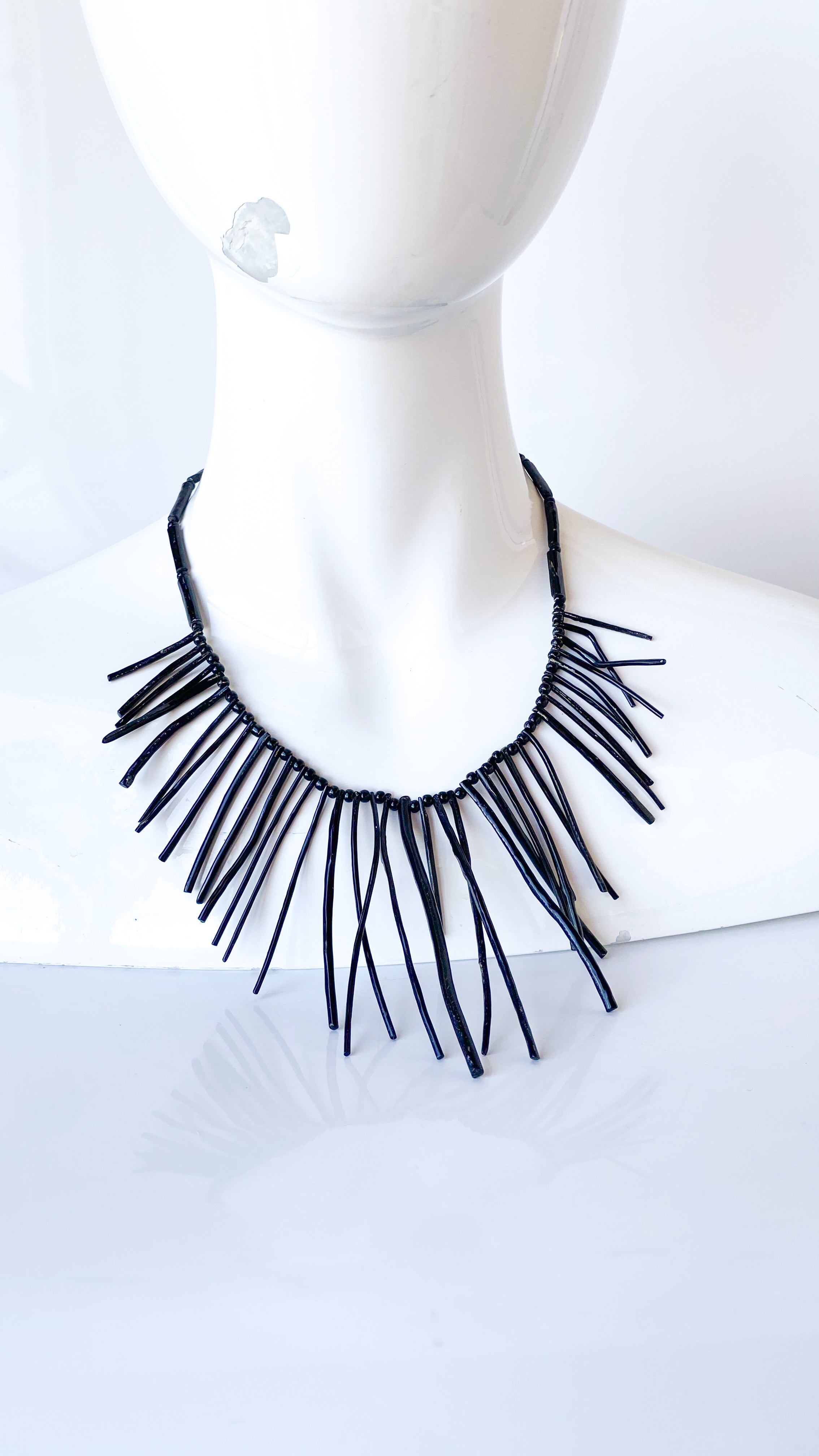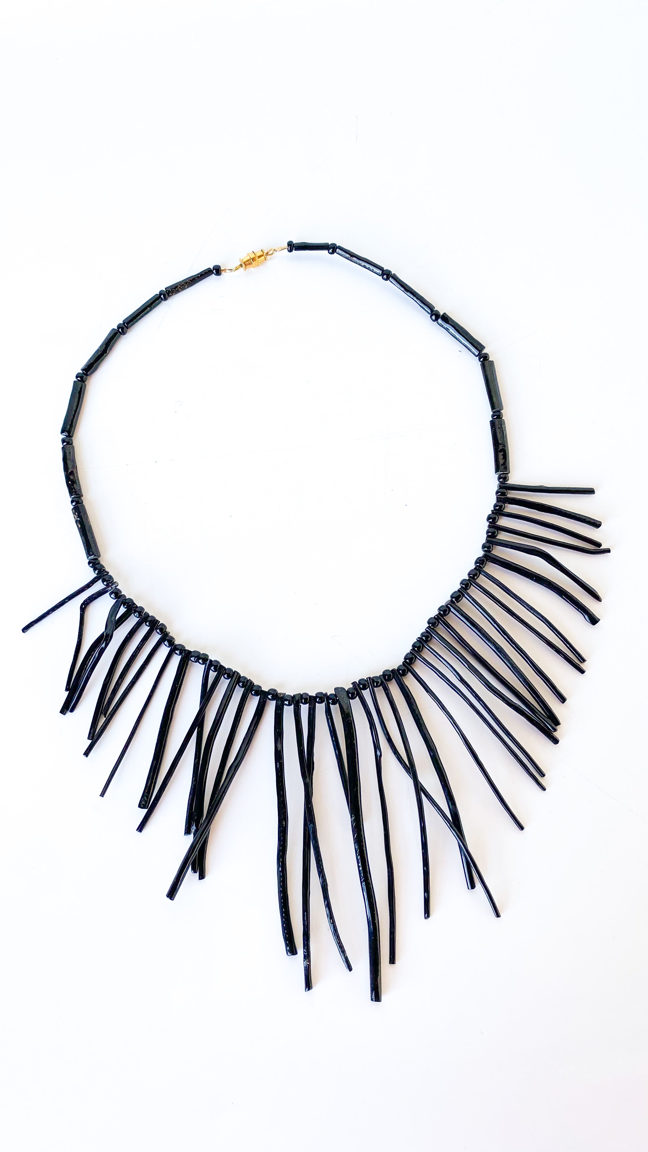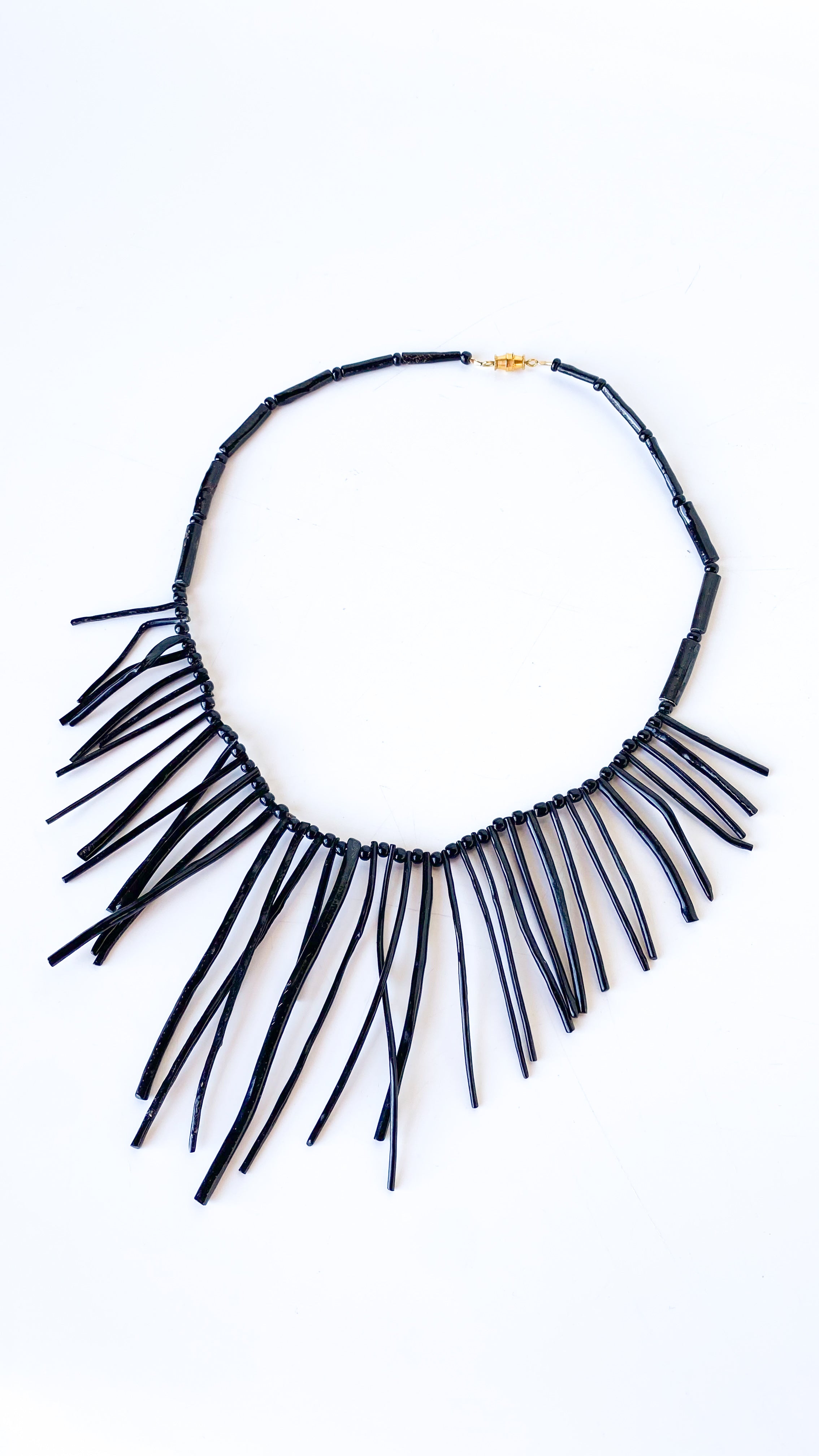 Black Beaded Fringe Necklace