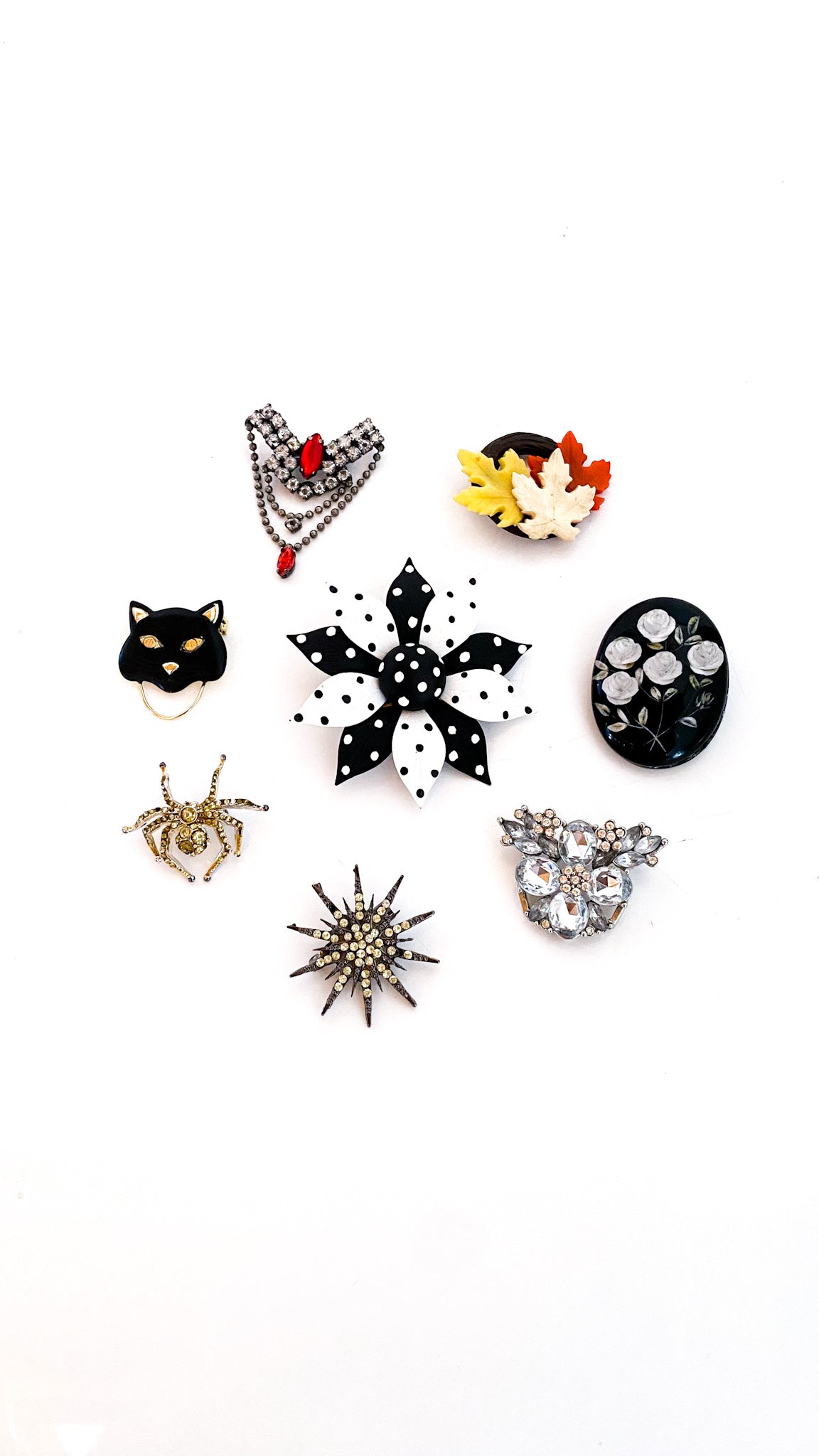 Description: An assortment of vintage halloween/fall brooches perfect to accessorize a blazer or add some flair to your tote.