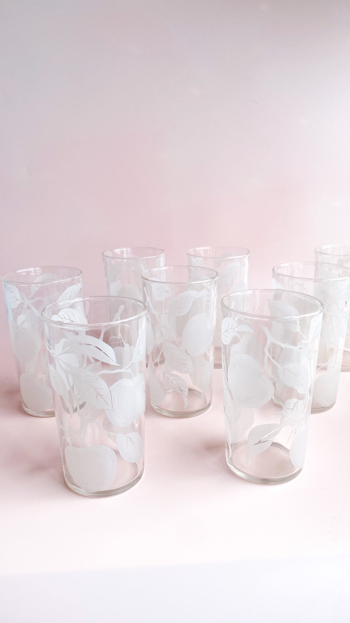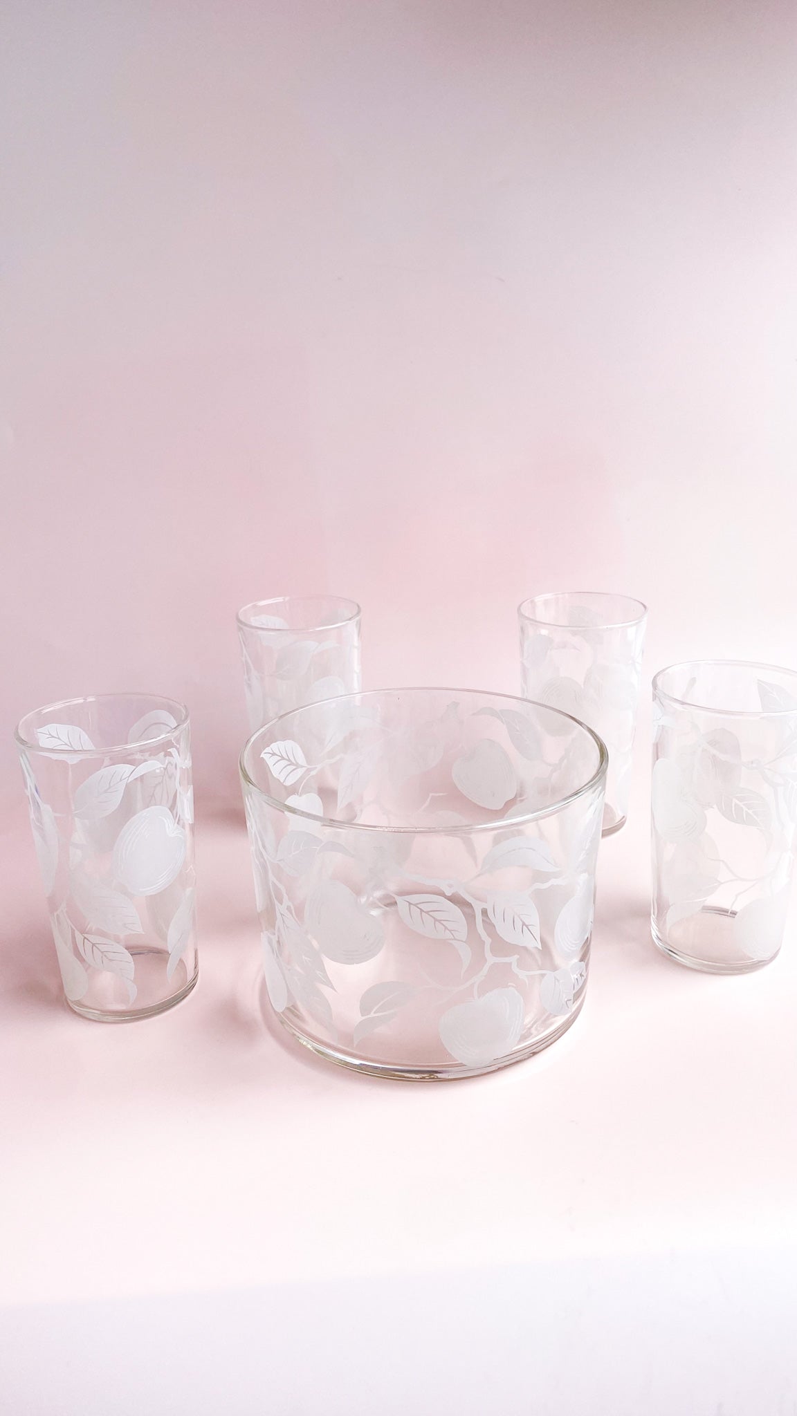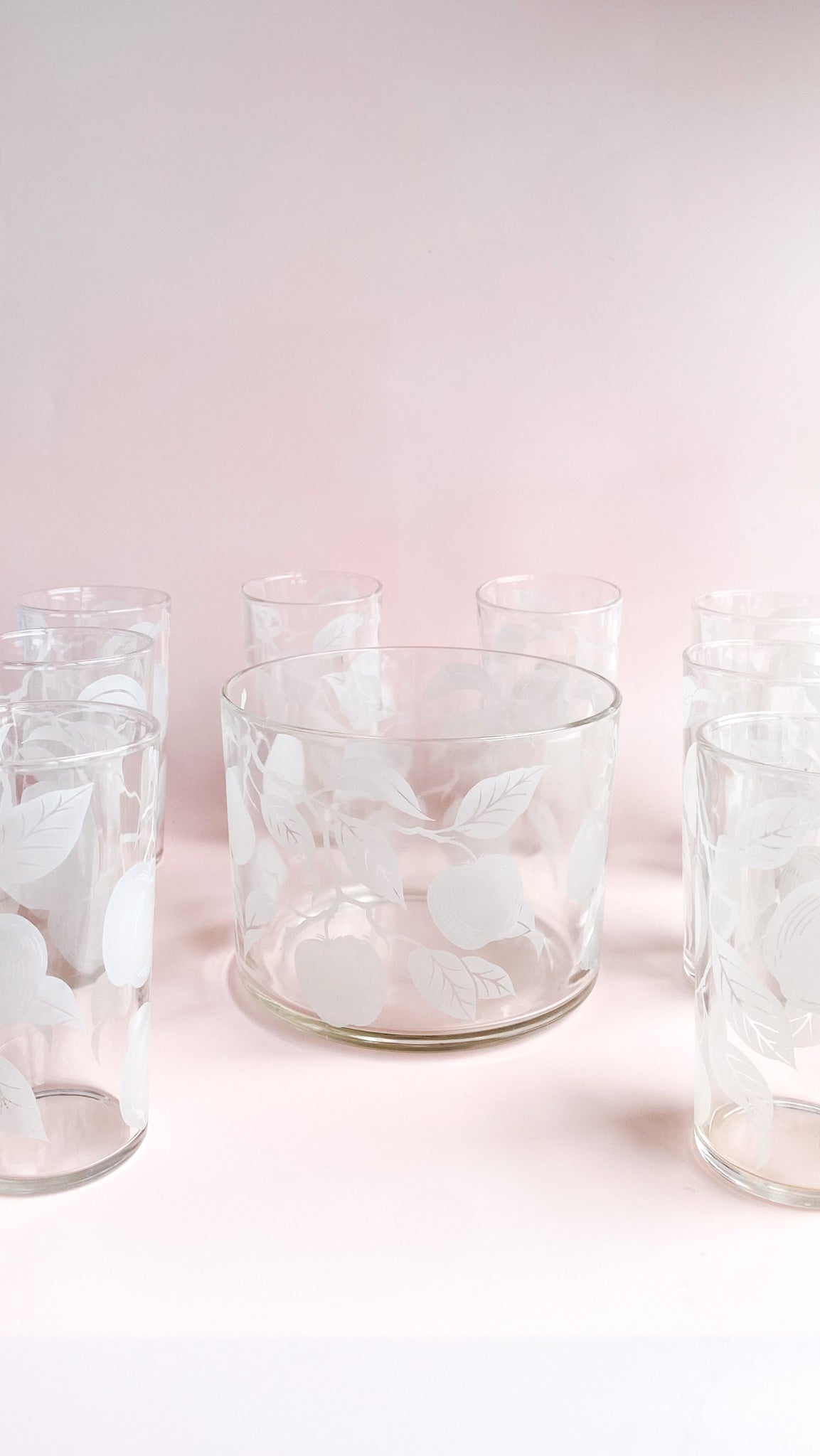 Vintage MCM Frosted Apple Glasses With Bowl, set of 8