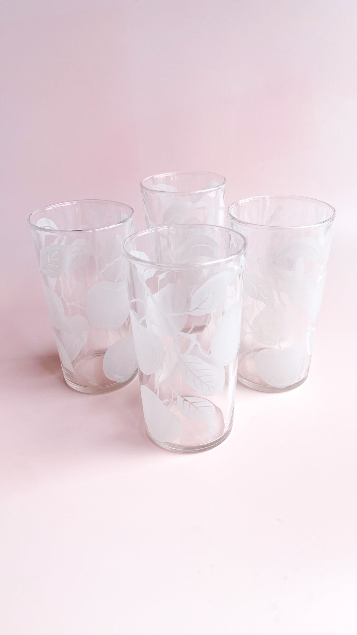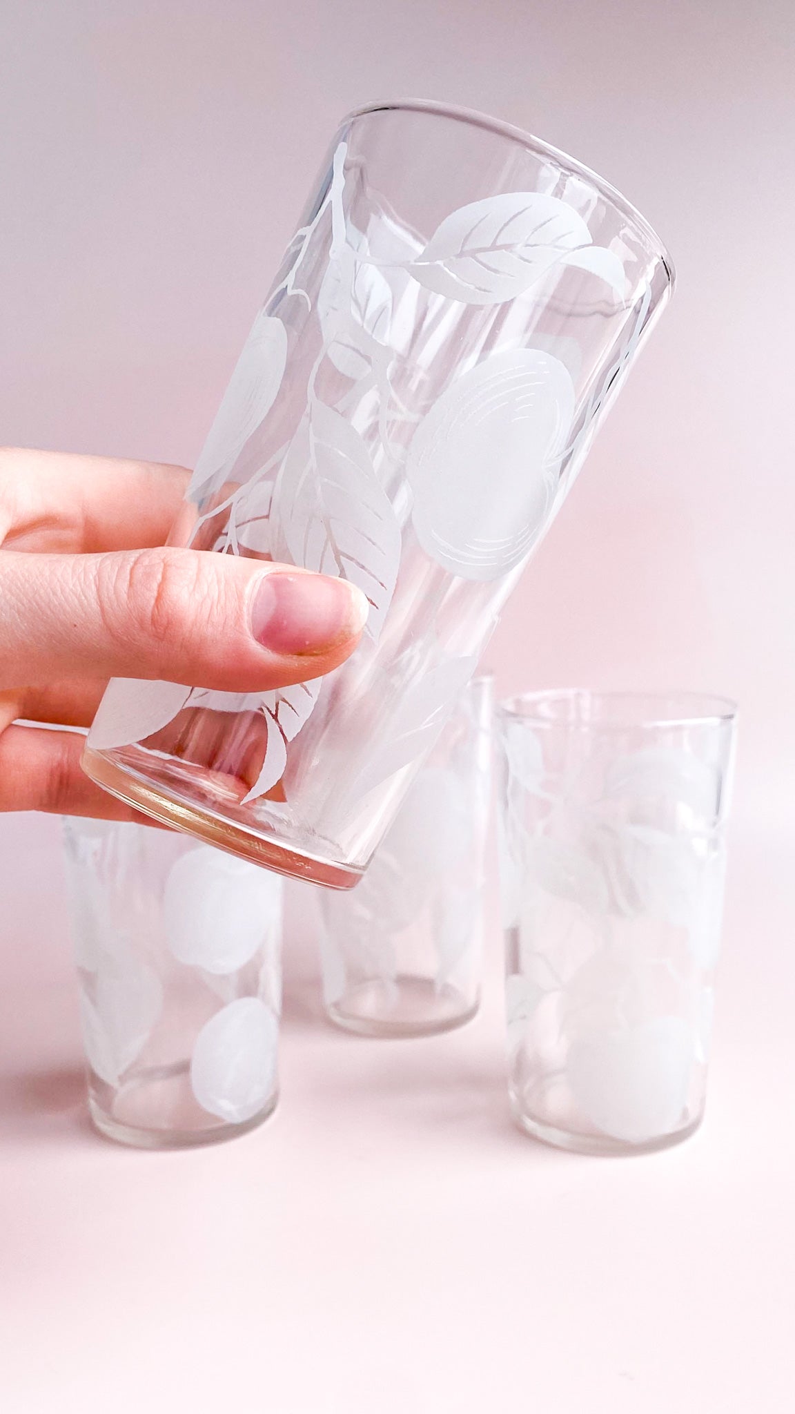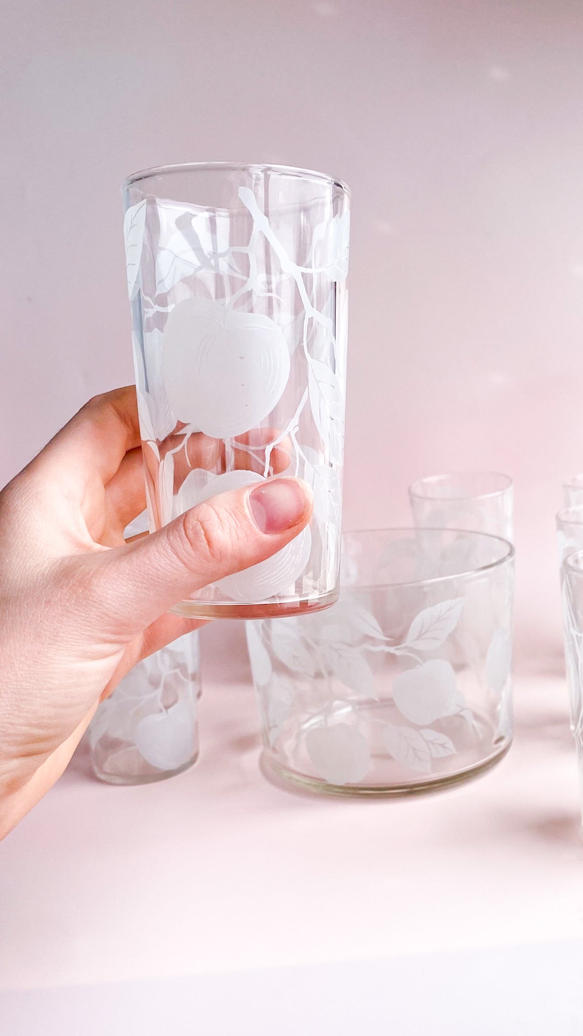 Vintage MCM Frosted Apple Glasses With Bowl, set of 8