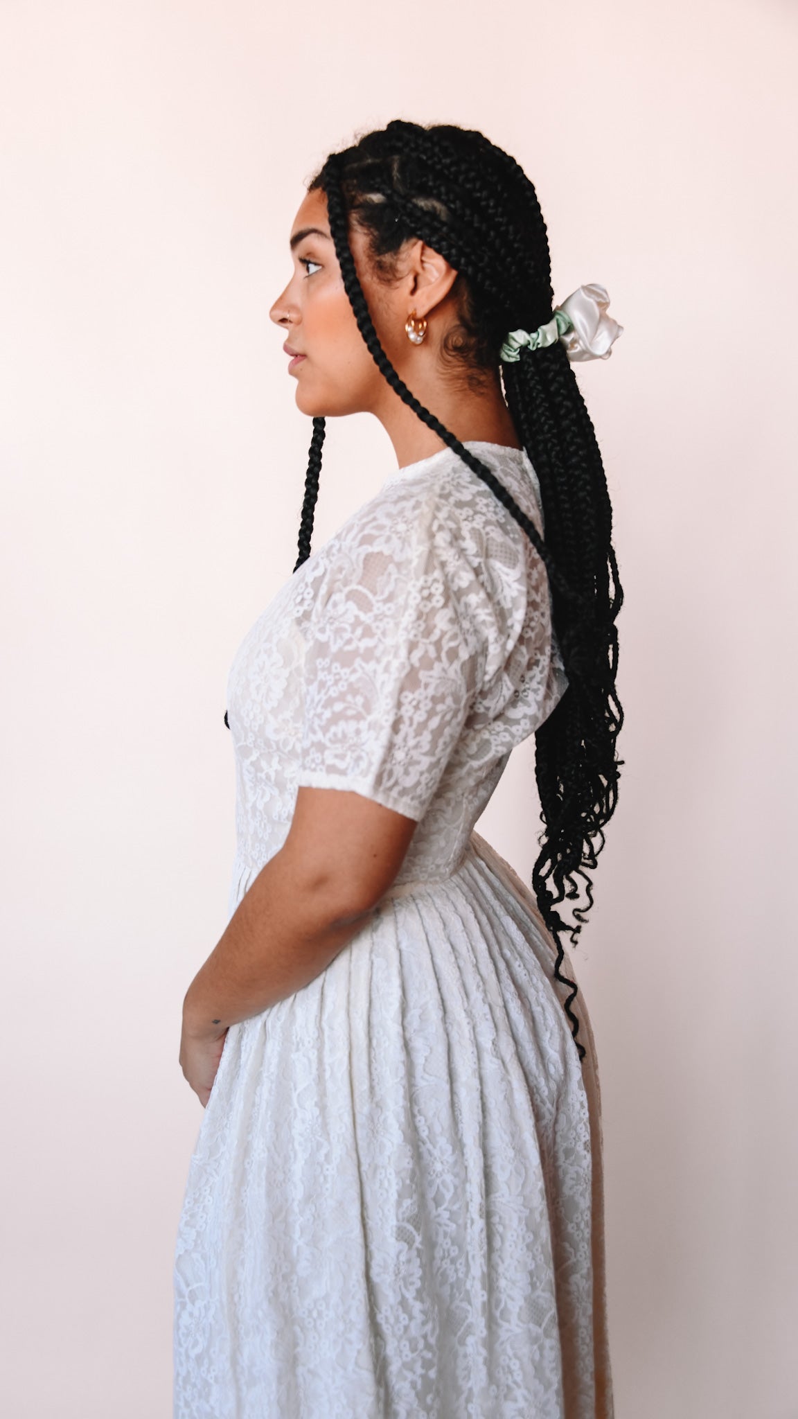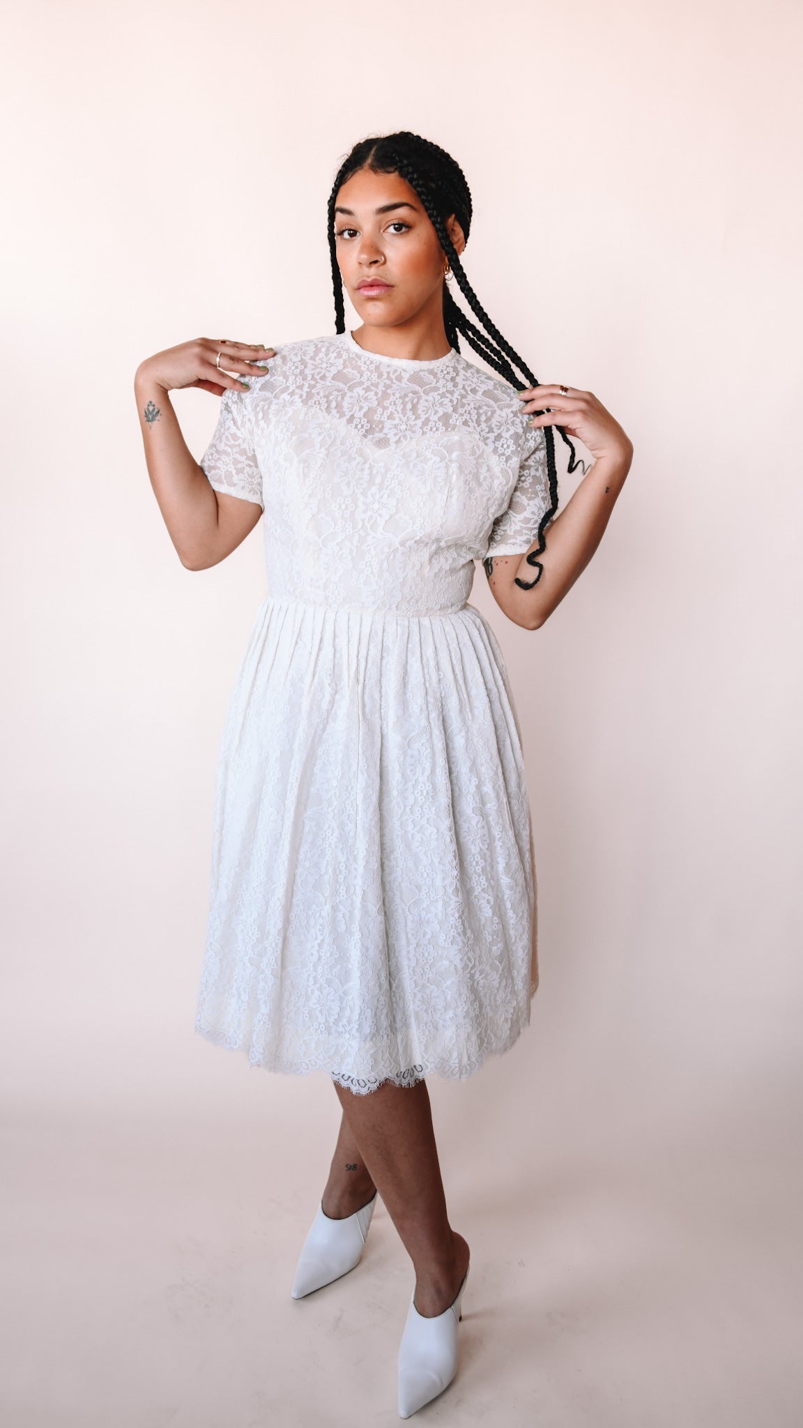 1960s Lacey Tea Length Wedding Dress, sz. M