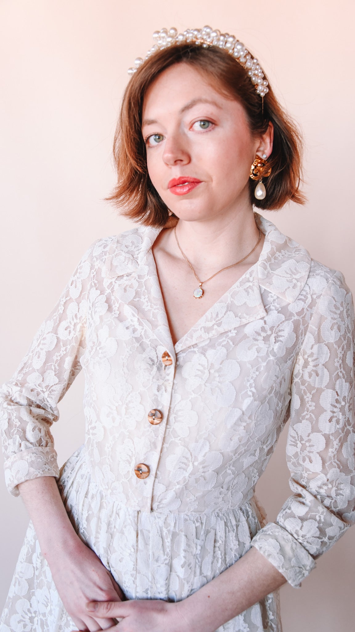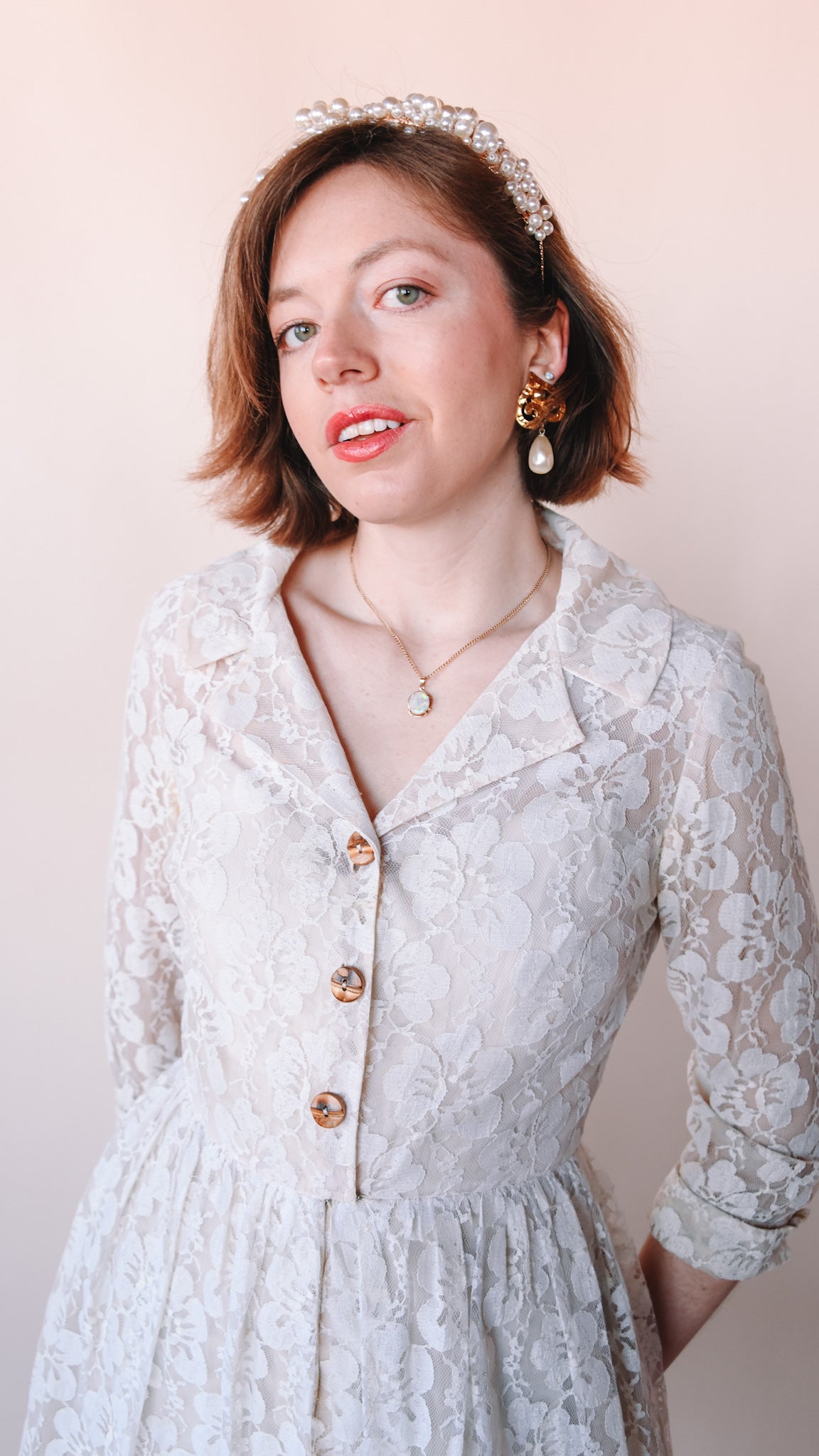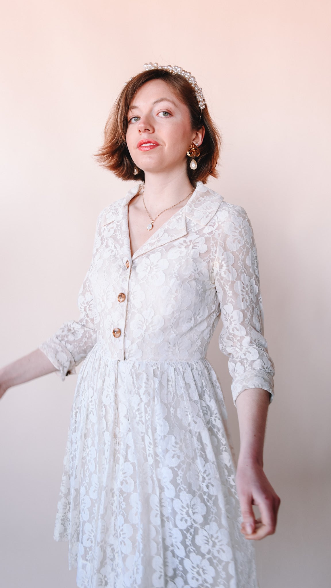 1960s Button Up Lace Wedding Dress, sz. S