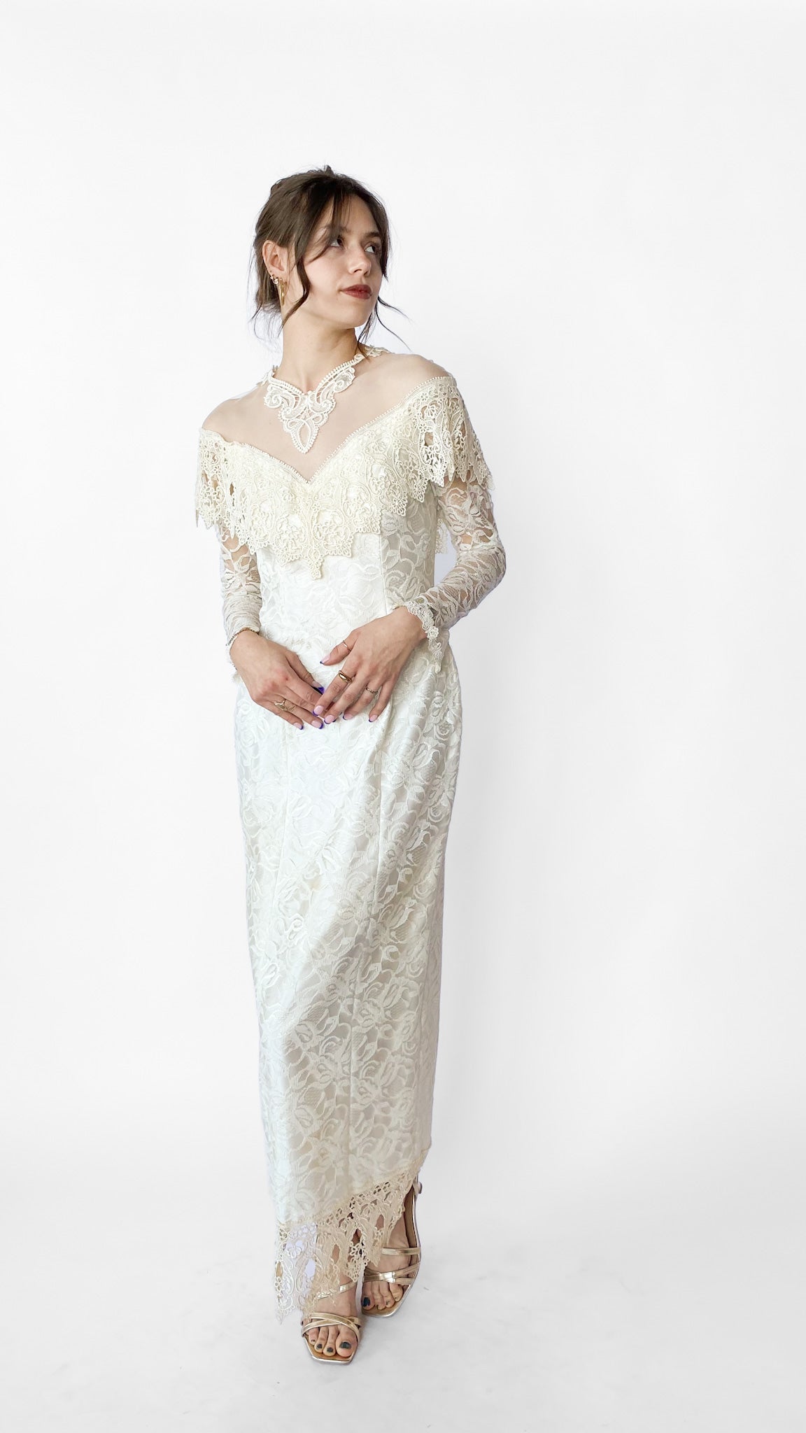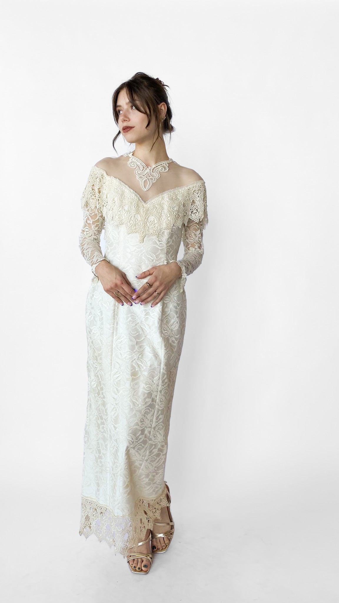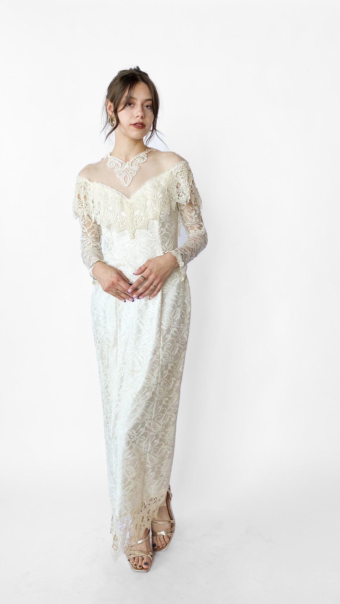1980s Alfred Angelo Ivory Lace Wedding Dress, sz. M