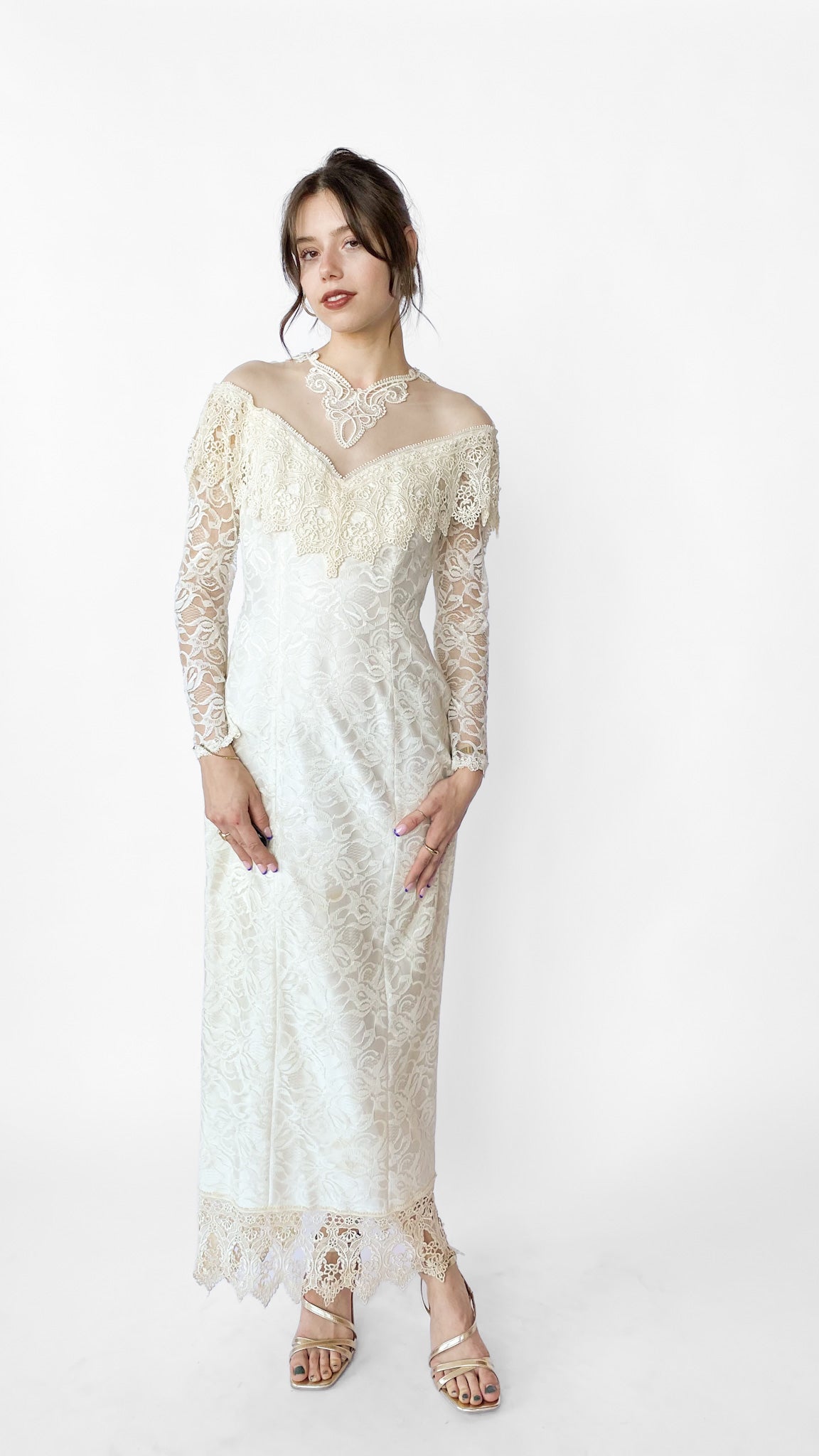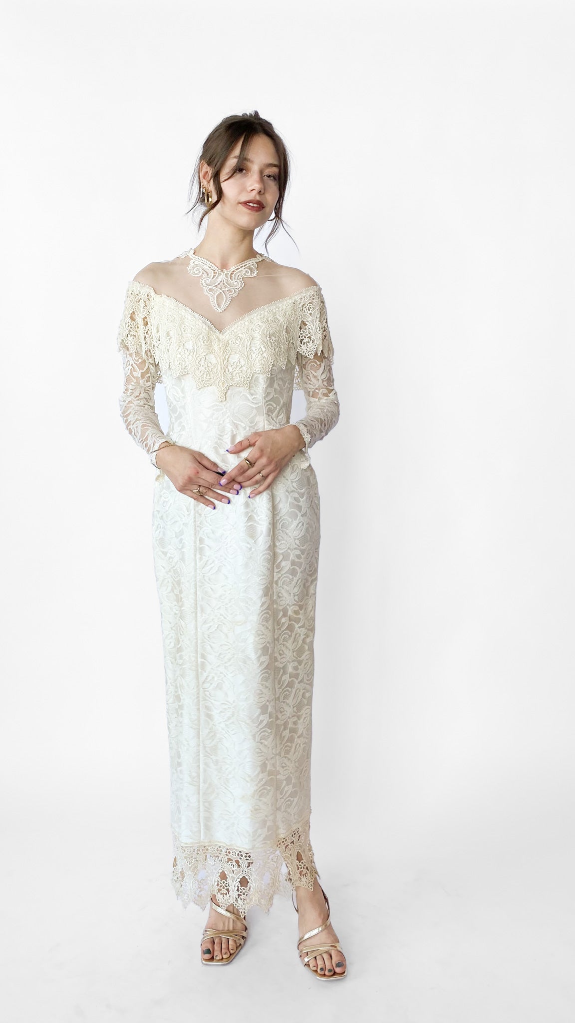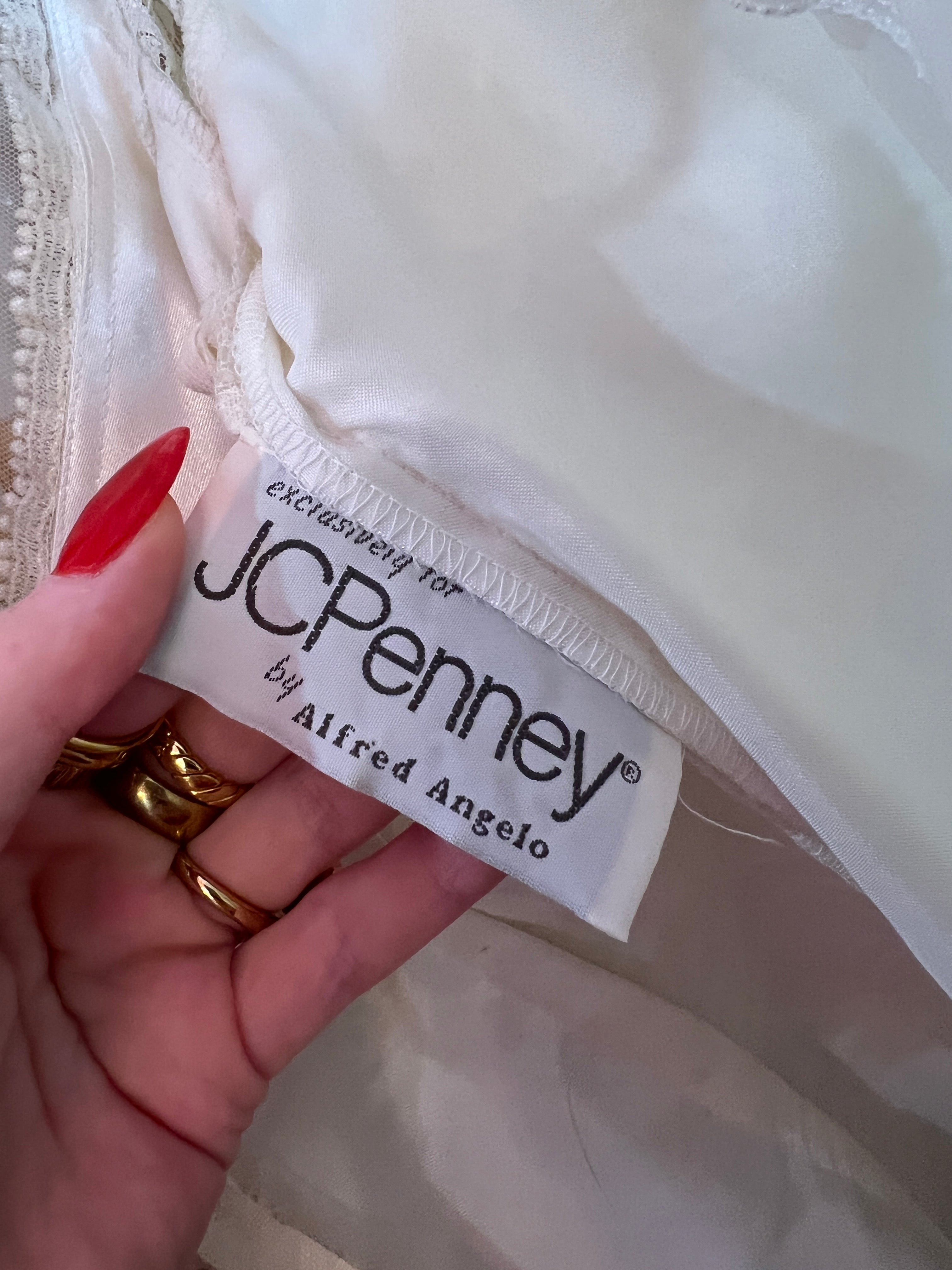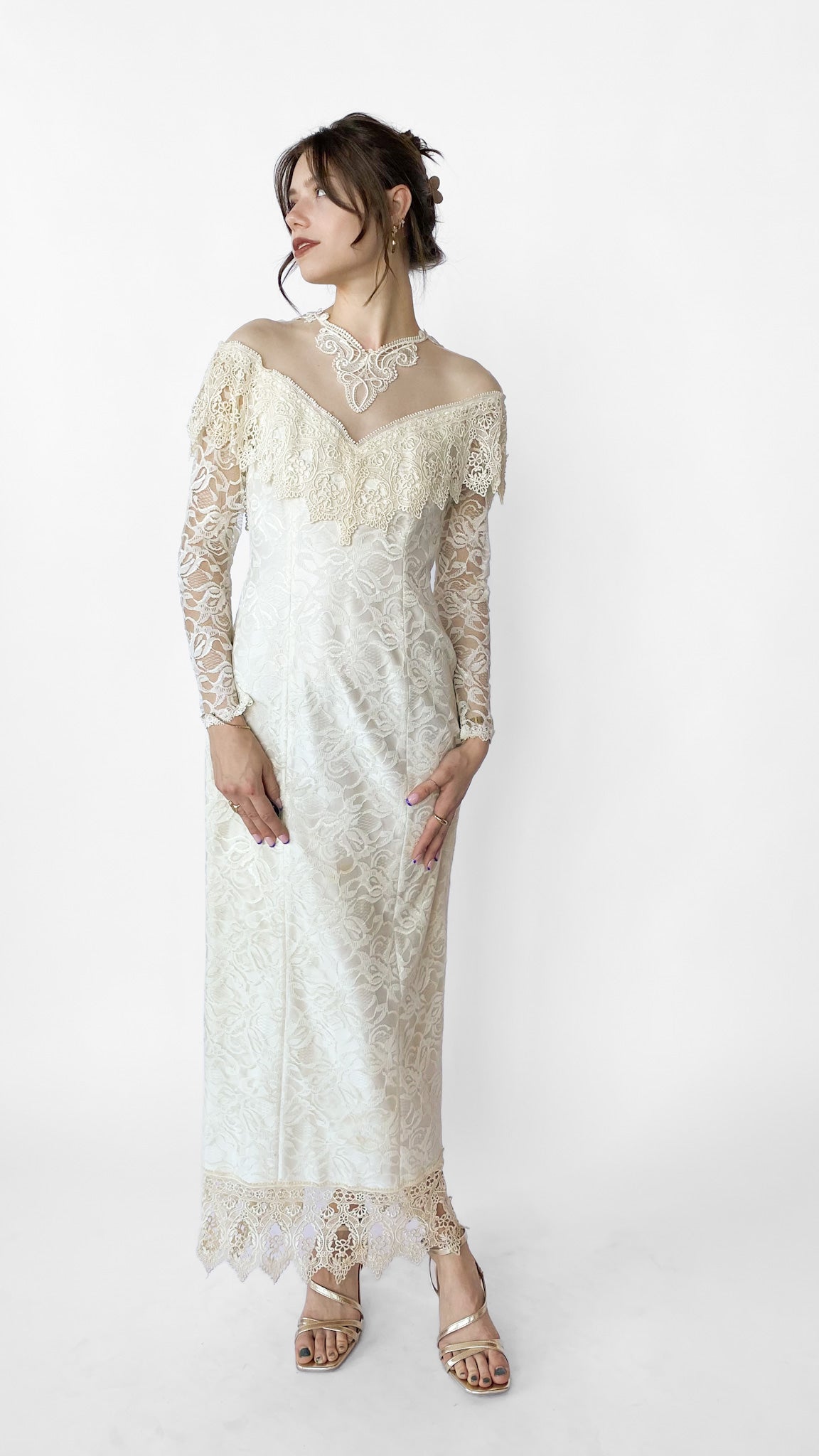 1980s Alfred Angelo Ivory Lace Wedding Dress, sz. M