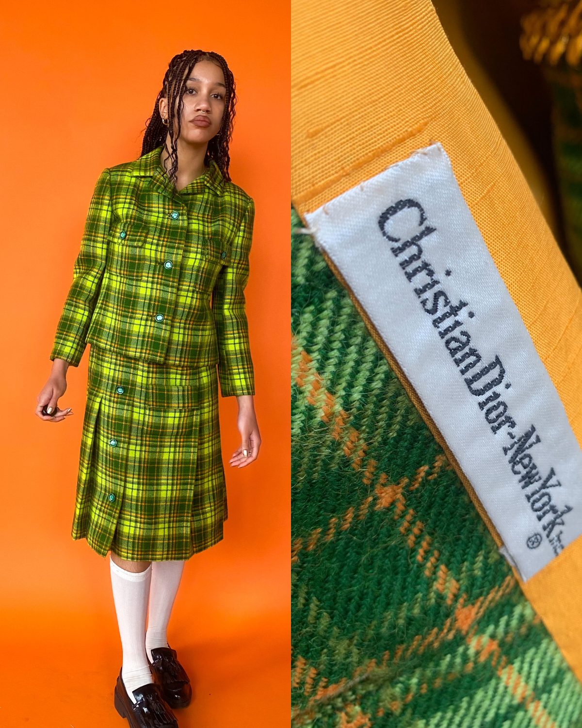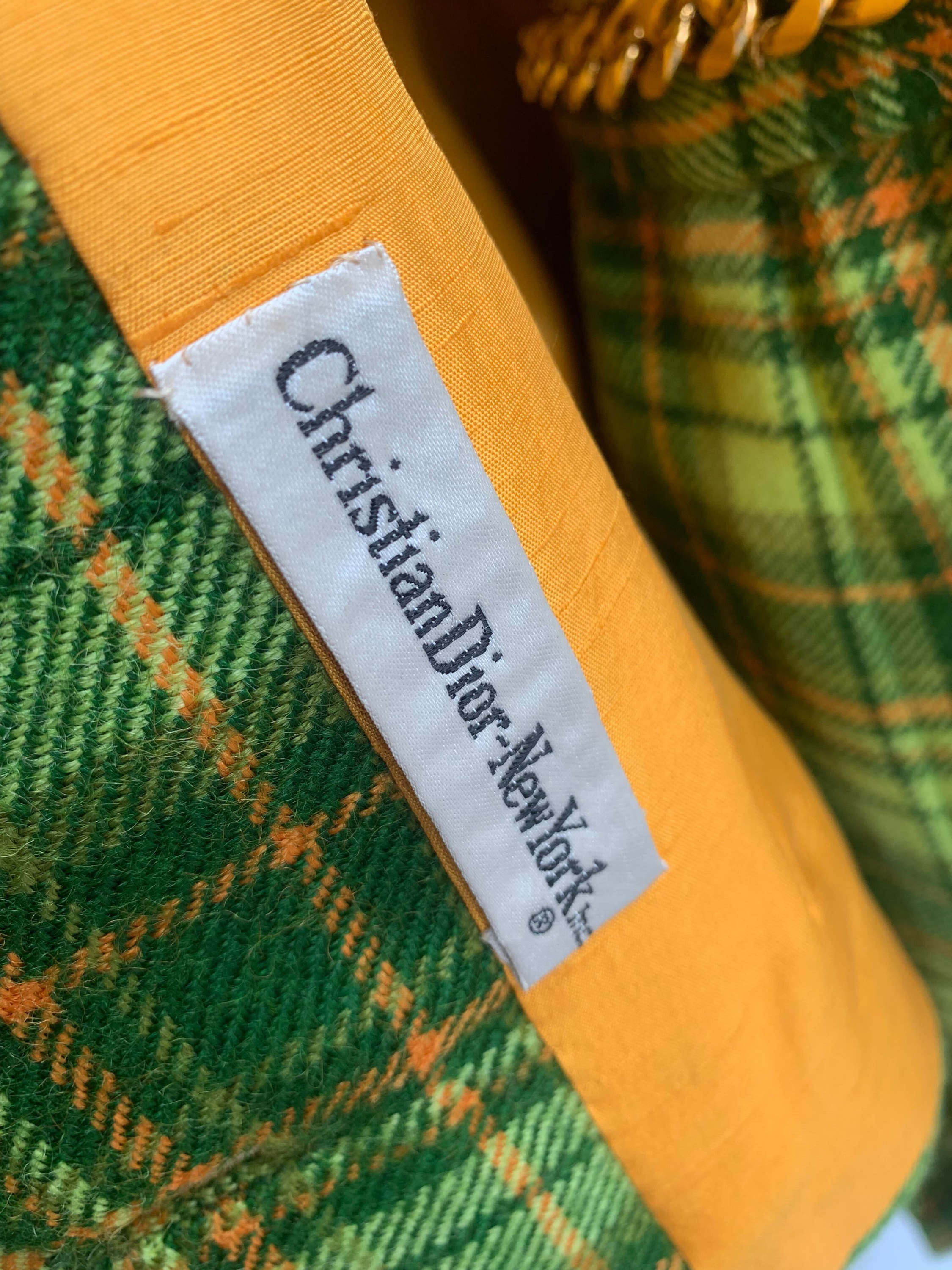 1960s Dior New York Lime Green Plaid Skirt Set, sz. M