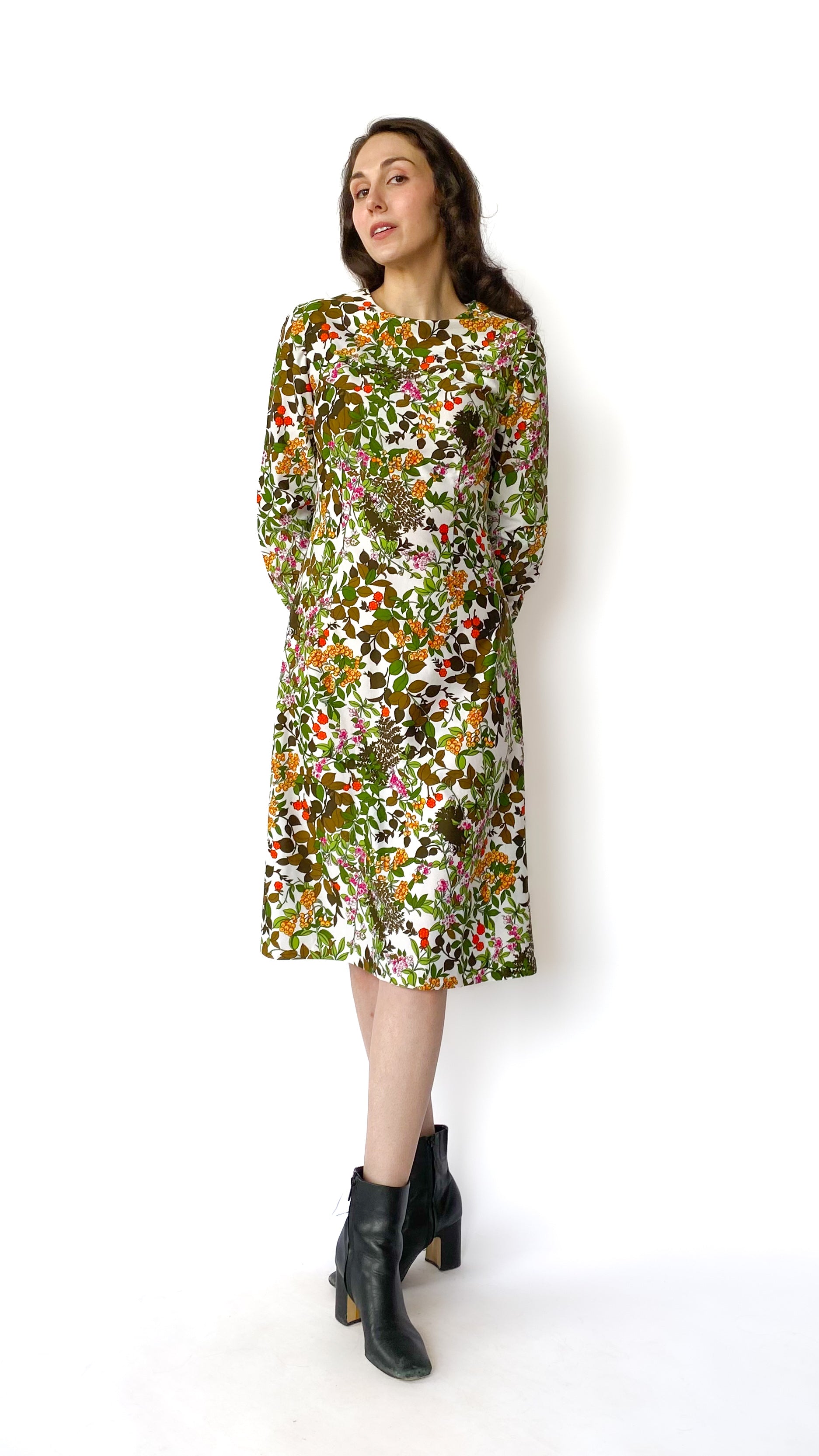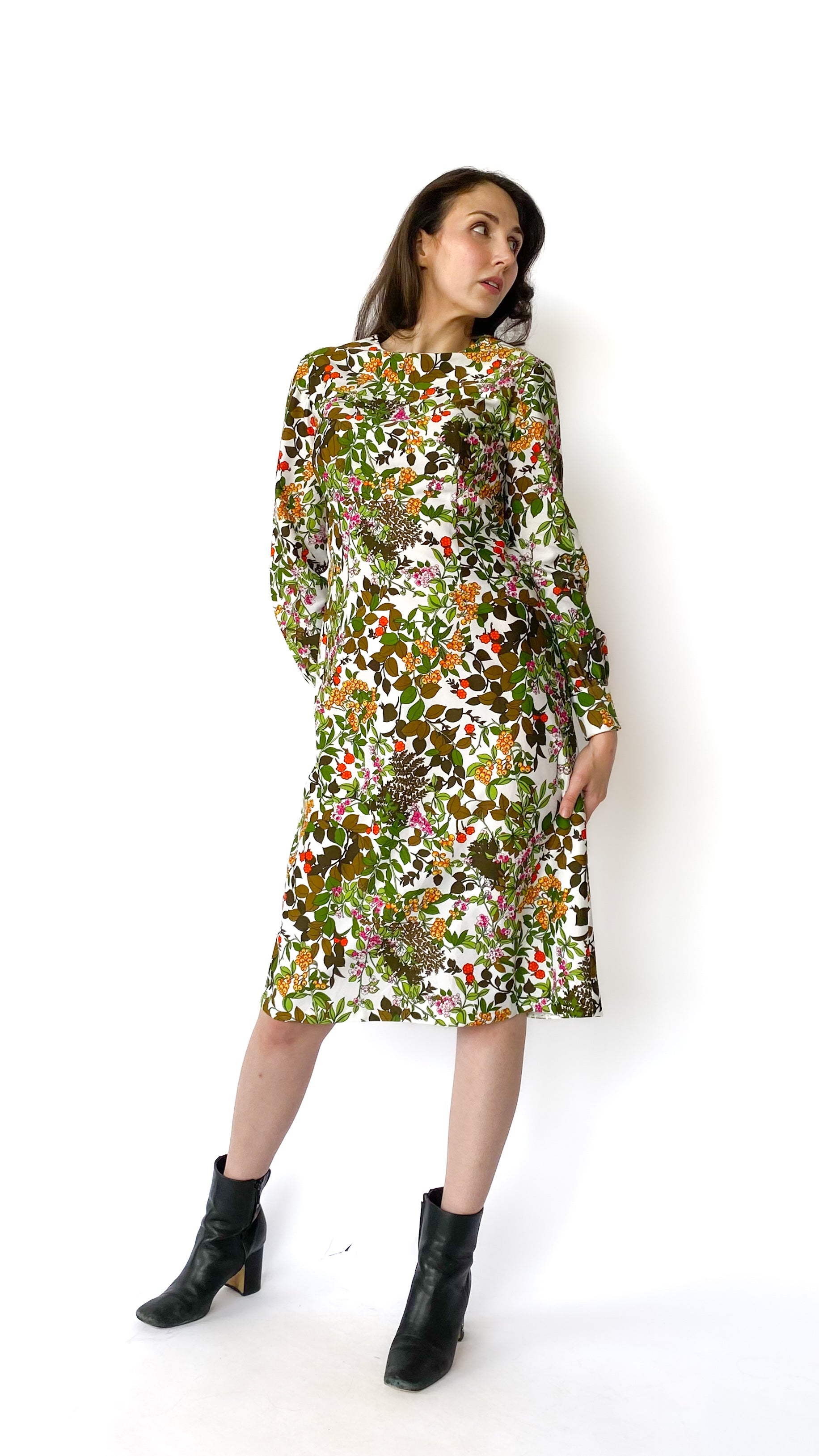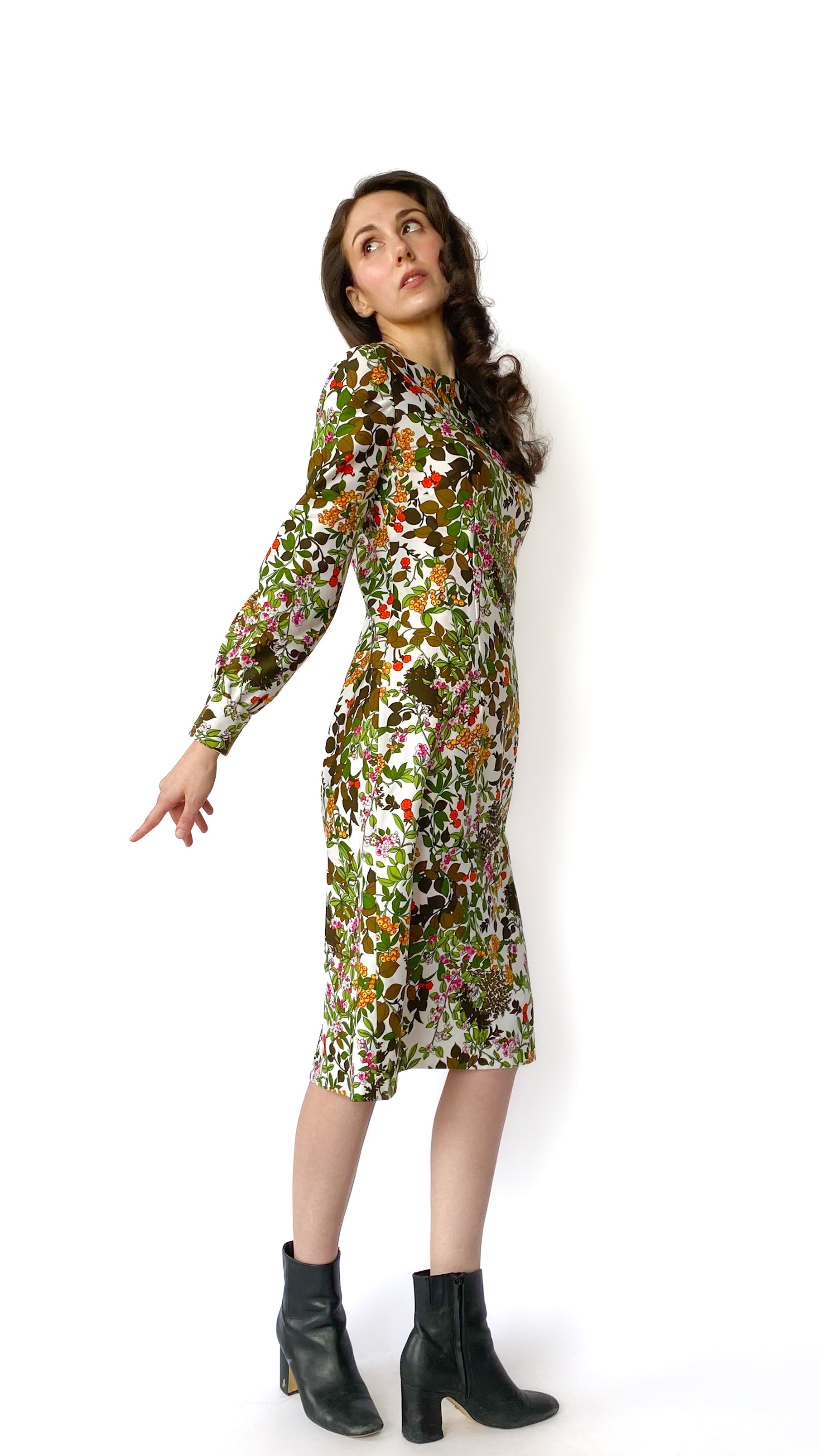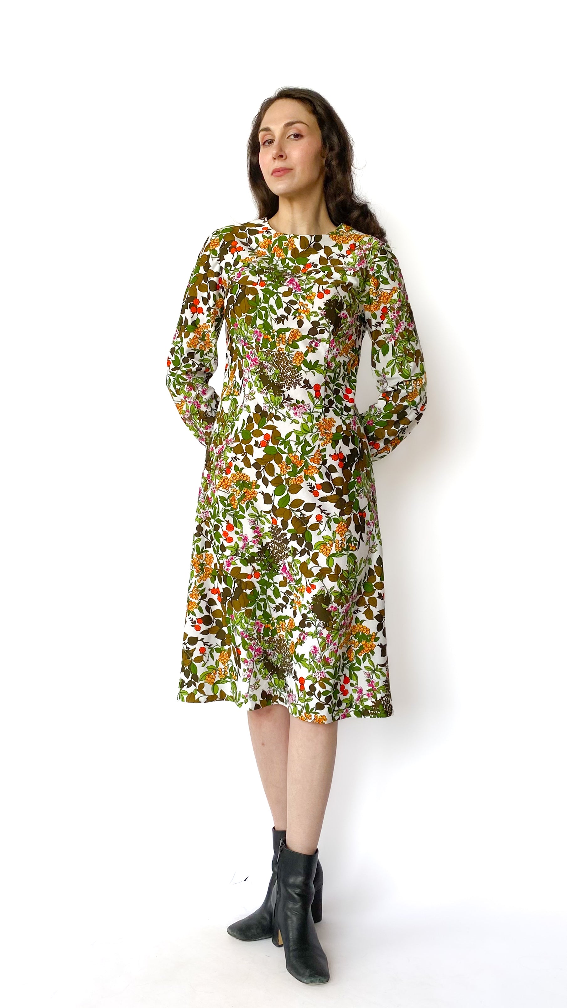 1970s Long Sleeve Floral Dress, sz. L