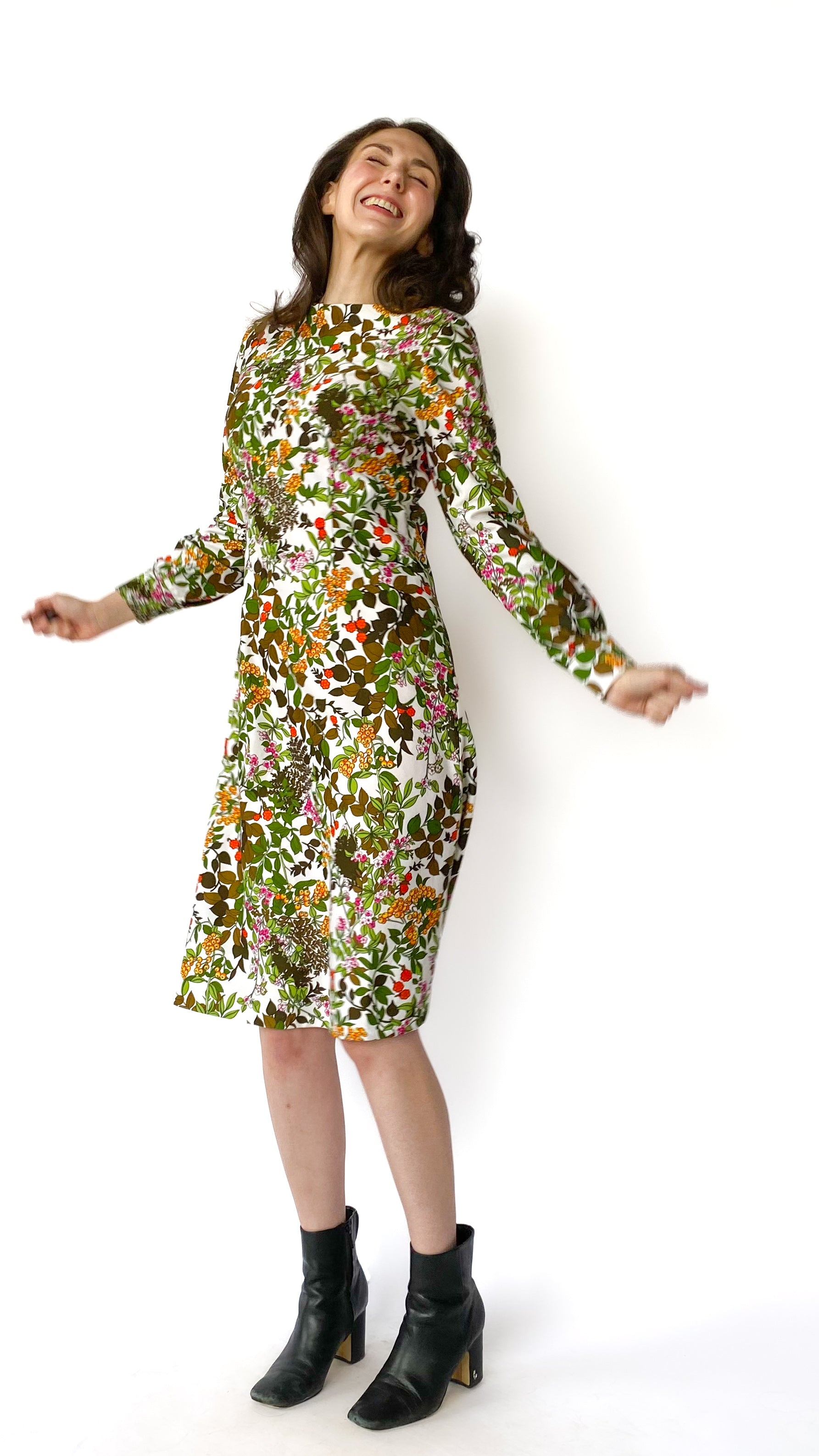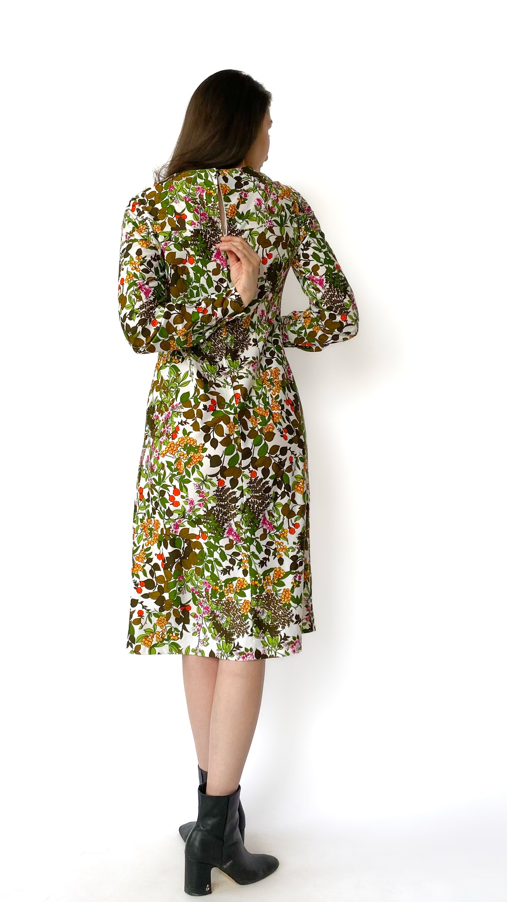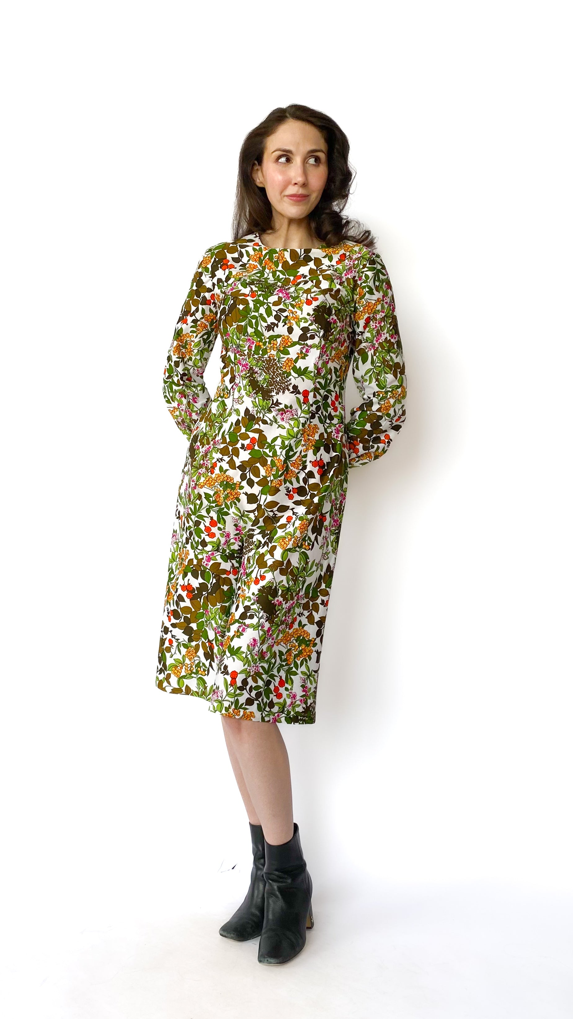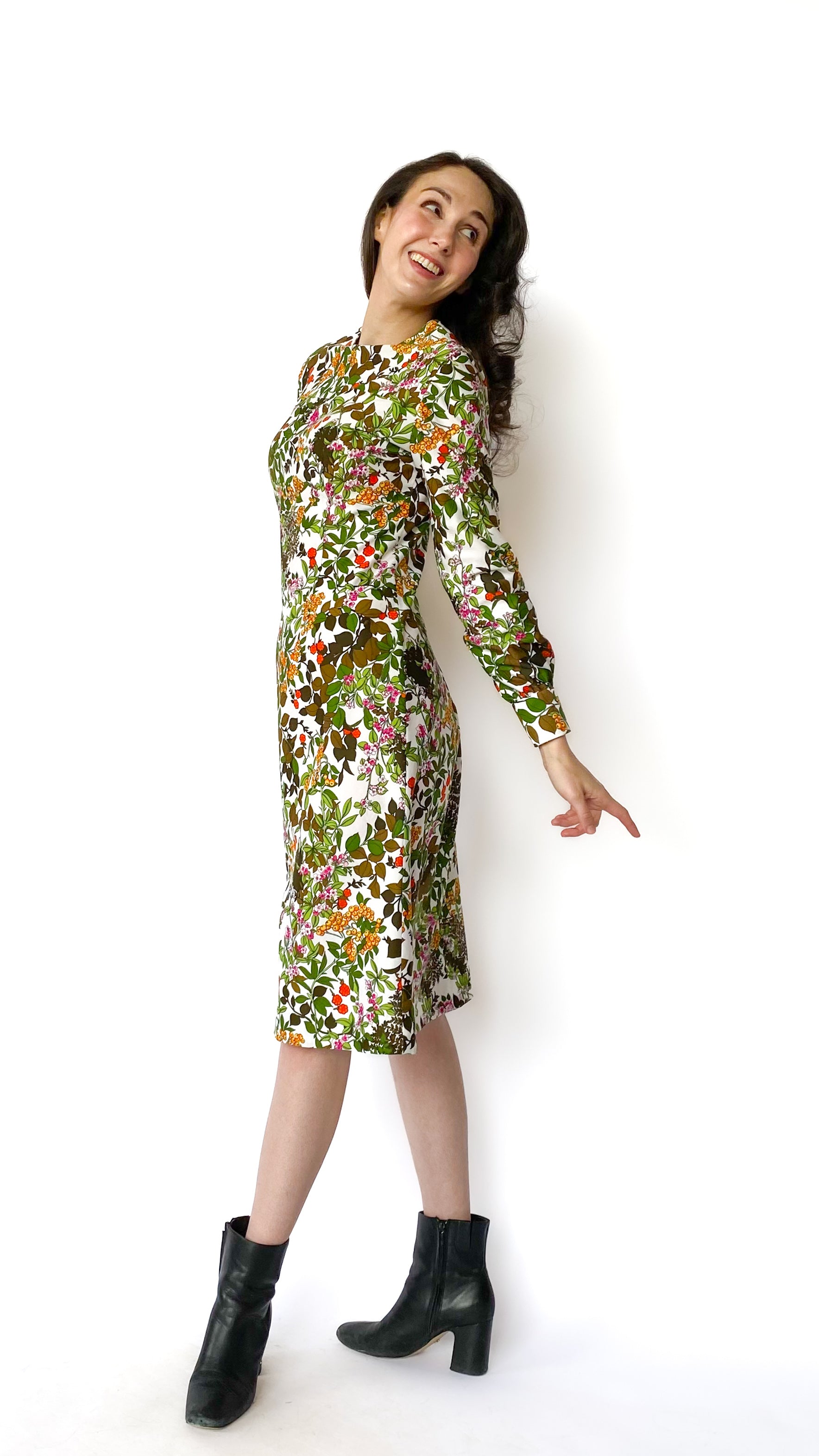 1970s Long Sleeve Floral Dress, sz. L