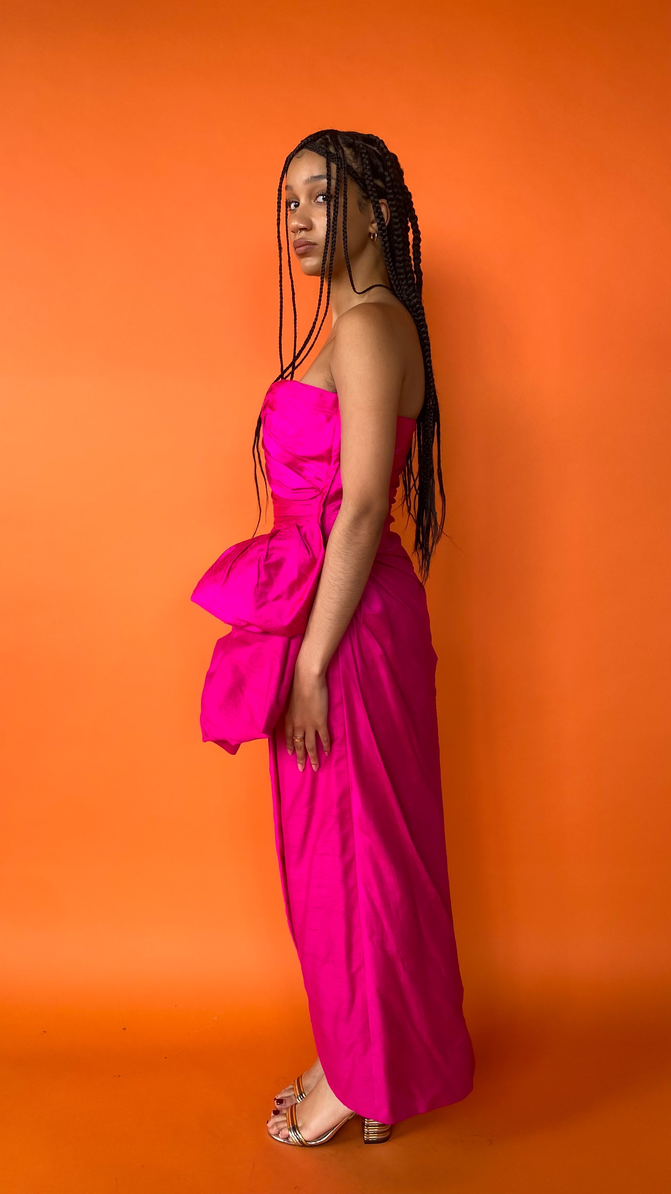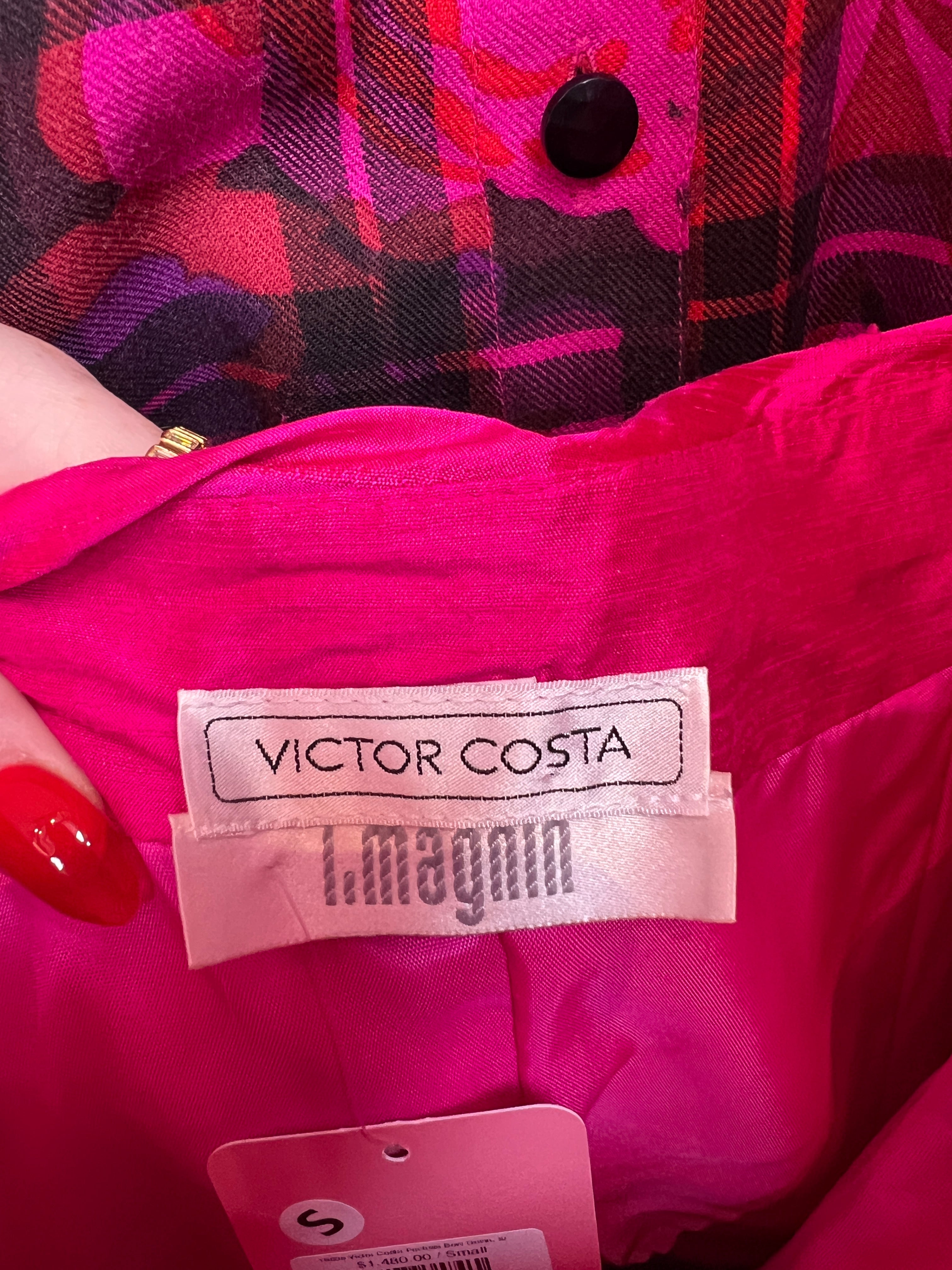 1980s Victor Costa Fuchsia Bow Gown, sz. S